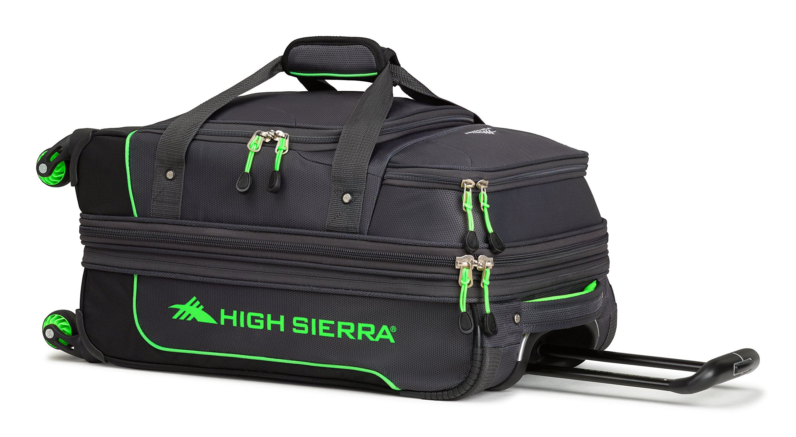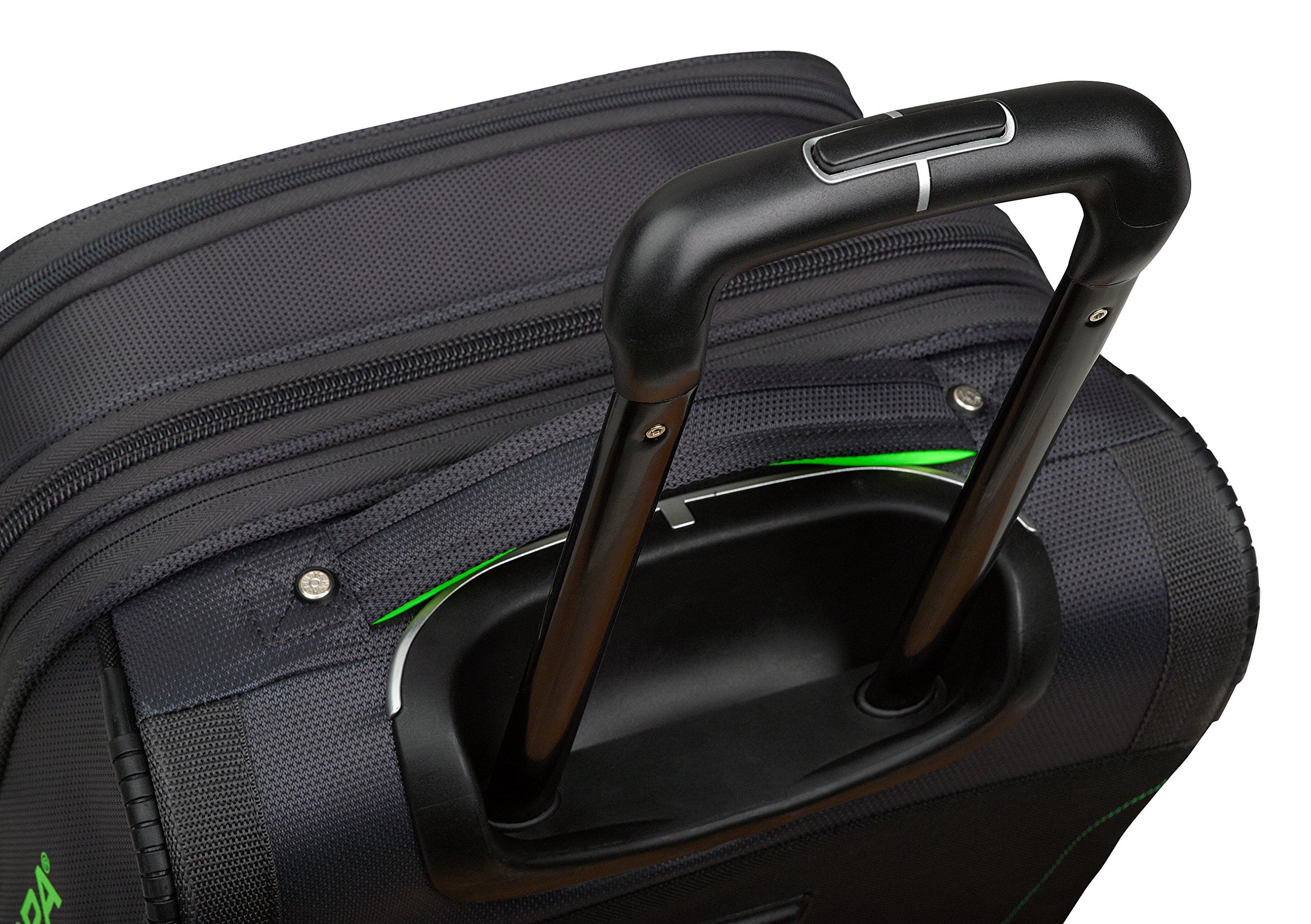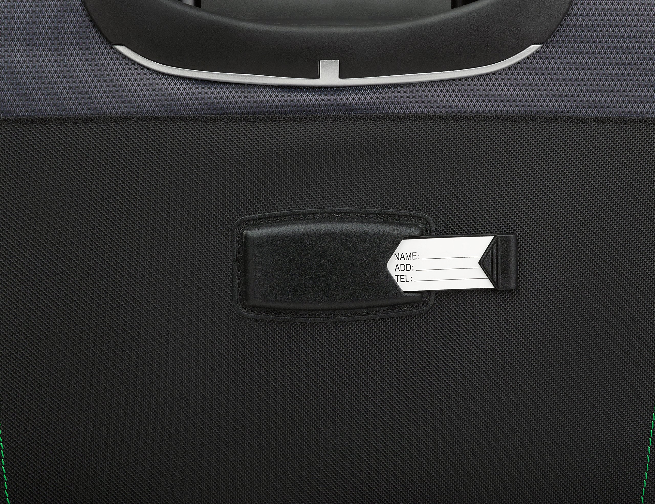 This set features a recessed, telescoping handle and convenient grab handle on top and front. Zippered mesh divider between the front and back drop-bottom compartments. Comes with a large front accessory pocket and custom ID card holder. Smooth rolling spherical spinner wheels. Zippered expansion gusset for additional capacity. Carry-on: 19.8 x 14 x 9 in. Checked roller: 26.2 x 15.5 x 12.5 in.