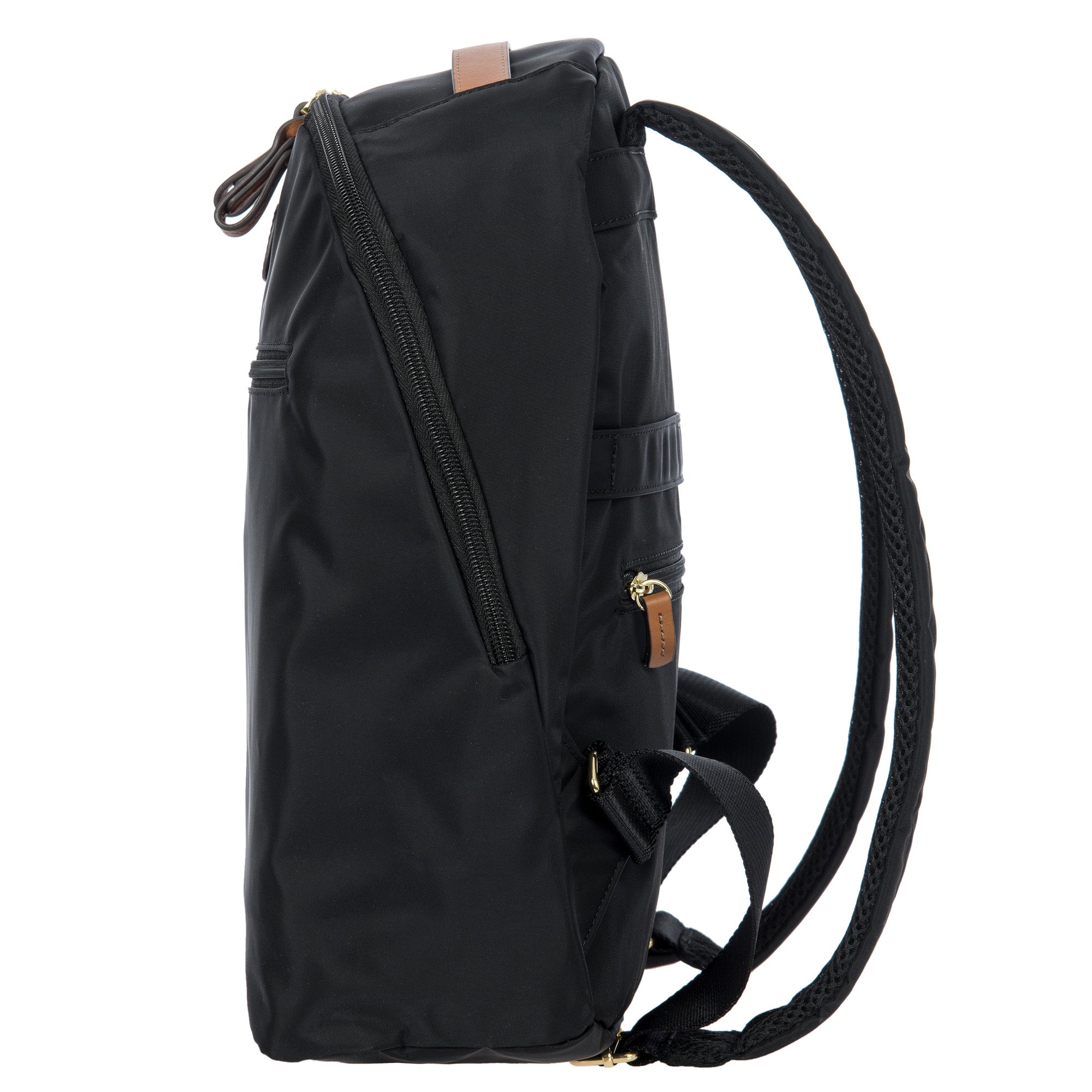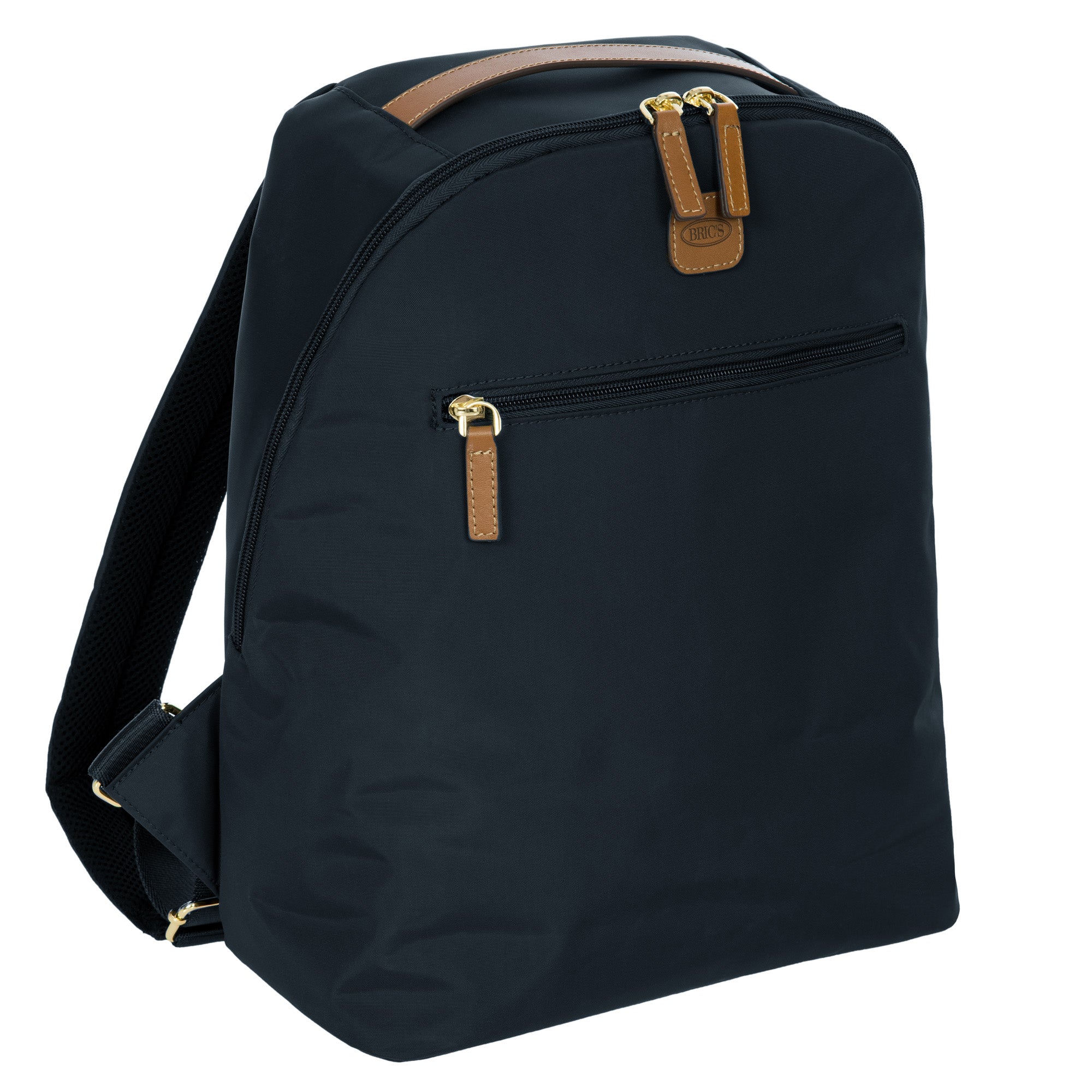 The medium city backpack from the X-Collection is made of soft, lightweight and durable recycled fabric, water-resistant. The adjustable shoulder straps ensure a comfortable fit, while the small leather handle on the top makes it easy to carry by hand. Spacious and compact, ideal for everyday outings, it has several internal pockets, one of which is zipped. The outside features zipped pockets on the front and back, ideal for holding your most precious belongings. The main compartment is equipped with a zip with two sliders. There is a strap on the back to attach it to a suitcase handle. The bag is finished with genuine leather details, one of Bric's signature design elements, and fabric lining.