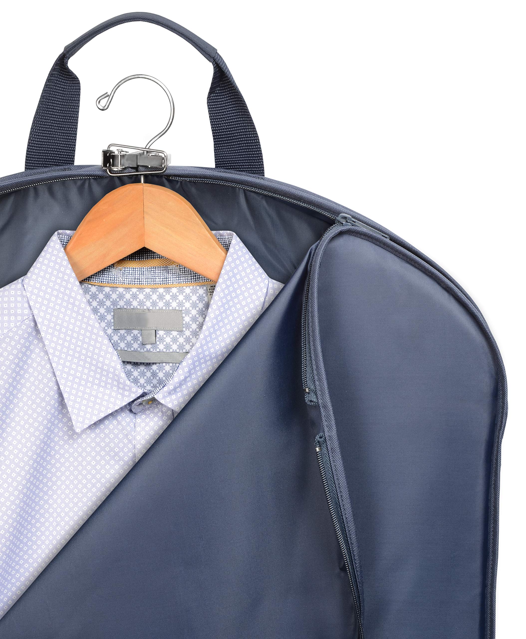 • BRING IT AS A CARRY ON BAG: Save time and money by eliminating checked bags and bypassing baggage claim with your WallyBags Carry On Garment Bag; Easily attaches to rolling luggage for airport convenience; Lays flat to fit in an airplane's overhead compartment