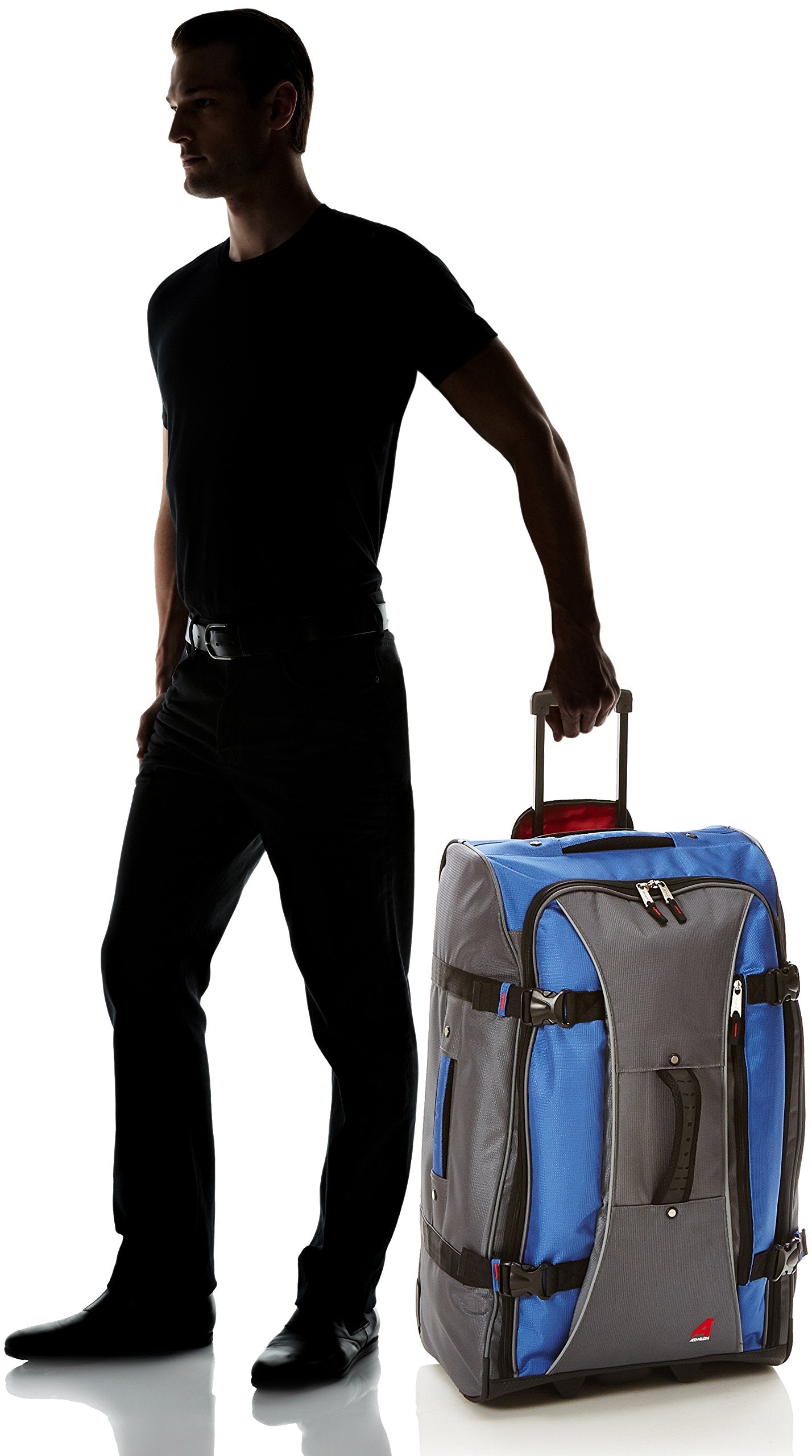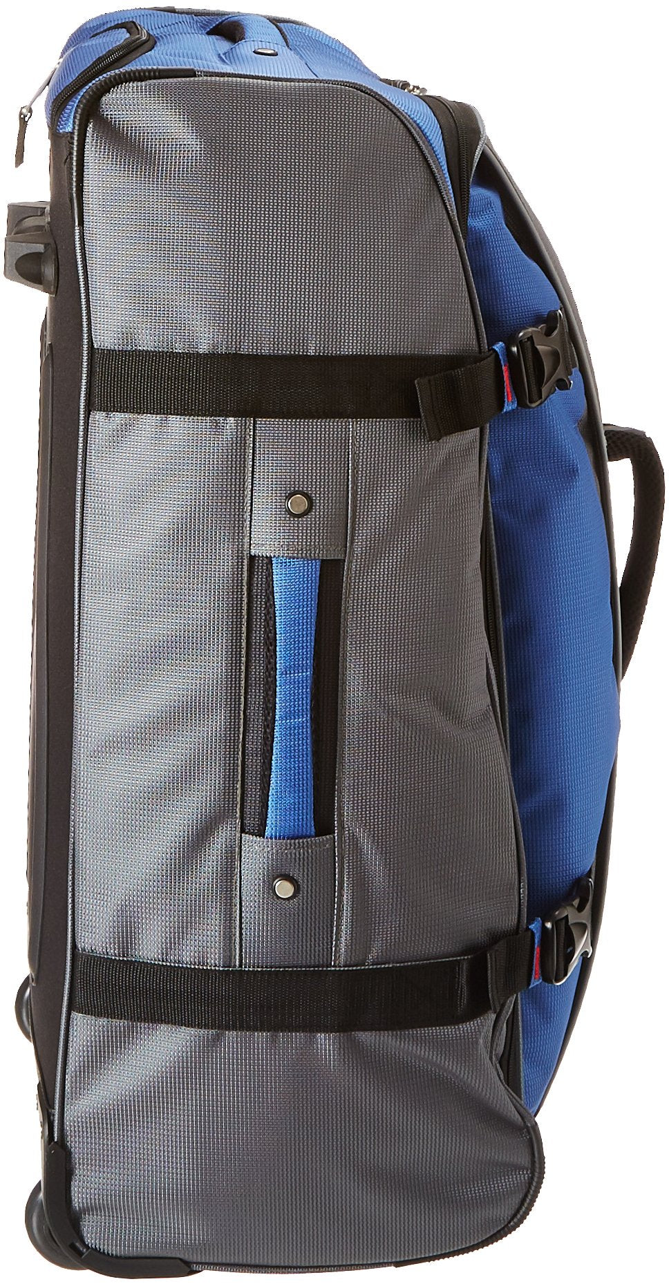 handles for comfort, and in-line skate wheels for mobility. This bag blends