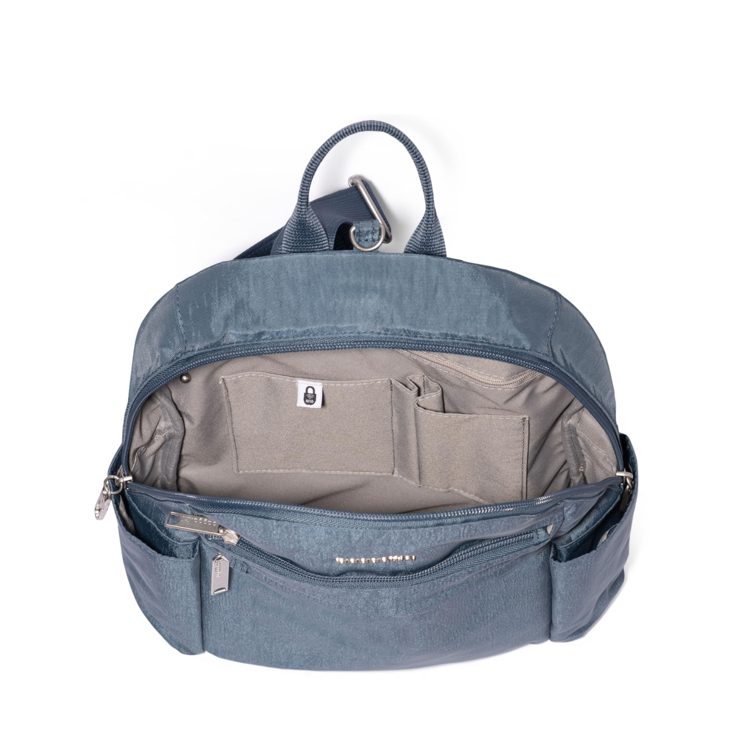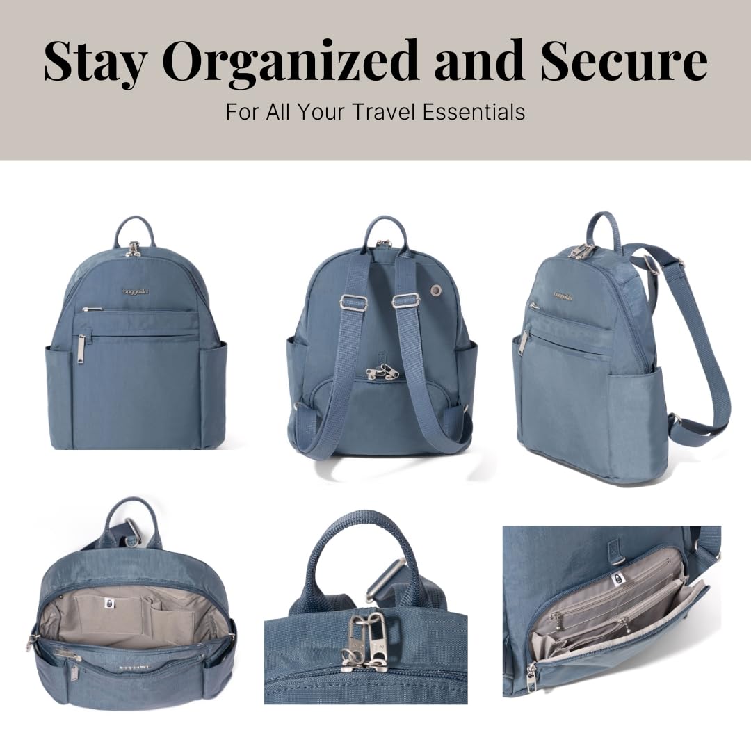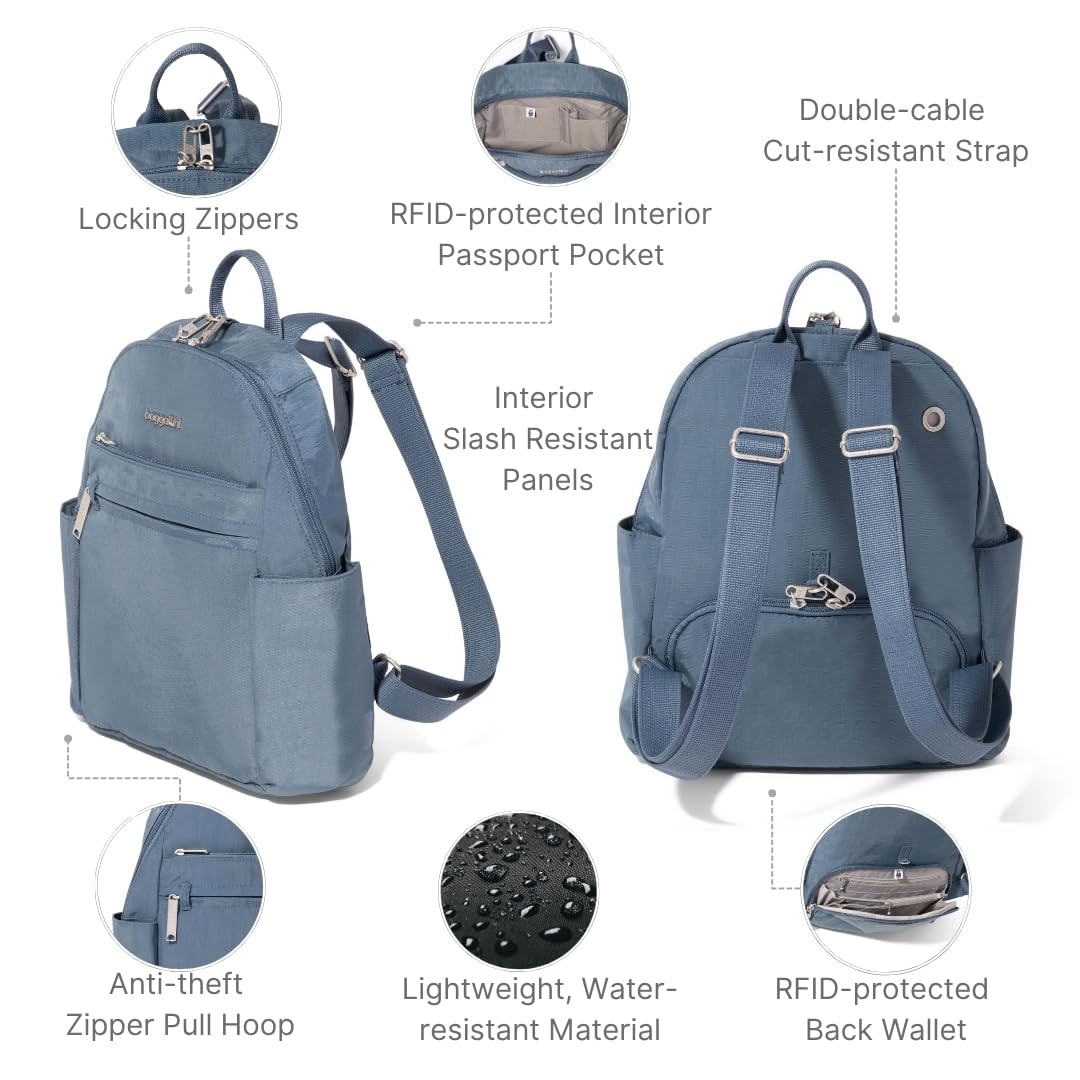 A travel backpack is a vacation must-have. This cute style has all the features you need to stay safe and organized. The Securtex anti-theft vacation backpack features slash resistant panels, a double-cable cut-resistant strap, locking zippers, and RFID-protection.