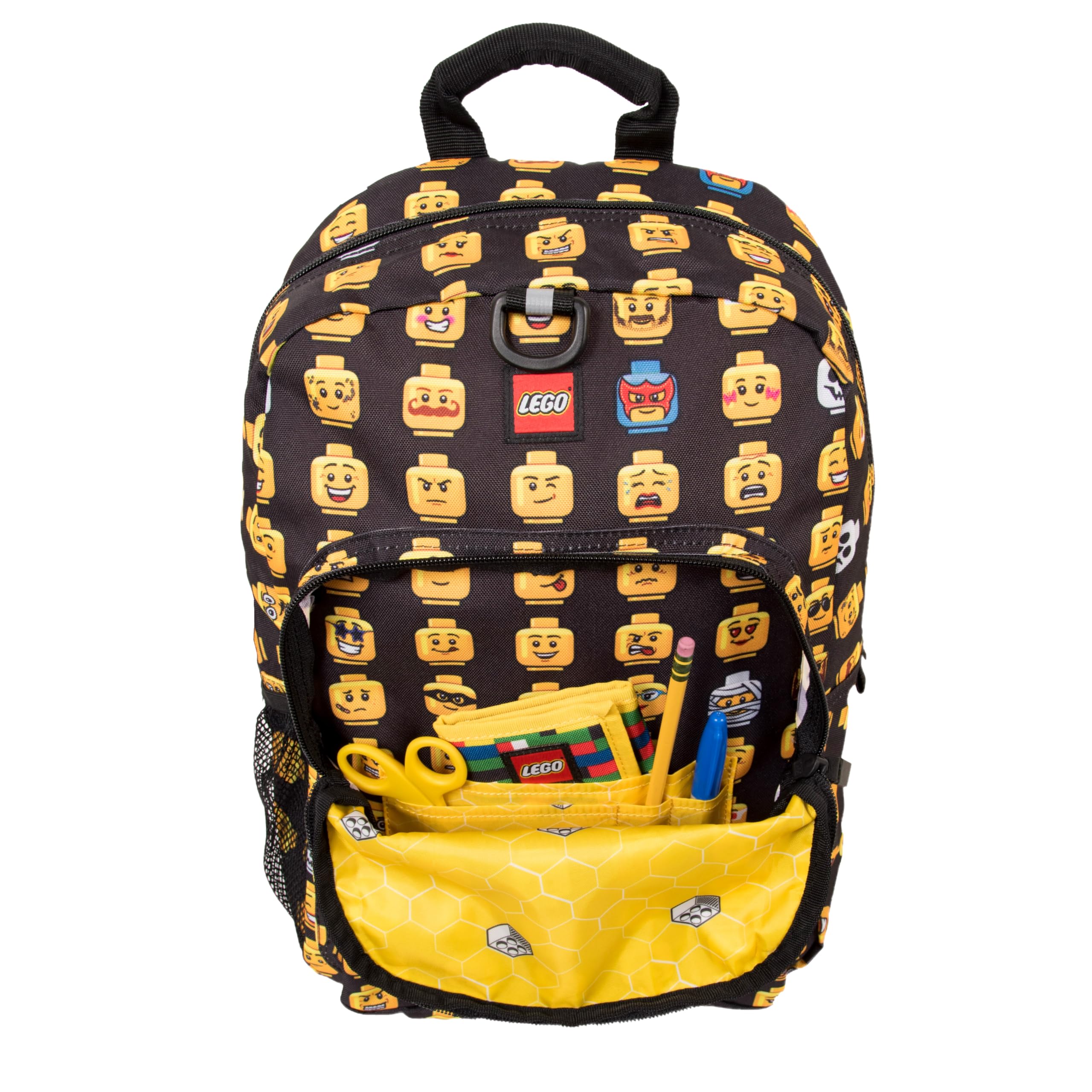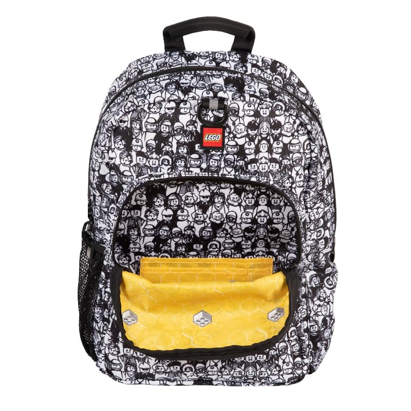 Gear up for city duty with the Heritage Classic Backpack. Boasting ergonomically padded contoured shoulder straps and a soft poly tricot lining, carrying is effortless and comfortable. The padded haul handle adds convenience for easy transport. Achieve balance with the adjustable front sternum strap, ensuring a secure fit with a simple click. Featuring a padded back panel detailed with LEGO brick stitch, comfort meets style seamlessly. Access essentials effortlessly with the roomy main zipper compartment and interior slip pocket designed to keep items close to the wearer's back for optimal weight distribution. Keep small supplies organized with the front volume zipper pocket's built-in organization panel. Stay hydrated on the go with the side mesh pocket designed to hold water bottles or quick-access items. Plus, the front D-ring offers a convenient attachment point for lunch bags or additional belongings. Measuring 16 (40.6cm) high, 11 (28cm) wide, and 6.5 (16.5cm) deep, it provides ample space for books, snacks, and more. Select from a variety of designs to flaunt your LEGO flair and express your individuality with our City Heritage Classic Backpack. Note: Matching Lunch Boxes are available separately to complete your ensemble.