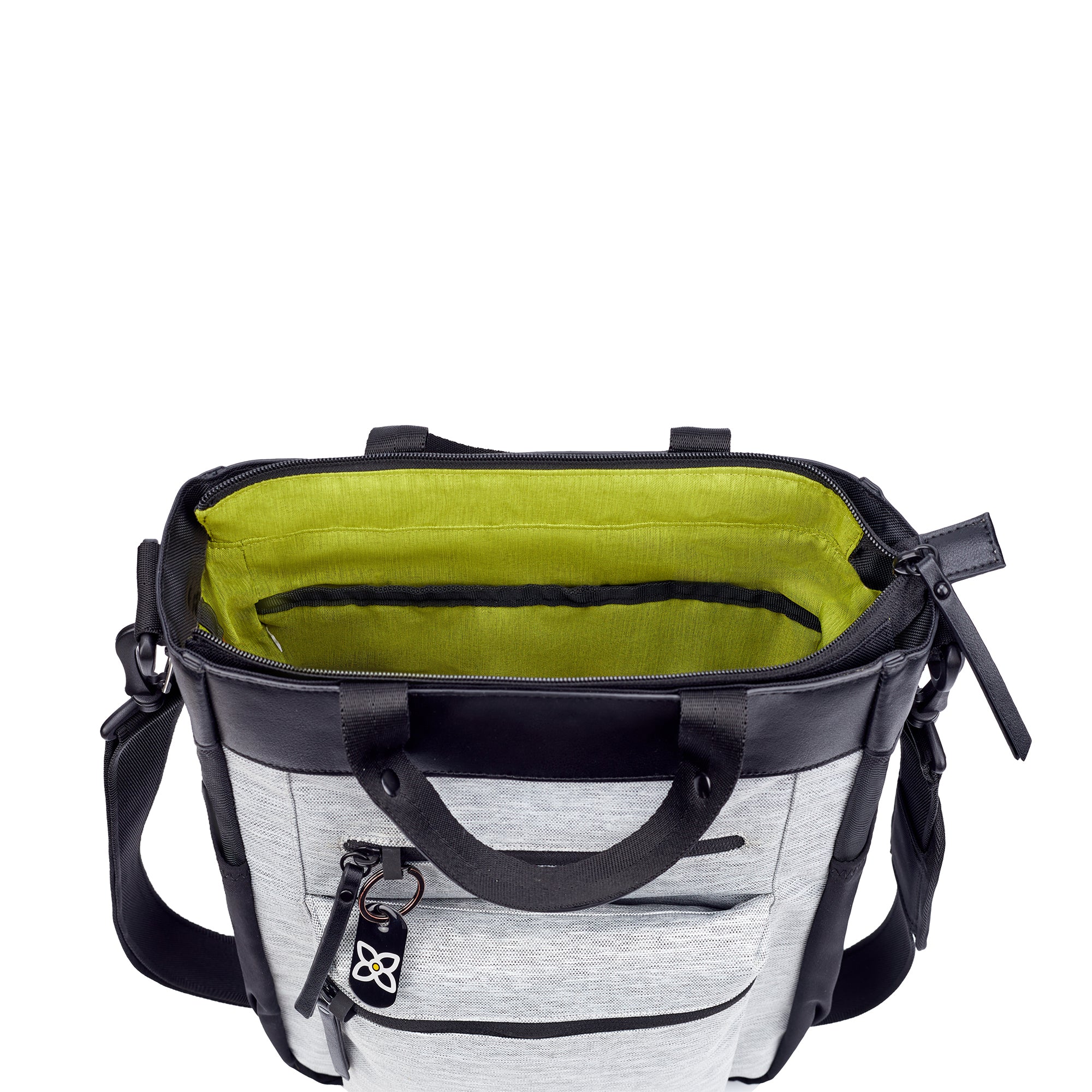 • UNIQUE FABRIC - The combination of 1% Mélange & Ballistic Nylon threads makes the Soleil a lightweight, water-resistant and durable bag. The interior lining of the Soleil AT is a fun lime color which allows easier visibility into your bag when searching for those hard-to-find accessories. High quality vegan leather trim and detailing. The Soleil repurposes 4 plastic bottles.
