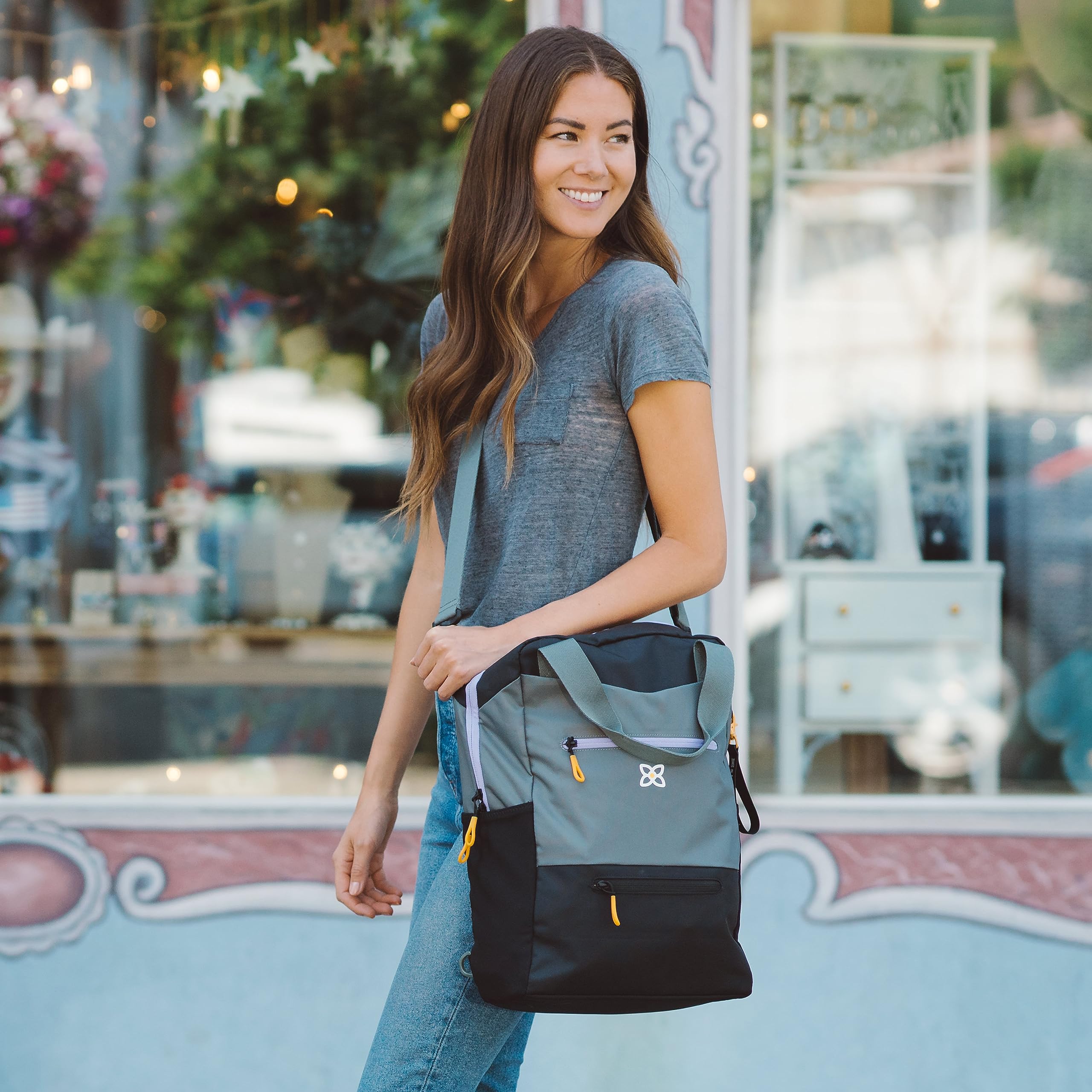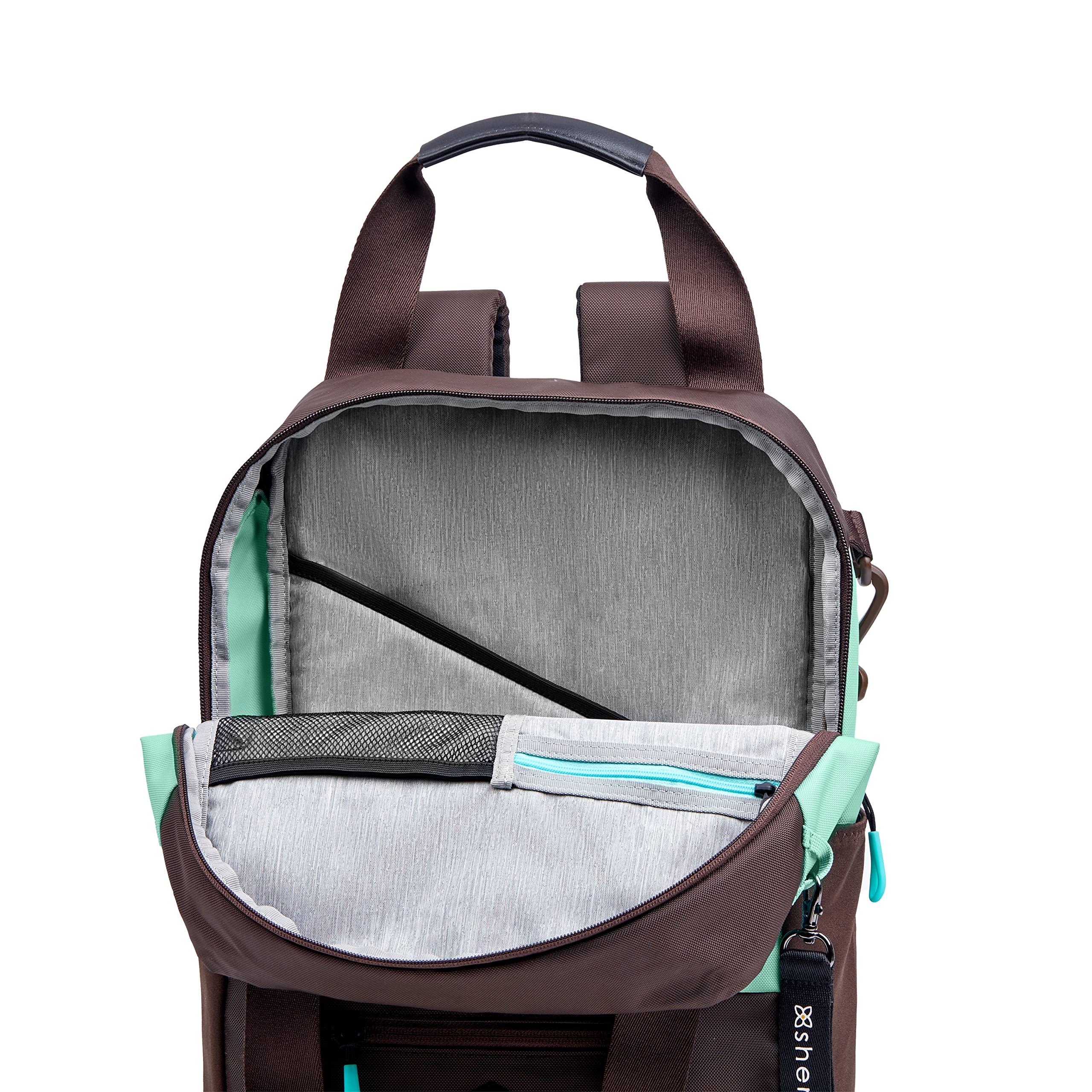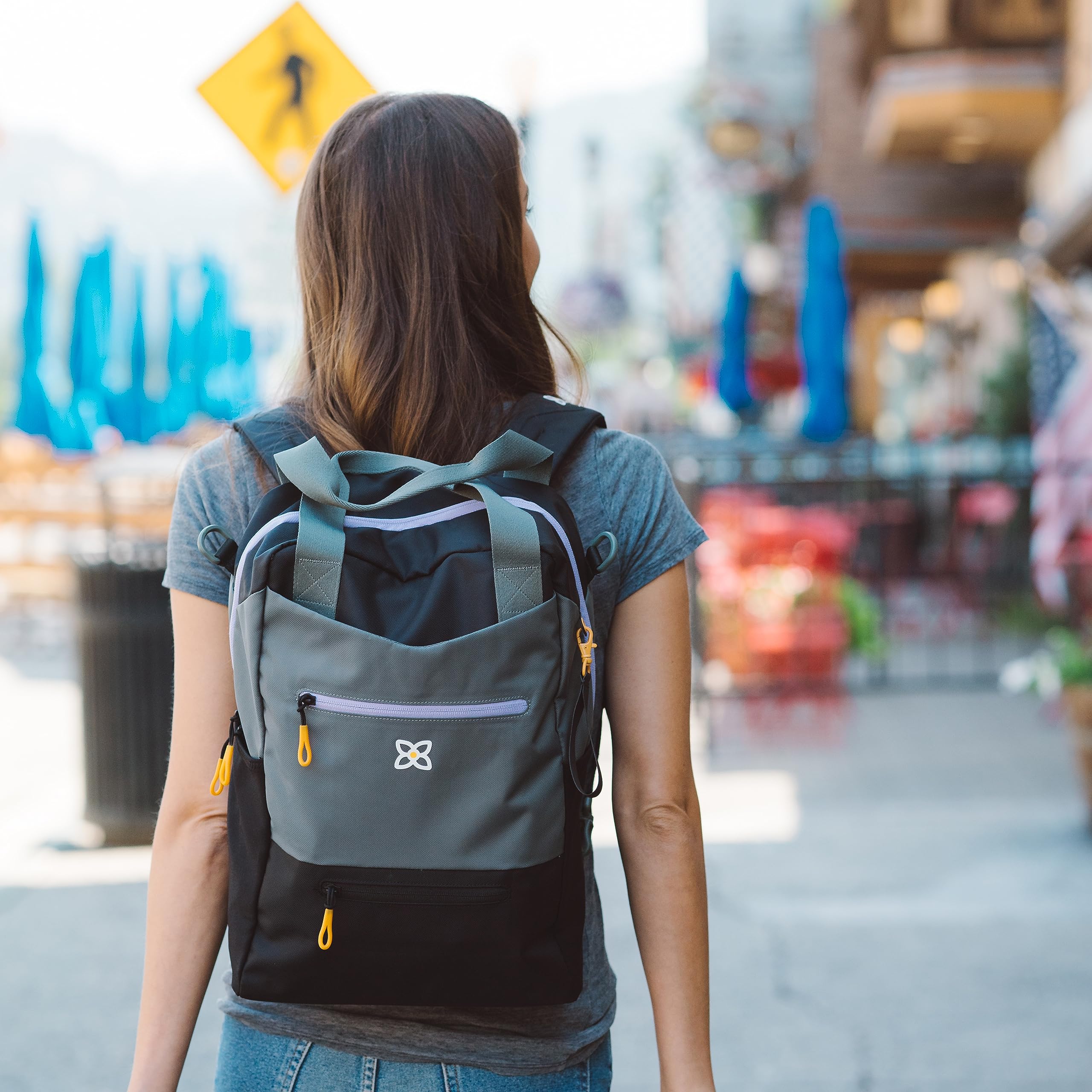 Designed For Active Women On The Go! Balance work and play with the Camden 3-in-1 backpack. The Camden can be worn as a shoulder bag, tote, or a backpack. A padded 15" laptop sleeve, organizational pockets and a luggage pass-thru lets you take your Camden from the office to a trip around the world