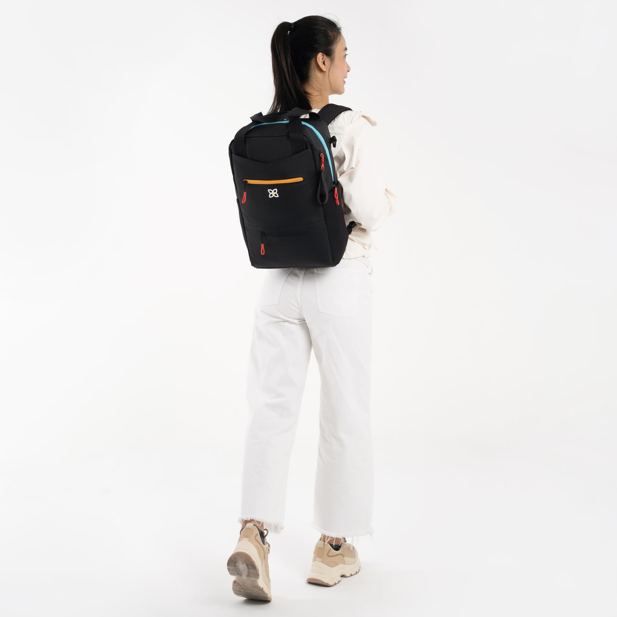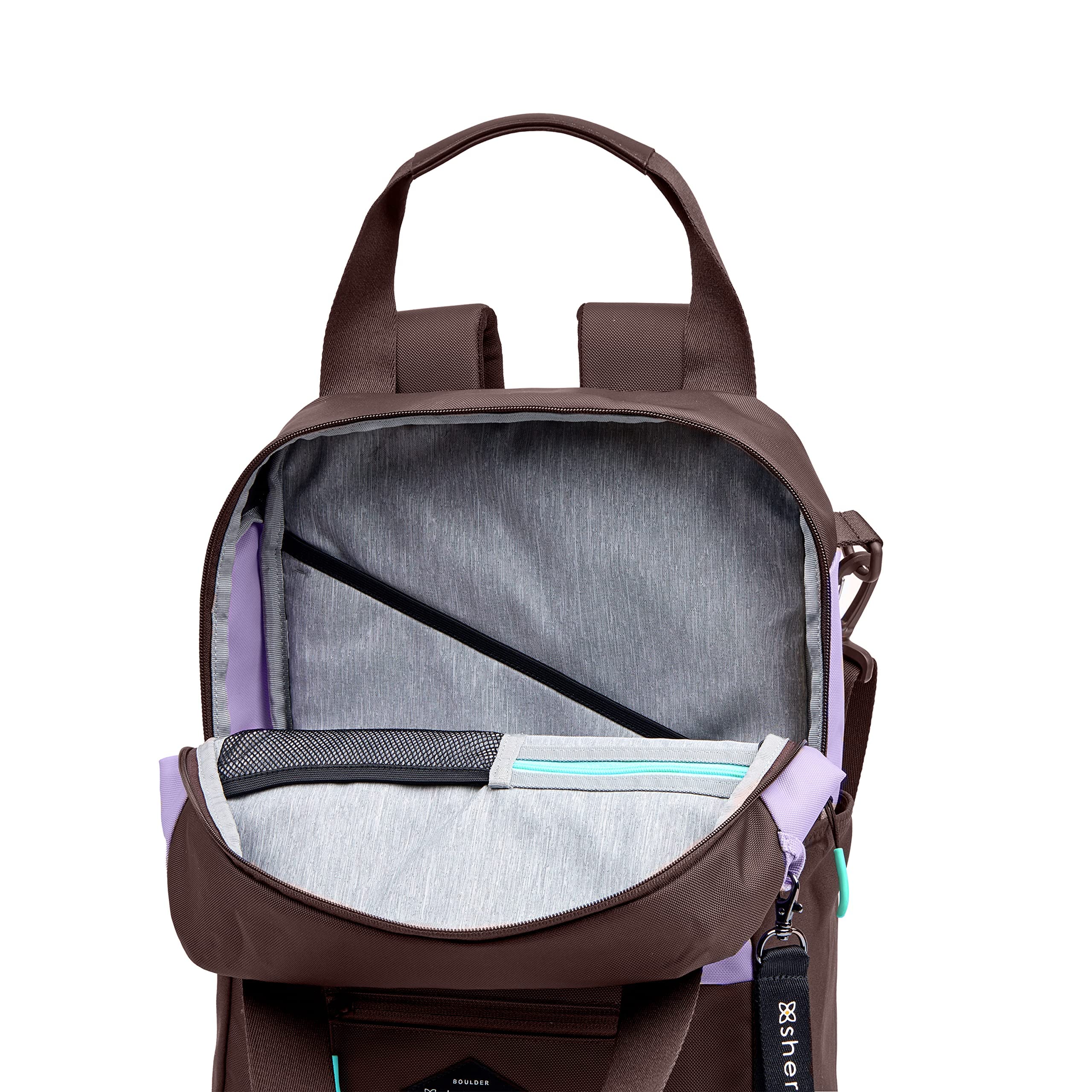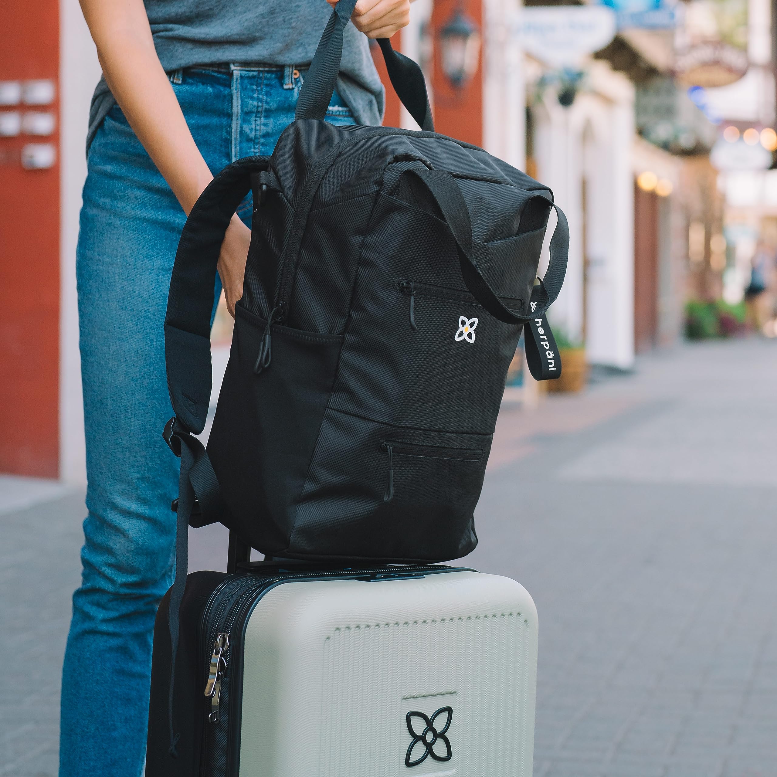 Designed For Active Women On The Go! Balance work and play with the Camden 3-in-1 backpack. The Camden can be worn as a shoulder bag, tote, or a backpack. A padded 15" laptop sleeve, organizational pockets and a luggage pass-thru lets you take your Camden from the office to a trip around the world