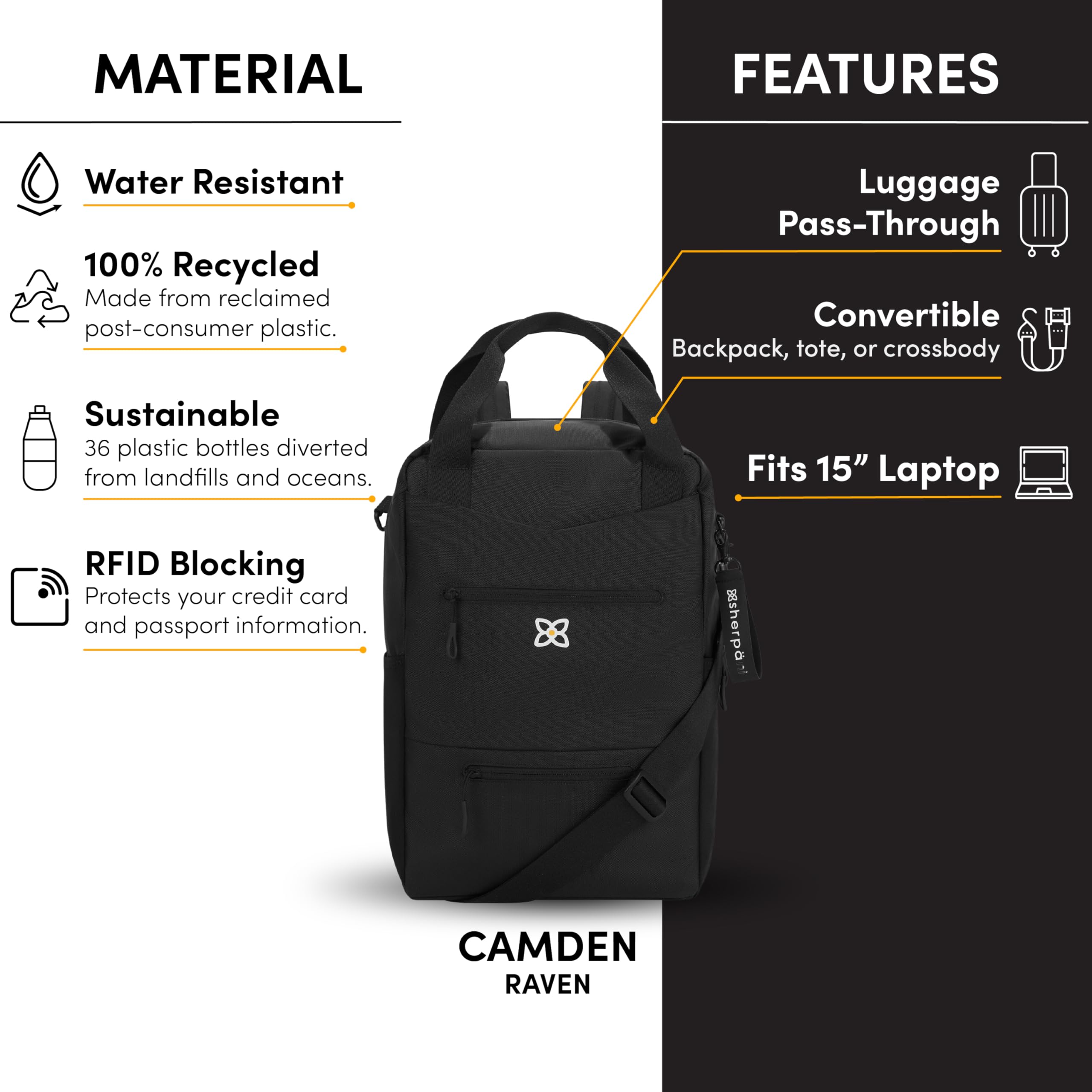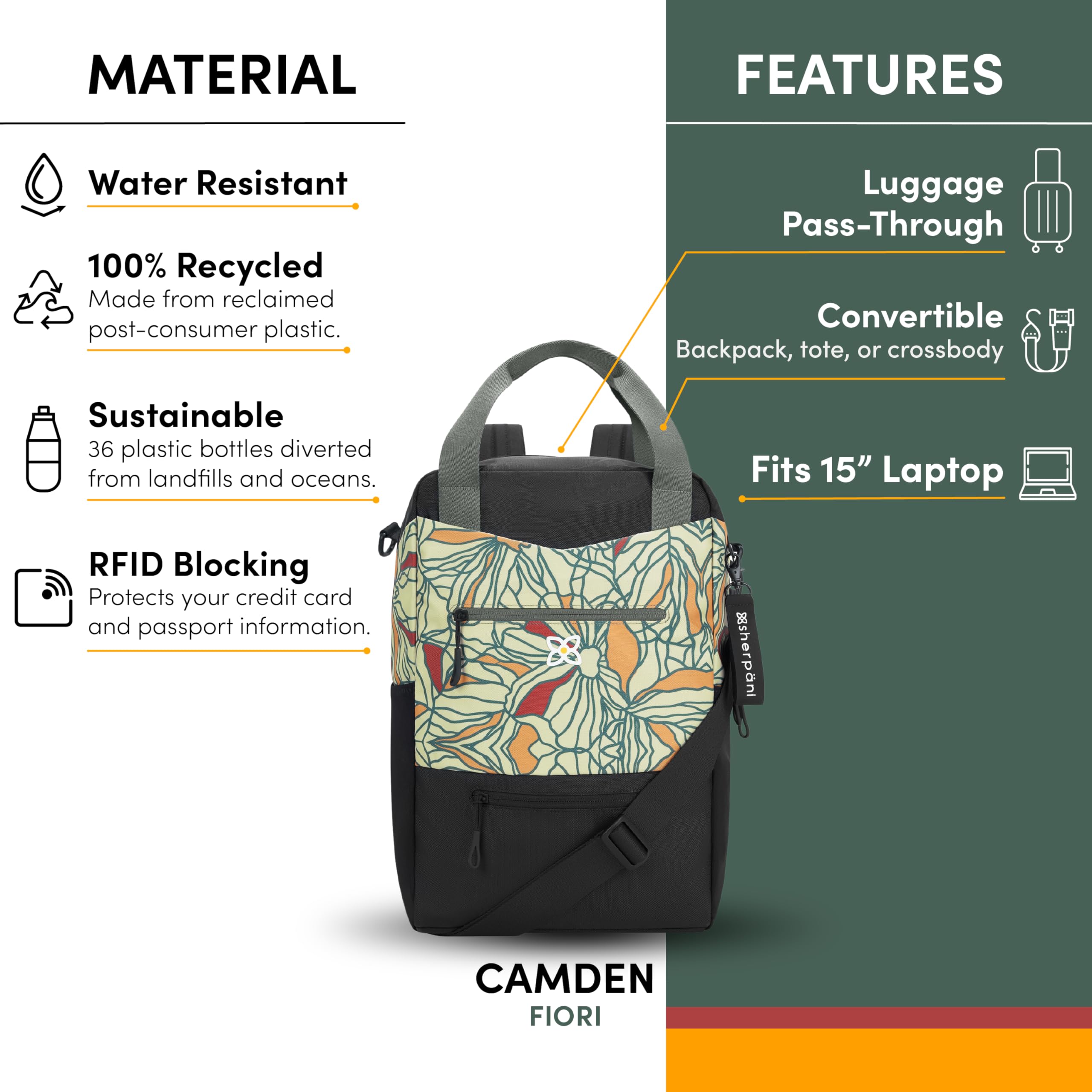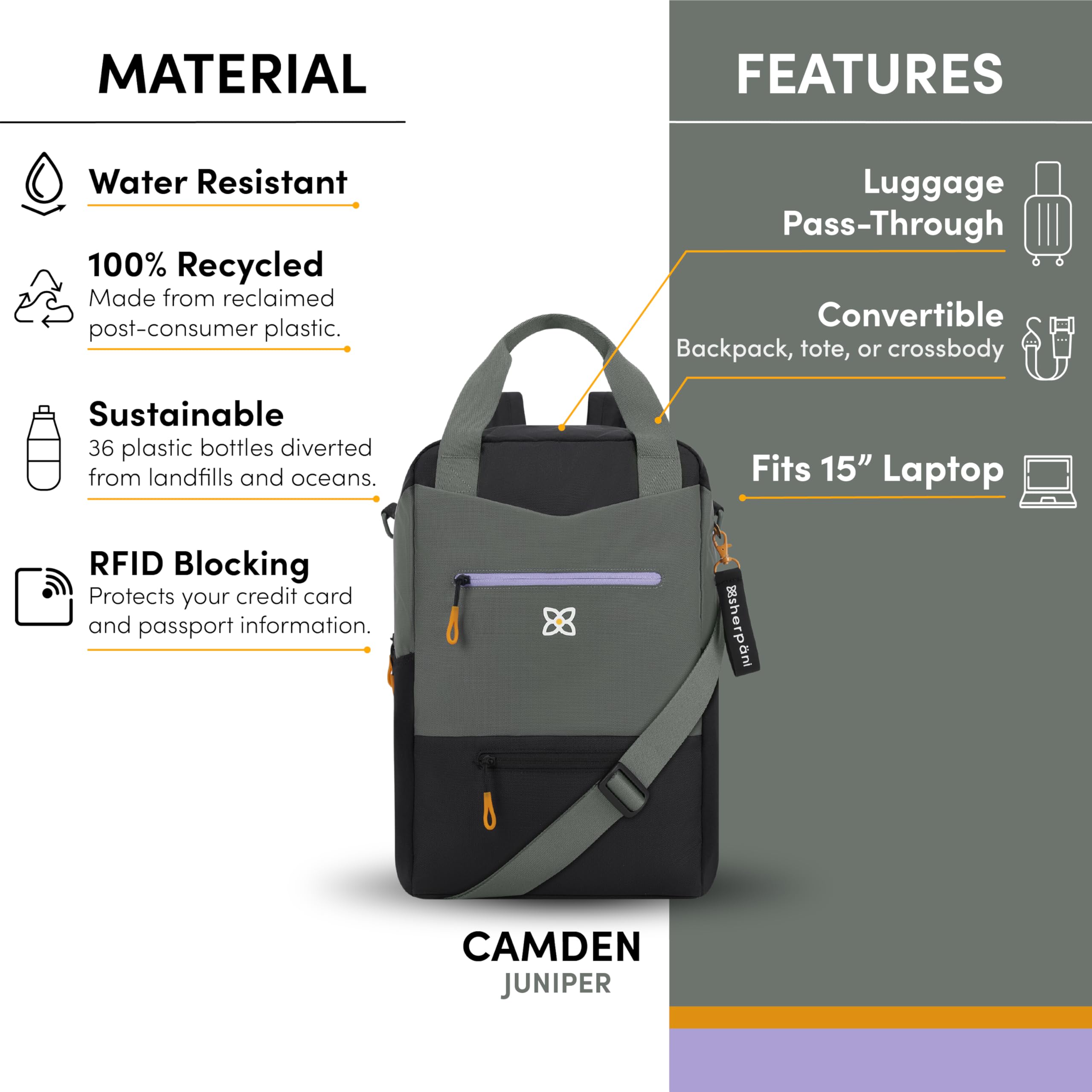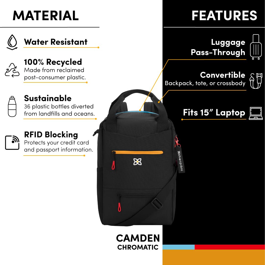 Sherpani Camden, Convertible Backpack Tote, Travel Backpack Purse, Laptop Backpack, Recycled Nylon Backpack, Crossbody Bags for Women Fits 15 Inch Laptop