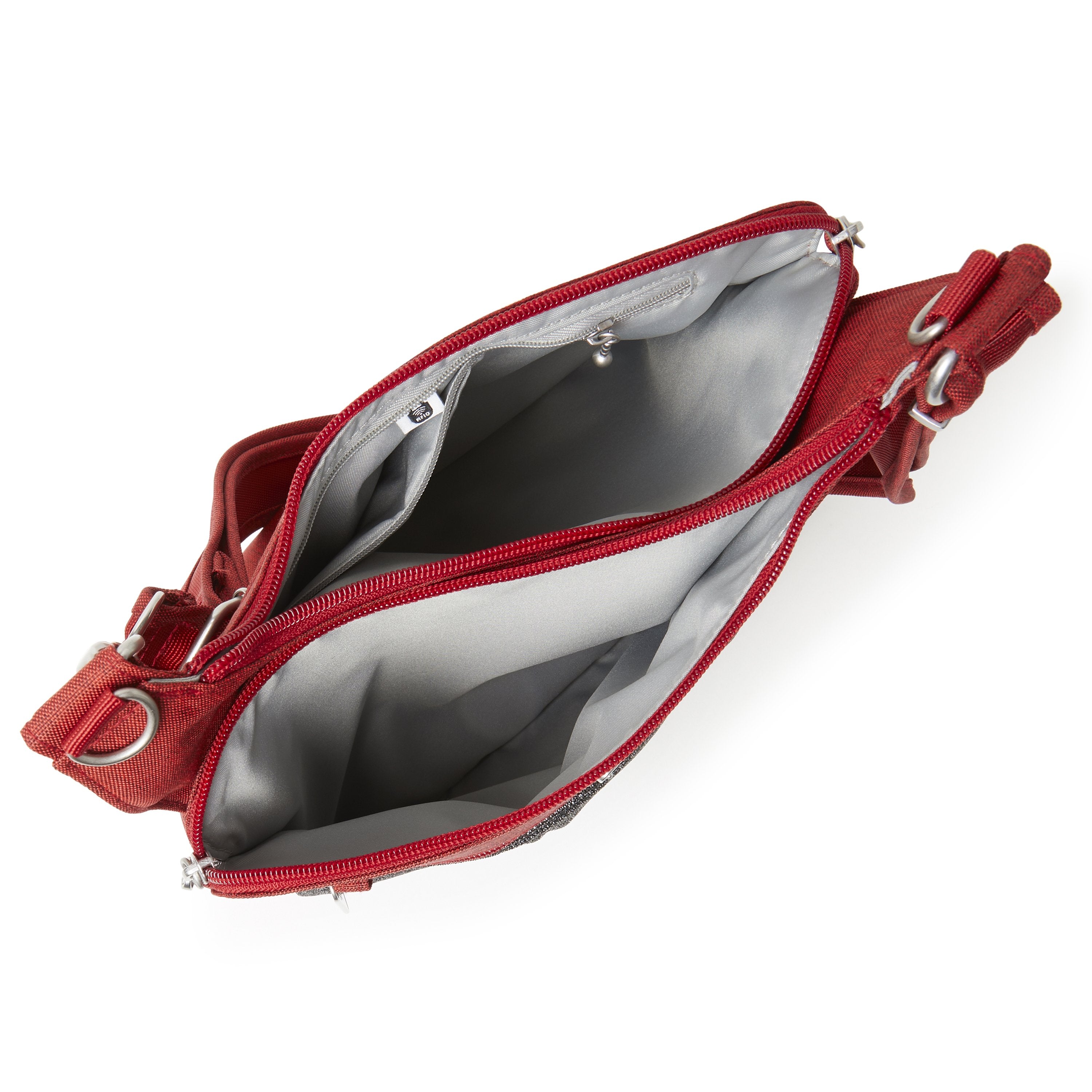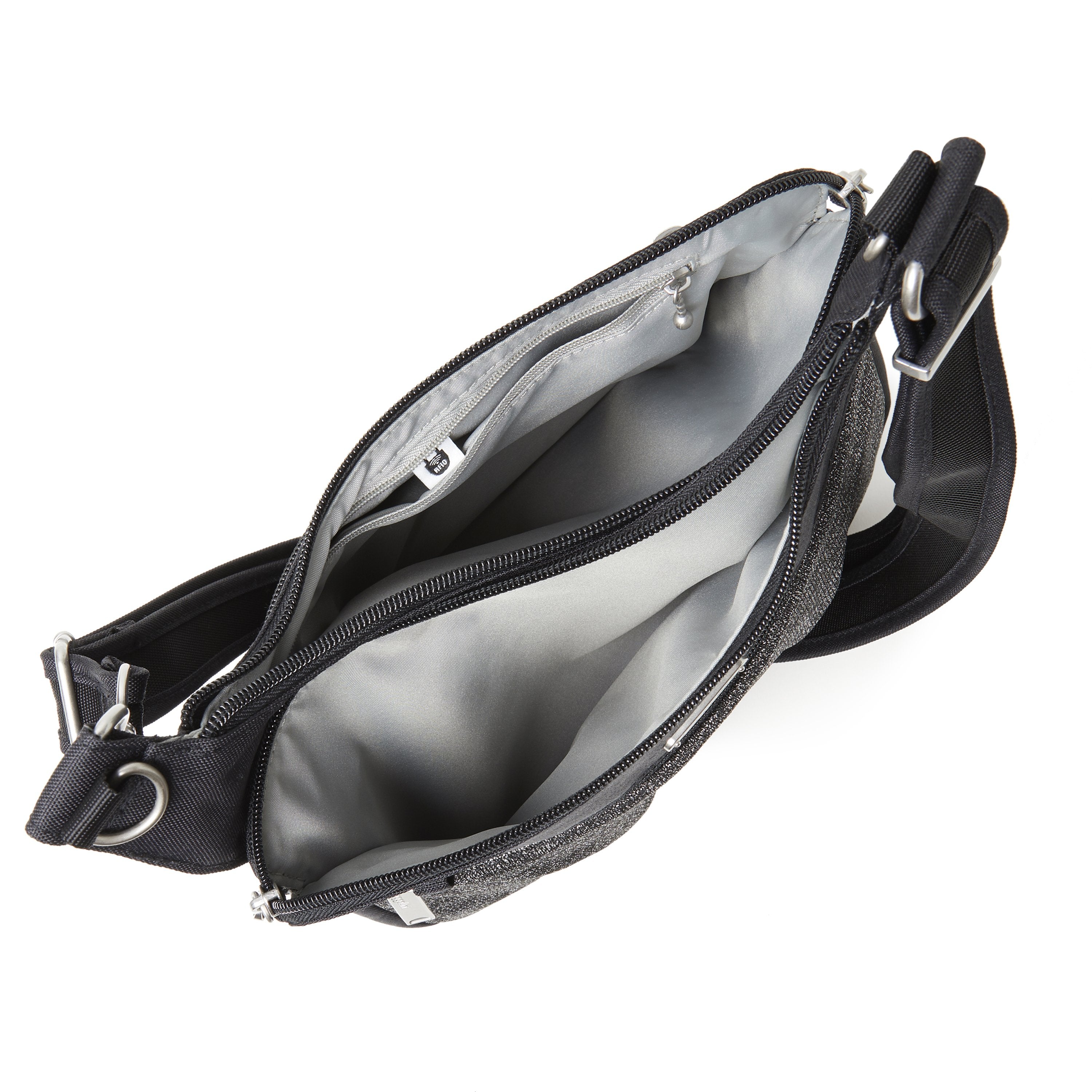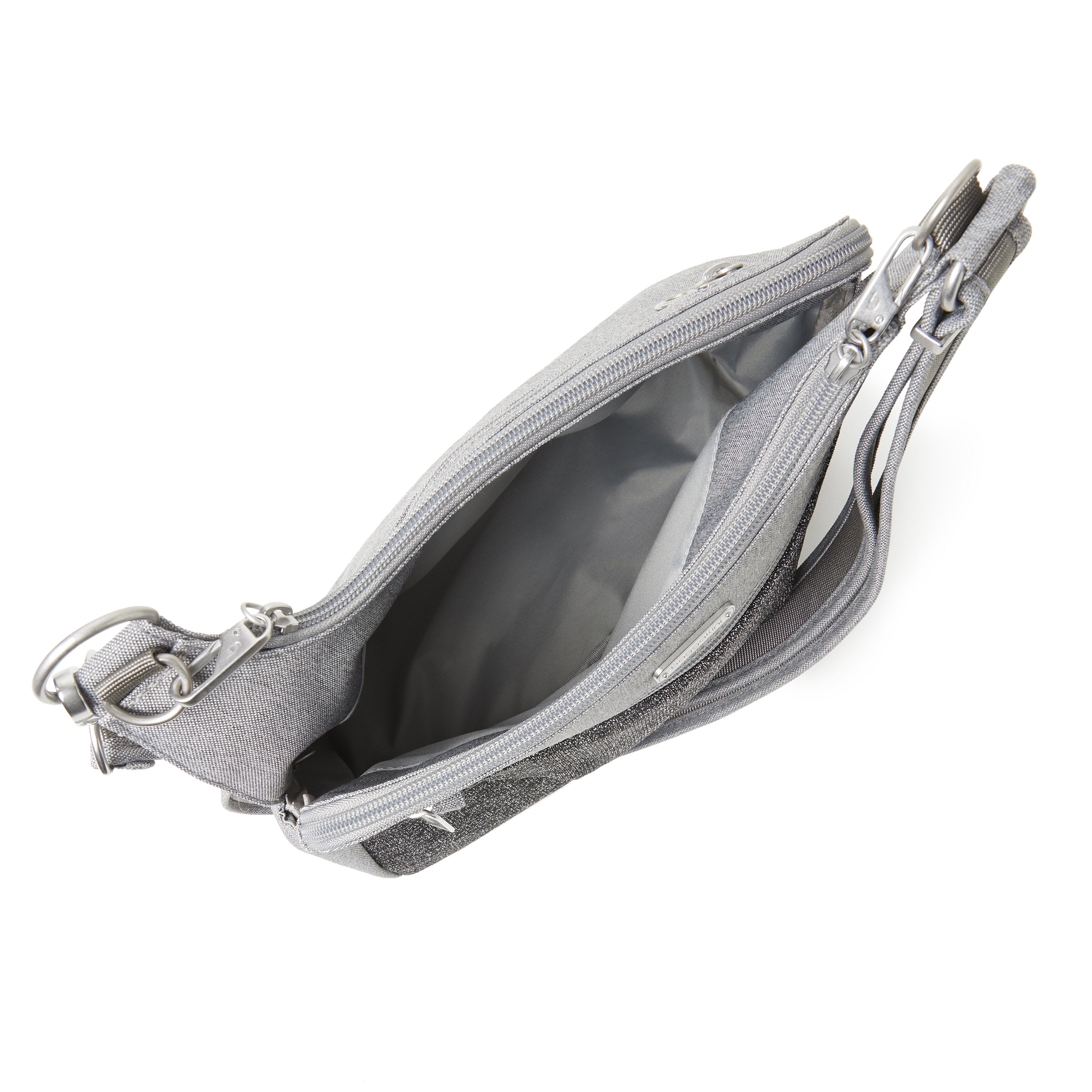 Slash-proof SexureTex fabric, pickpocket-proof locking zippers and anti-cut double cable straps ensure your bag stays safe at your side. An RFID-blocking wristlet offers an extra touch of protection for your personal information, and best of all, these unique features integrate seamlessly into a modern crossbody bag silhouette.
