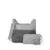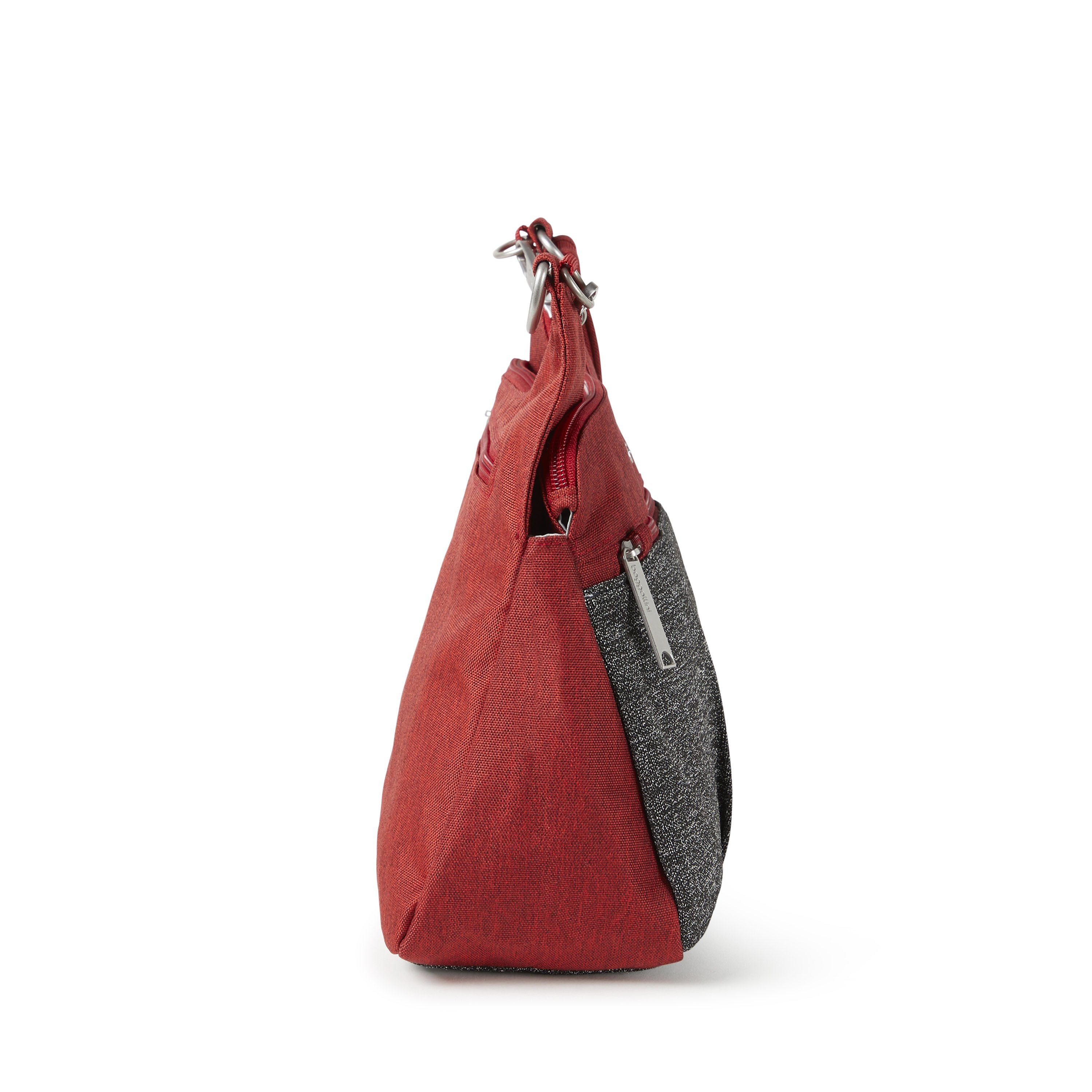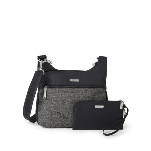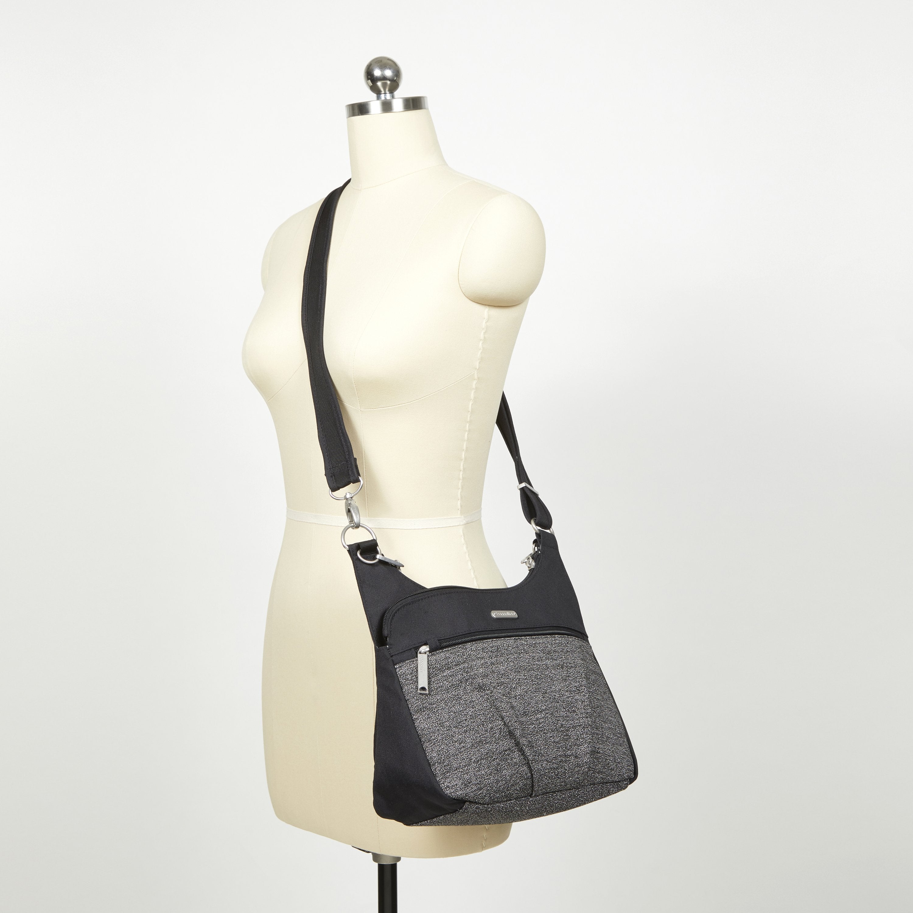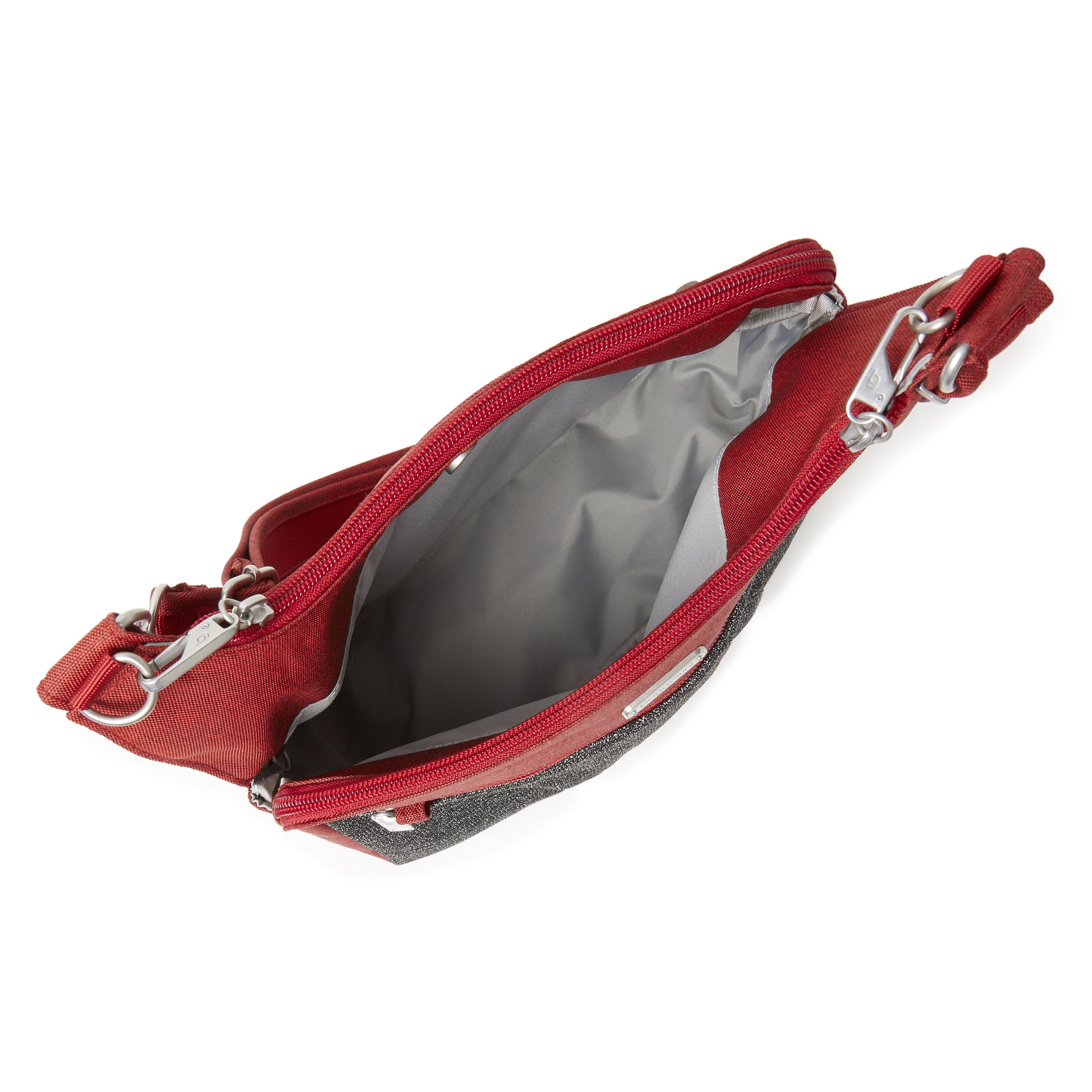 Slash-proof SexureTex fabric, pickpocket-proof locking zippers and anti-cut double cable straps ensure your bag stays safe at your side. An RFID-blocking wristlet offers an extra touch of protection for your personal information, and best of all, these unique features integrate seamlessly into a modern crossbody bag silhouette.
