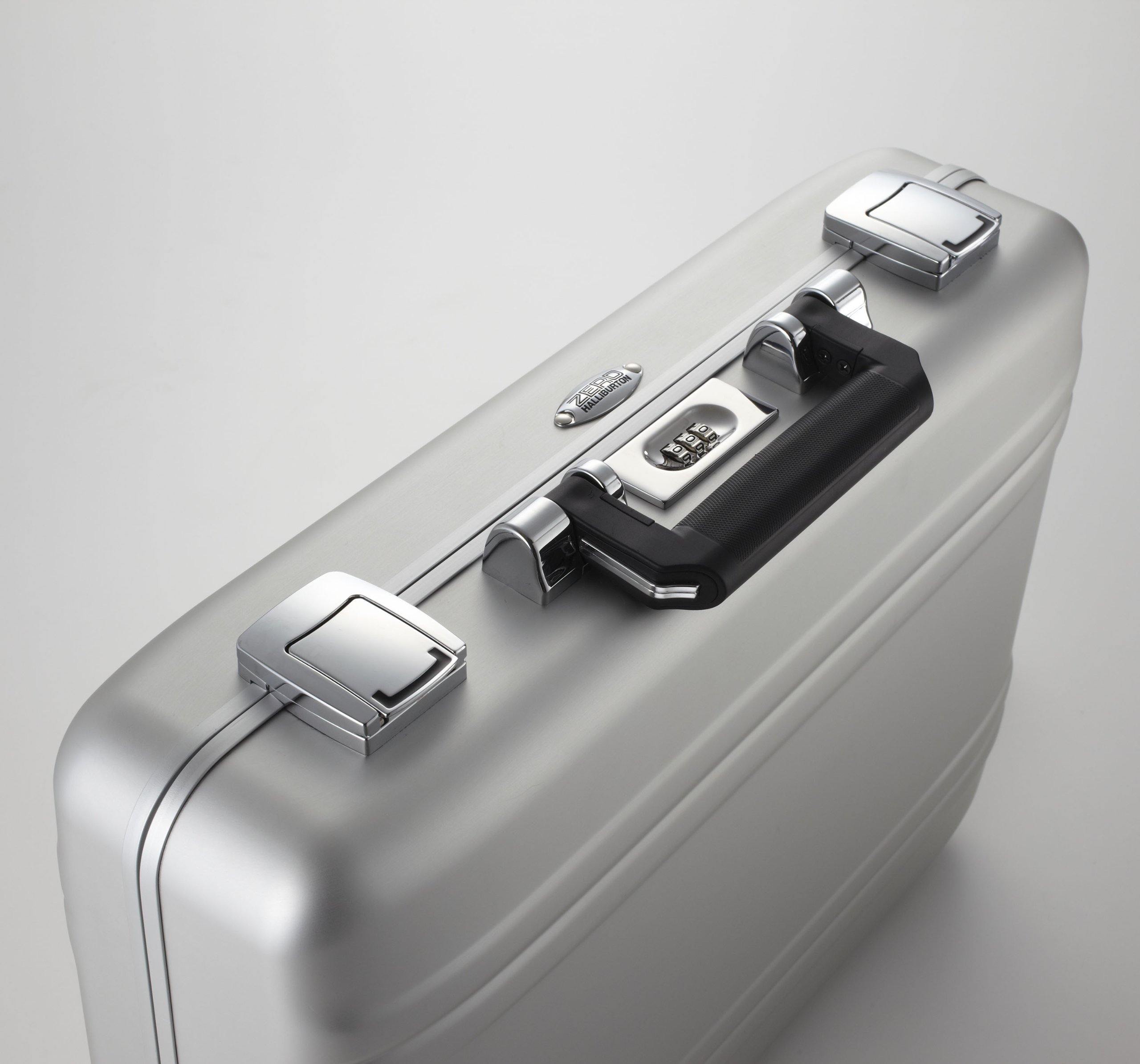 Protect your business essentials in style with the premier aluminum attachedfrom zero Halliburton. Anodized aluminum, custom designed draw-bolt latchesand a three digit combination lock keep your valuables safe while you are onthe move. Zero Halliburton - makers of quality cases since 1938.