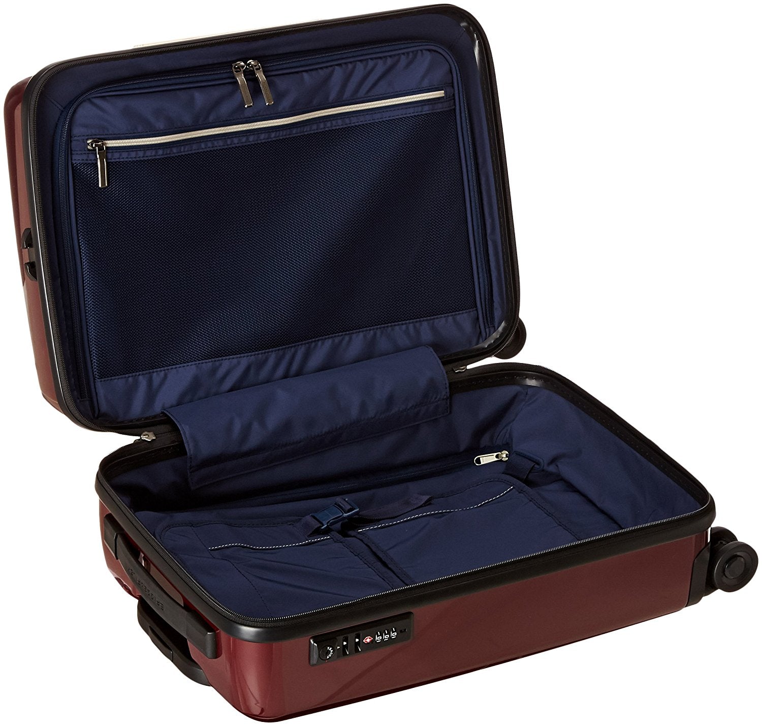 Breeze through airplane aisles and distant getaways alike with the International Carry-On Spinner. 4 double swivel wheels and a polycarbonate case mean that you can protect your contents while still enjoying effortless 360 Degree navigation. Coordinates perfectly with a soft Sympatico companion piece.