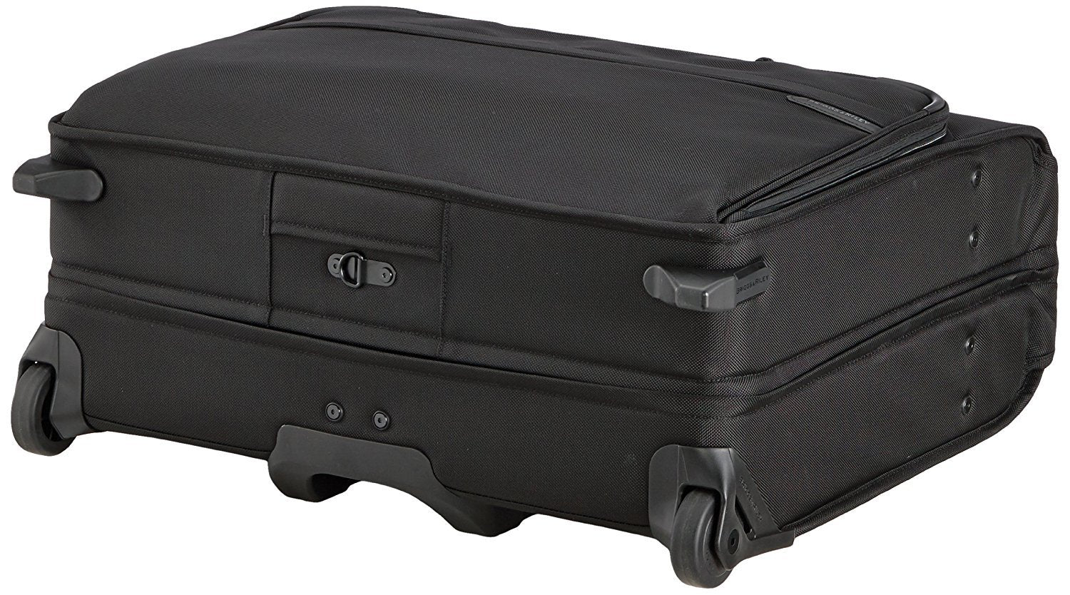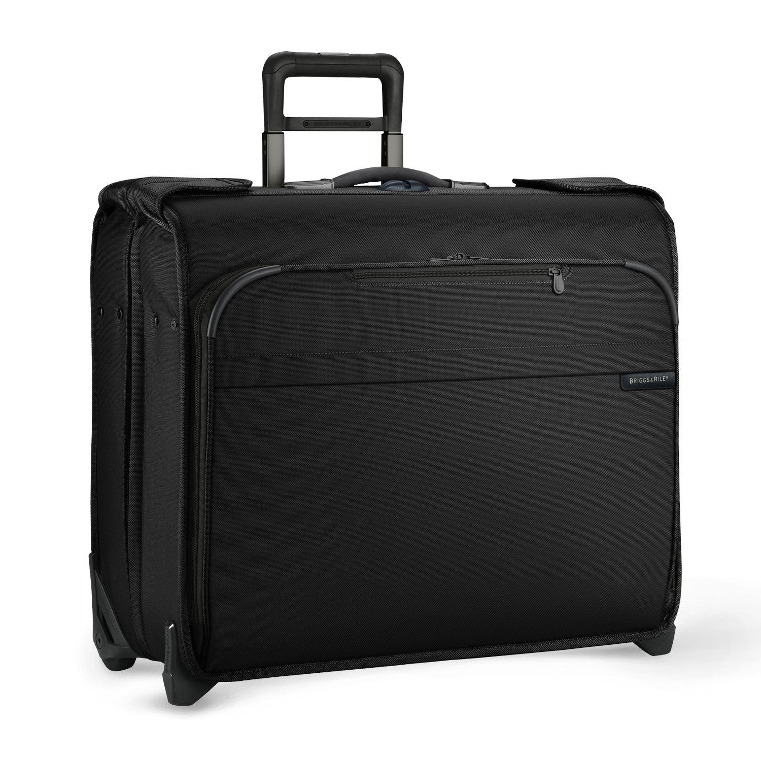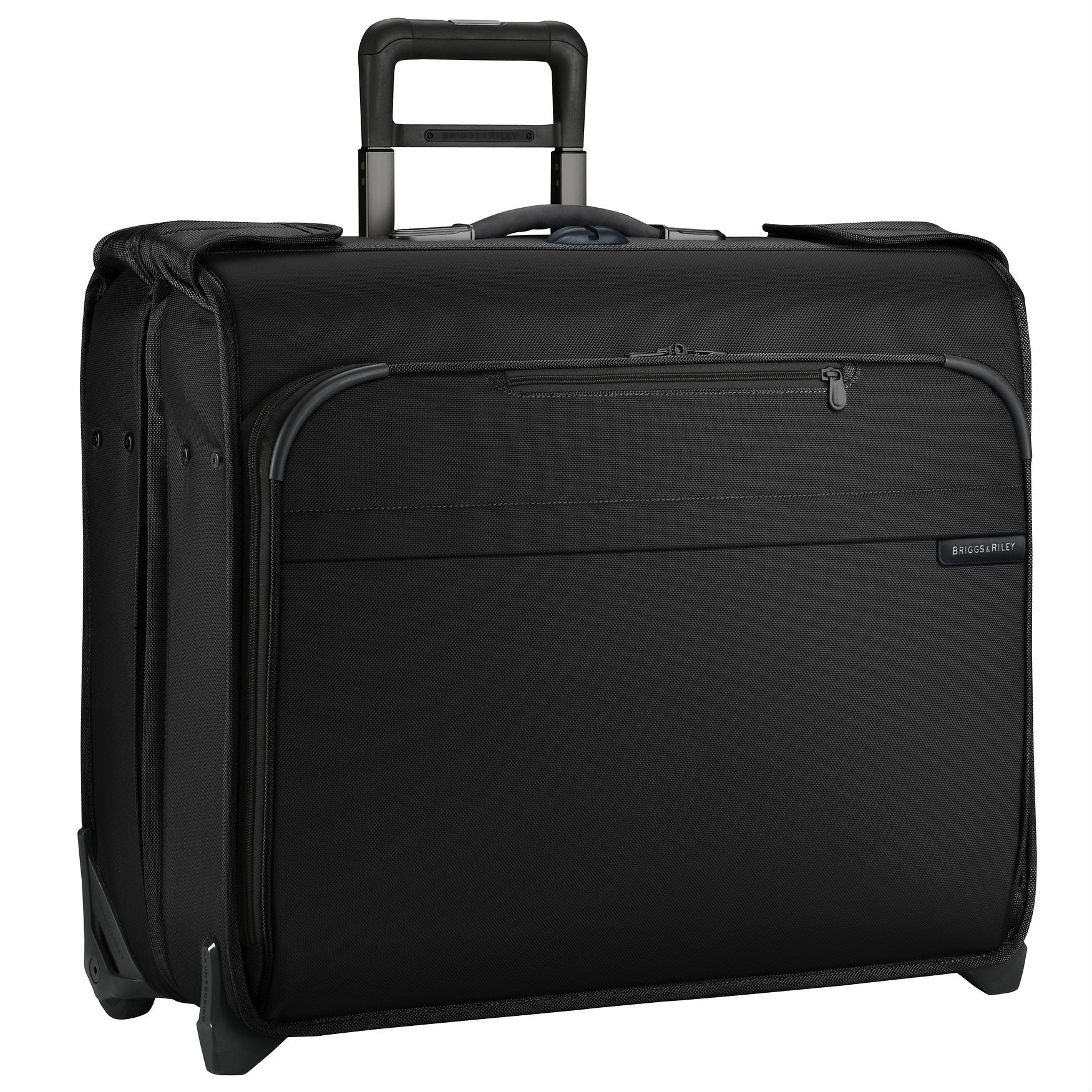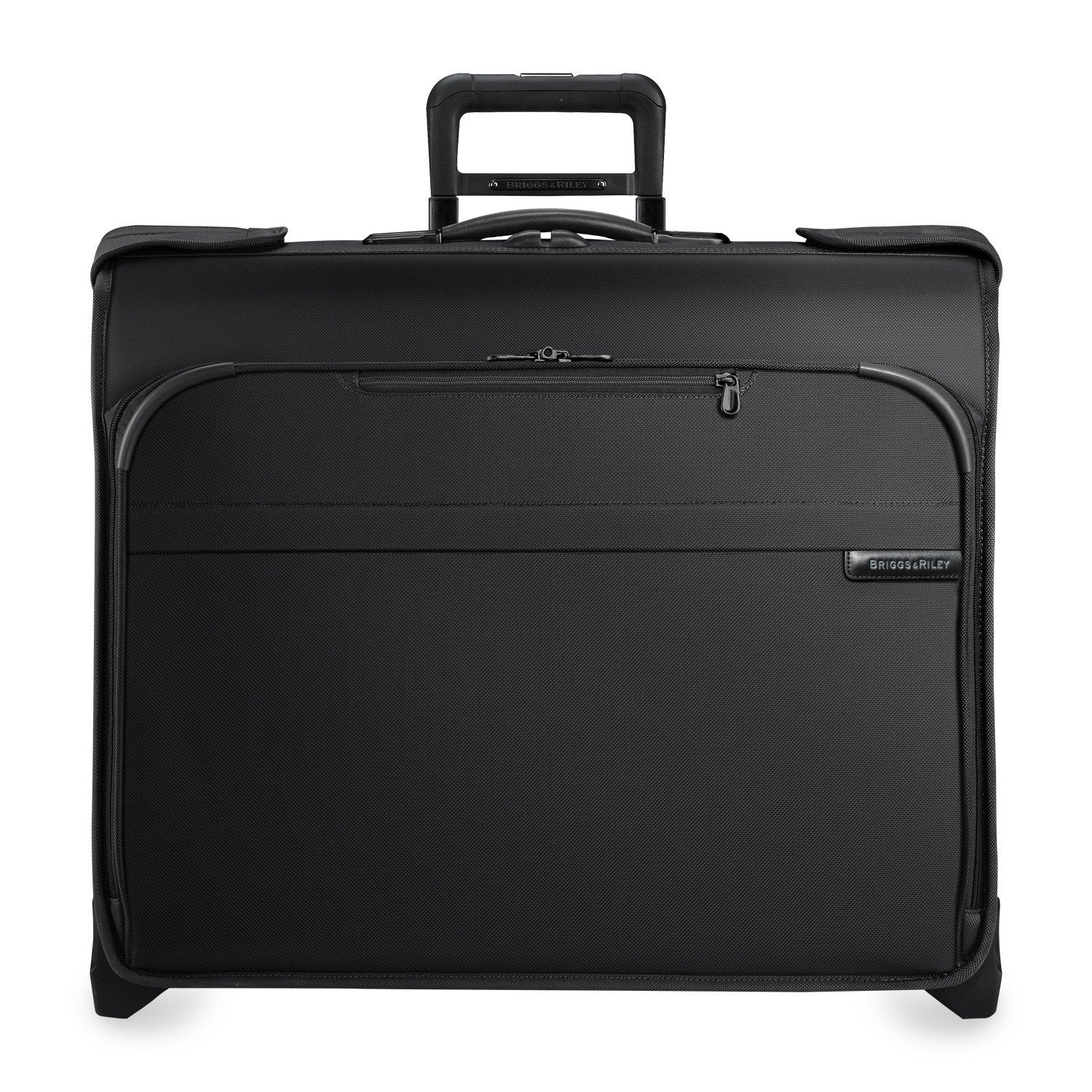 This wheeled carry-on garment bag conveniently carries your hanging garments in a protected structured case while still avoiding checked baggage fees. The durable ballistic nylon outer fabric withstands the toughest travel conditions.