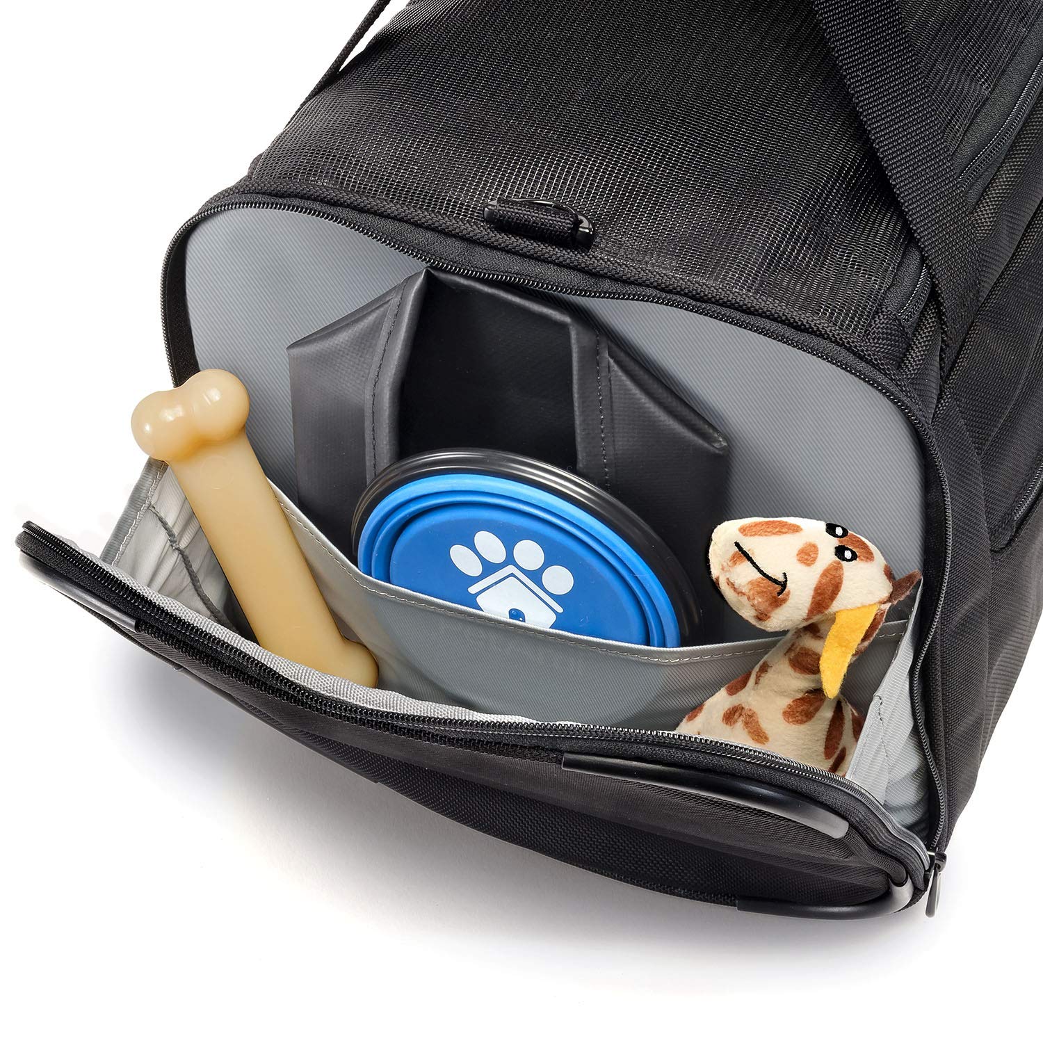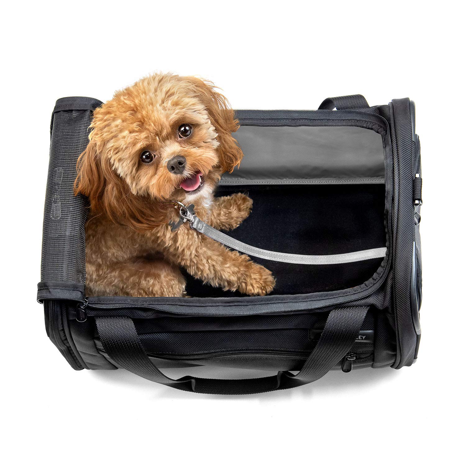 No longer will you have to miss your pets while youre away “ bring your furryfriend along on your travels with our new Baseline Deluxe Pet Carrier! Smallenough to fit under the airline seat in front of you but big enough to keepyour pet comfortable, it will be your new go-to for travels. The inner leashensures their safety while the mesh and zippable window on the side allowsthem to explore the world with you. The side pocket expands for all theirtreats and toys, and you can keep your (and their! ) paperwork secured withinthe front zip pocket. Comes with an ID tag to insert into a discreet backpocket. FOR SMALL SIZE PETS ONLY. DIMENSIONS OF BAG: 11 x 18. 5 x 11 in. /28 x47 x 28 cm Weight: 1. 3 lbs. /. 6 kg Capacity: 2421. 1 cubic in. /40 L "