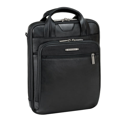 A compact leather brief in a vertical design for all your customer's digitaldevices and files, extremely compact and easy to carry, this bag features amolded divider to separate a laptop and files, it also prevents digital theftwith an rfid blocking pocket and includes a fleece-lined tablet compartmentand a removable shoulder strap