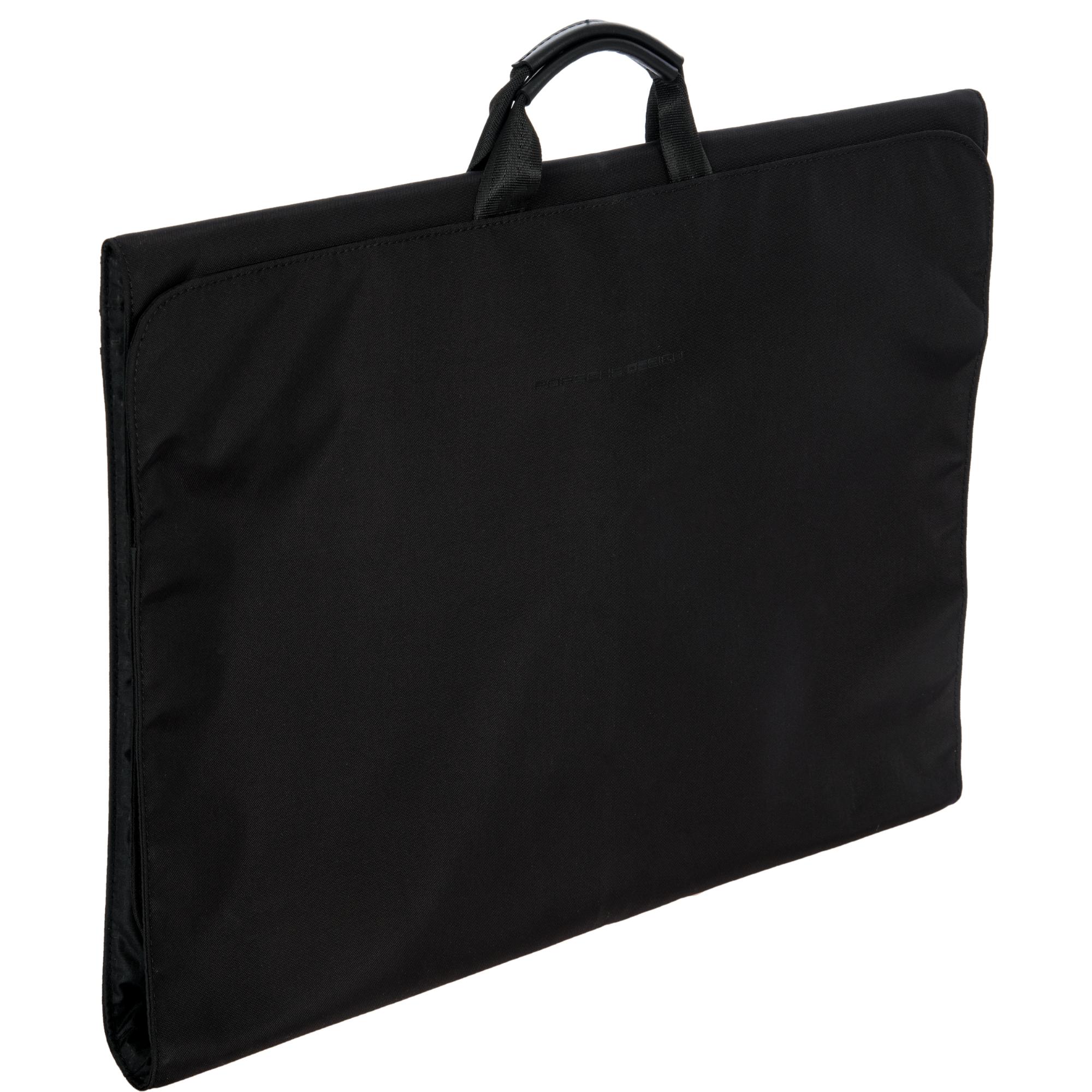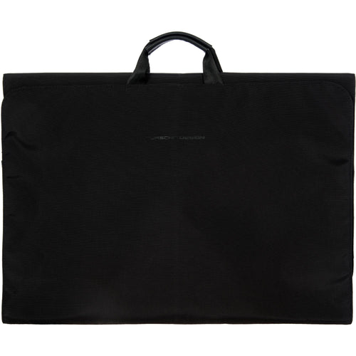 The Porsche Design Roadster Nylon collection clearly sets itself apart from the broad field of classic business bags with its intelligent functionality and exclusive, technical design. The new travel accessories in the series make traveling even more organized and comfortable. The Porsche Design Roadster Nylon Garment Bag S made of nylon fabric with Porsche Design-typical lining protects your suit or high-quality garments on car trips and air travel. The lightweight garment bag is triple foldable for compact transport. Perfect as a complement to the Roadster Hardcase Trolley S or the larger suitcases - but also ideal as an additional piece of luggage for short trips thanks to the additional pocket on the outside. Padded areas in the folding sections reduce wrinkling. A carrying handle facilitates handling, via the additional hook, the garment bag can also be hung directly in the closet. Smart, sleek, stylish.