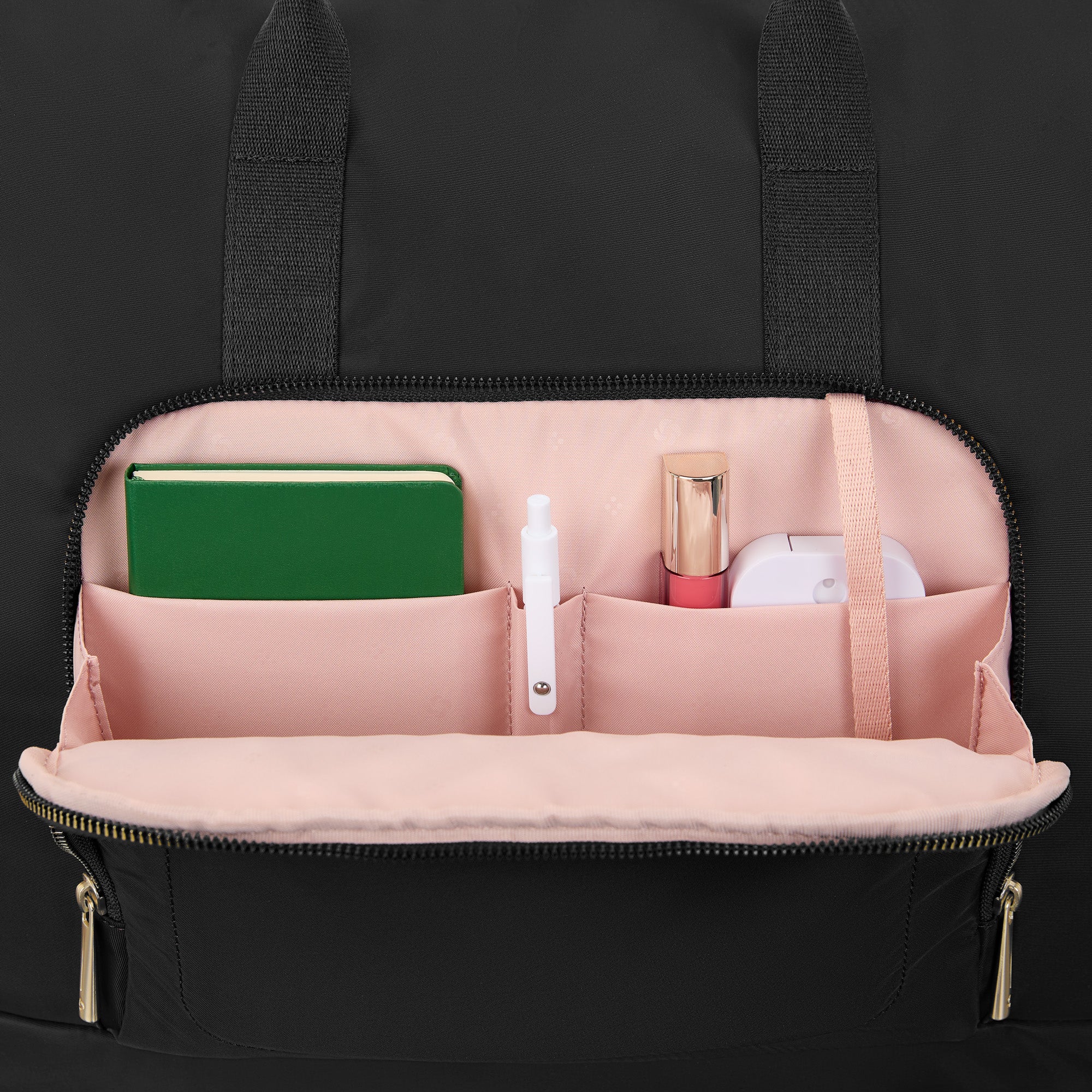 The new Mobile Solution collection blends effortless style with graceful sophistication. Updated with pebbled leather-like trim, custom hardware and zippers in a champagne gold hue, this collection offers office-ready ease with everyday versatility. Each piece is thoughtfully designed to carry your essentialswhether you're navigating busy workdays, commuting, or traveling for business