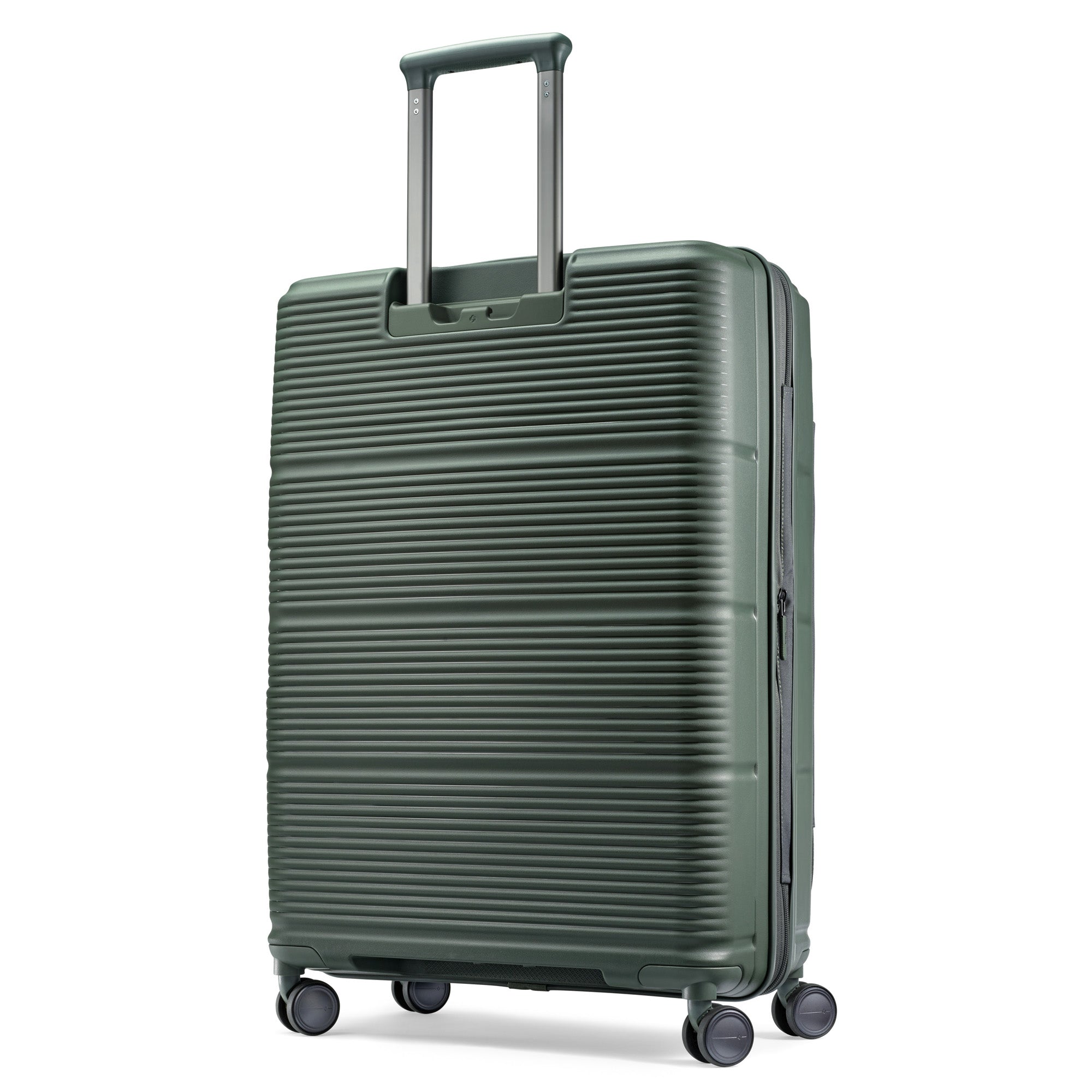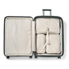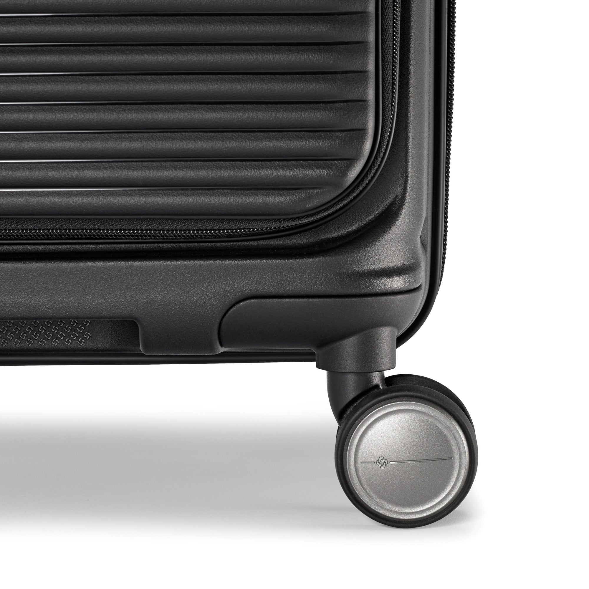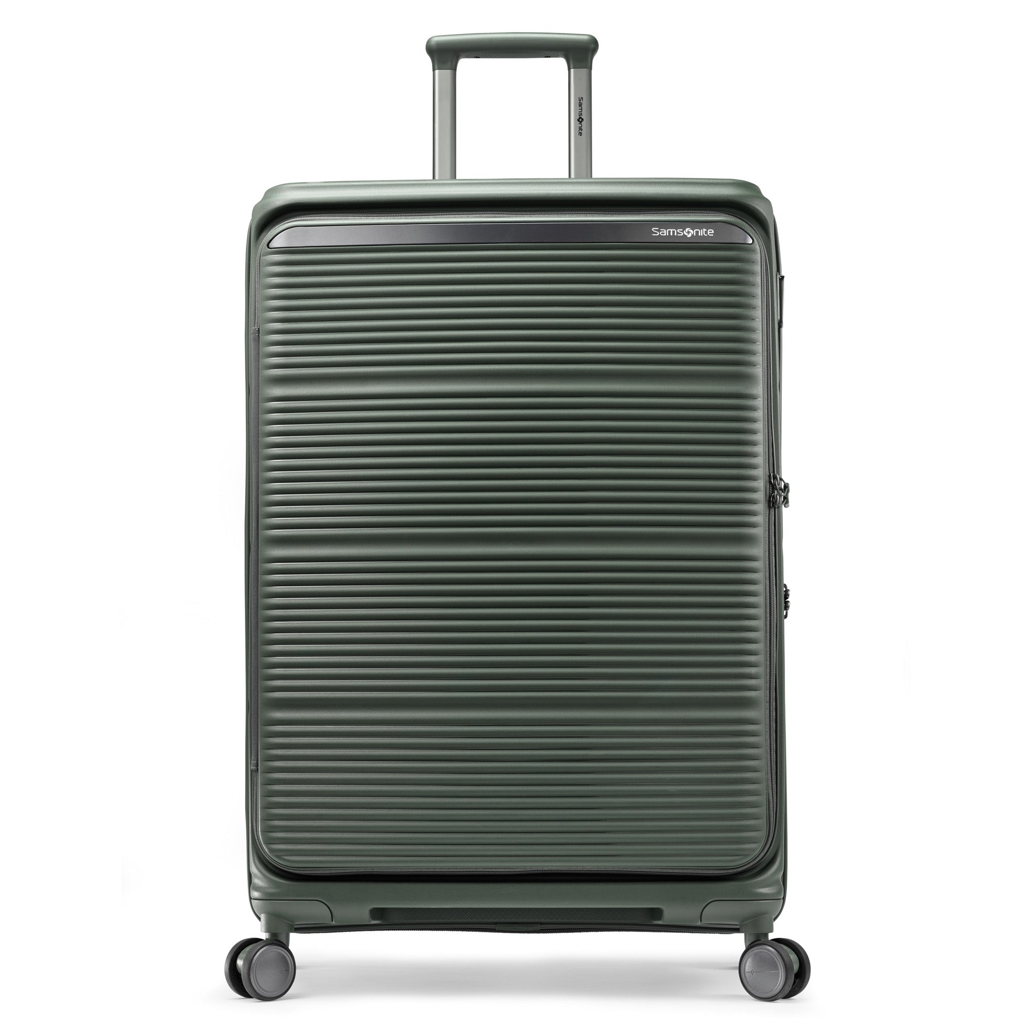 Made from ultra-durable and sustainable materials, the Large Spinner opens from the middle, like traditional luggage, and provides a second front door opening that allows you to fully pack and unpack when floor space is limited.