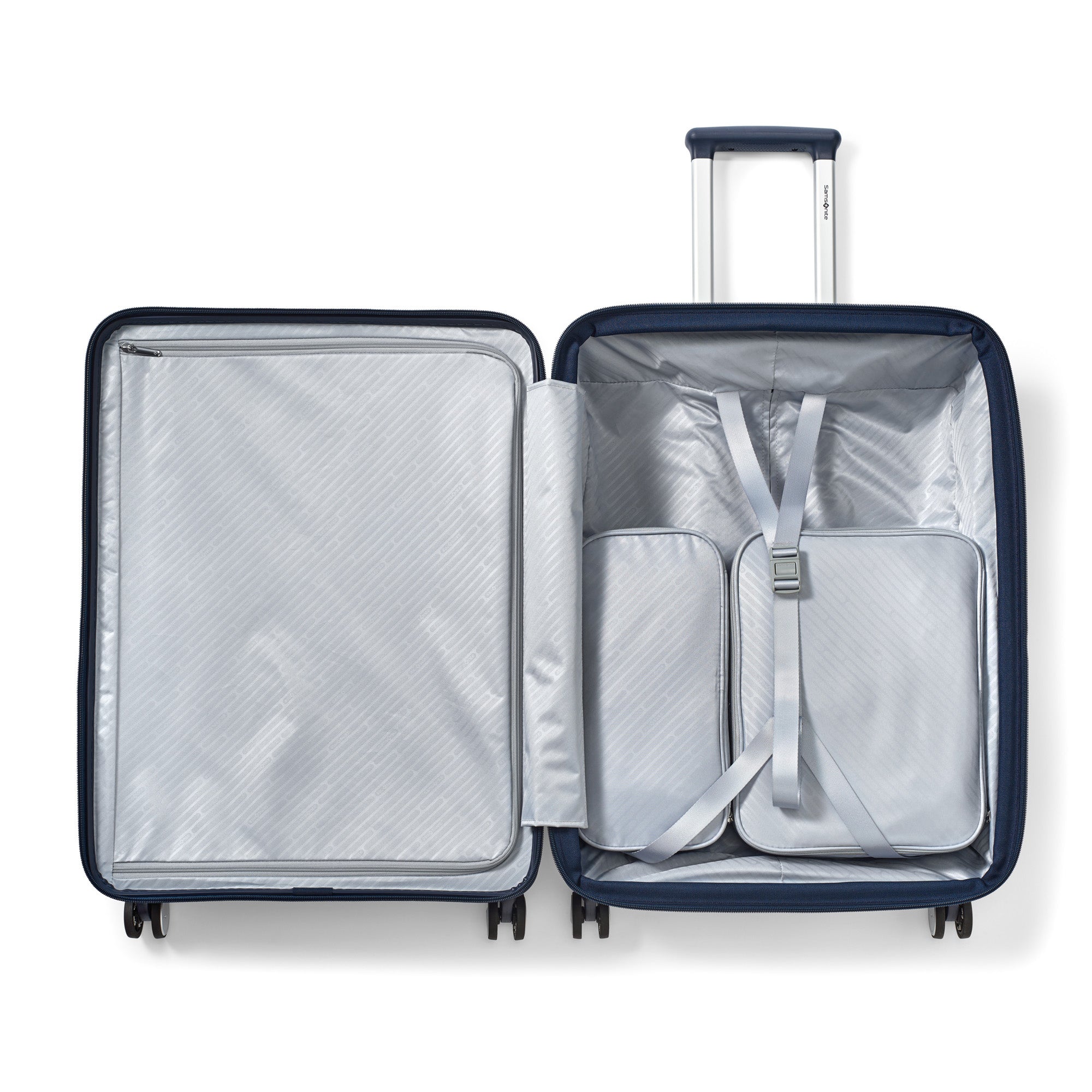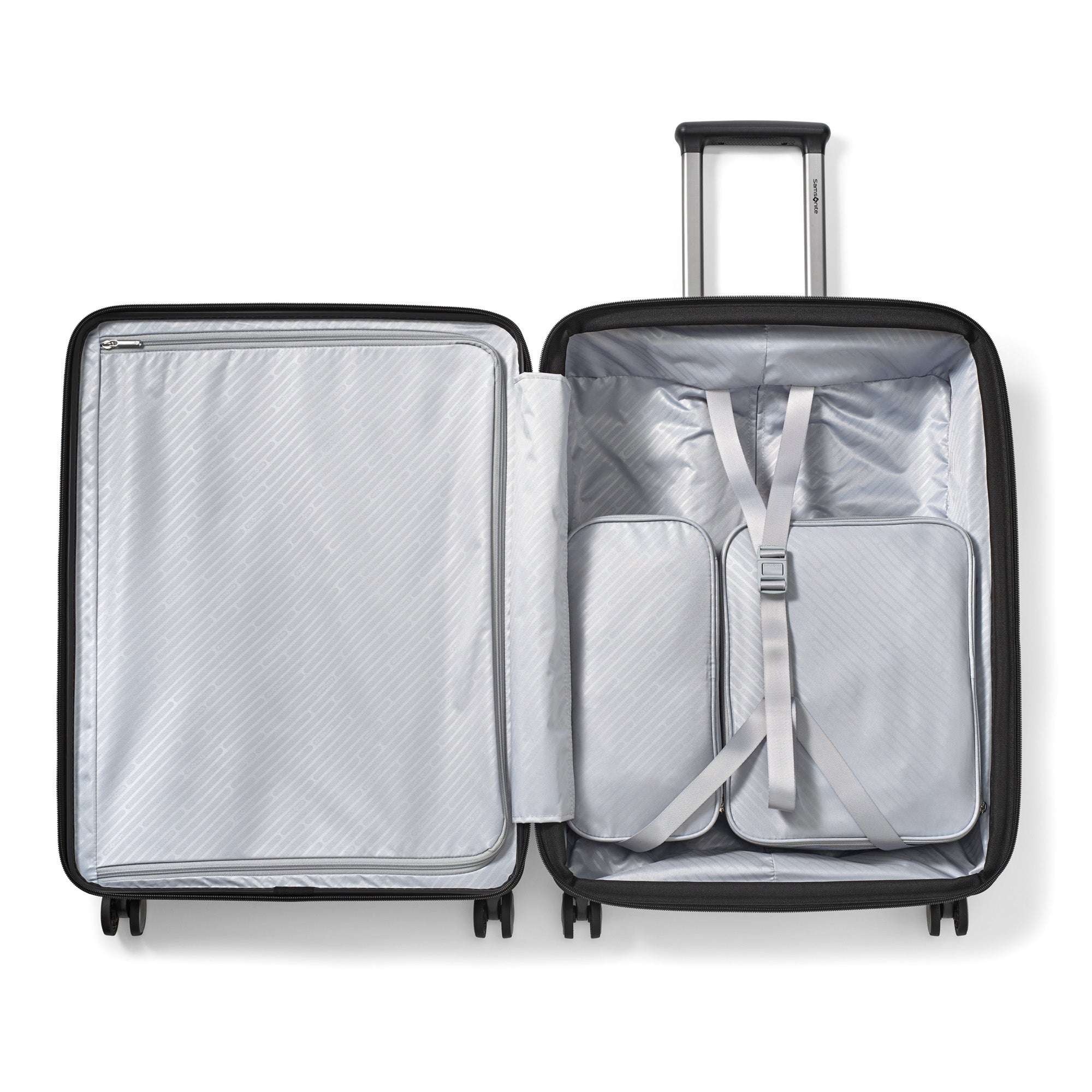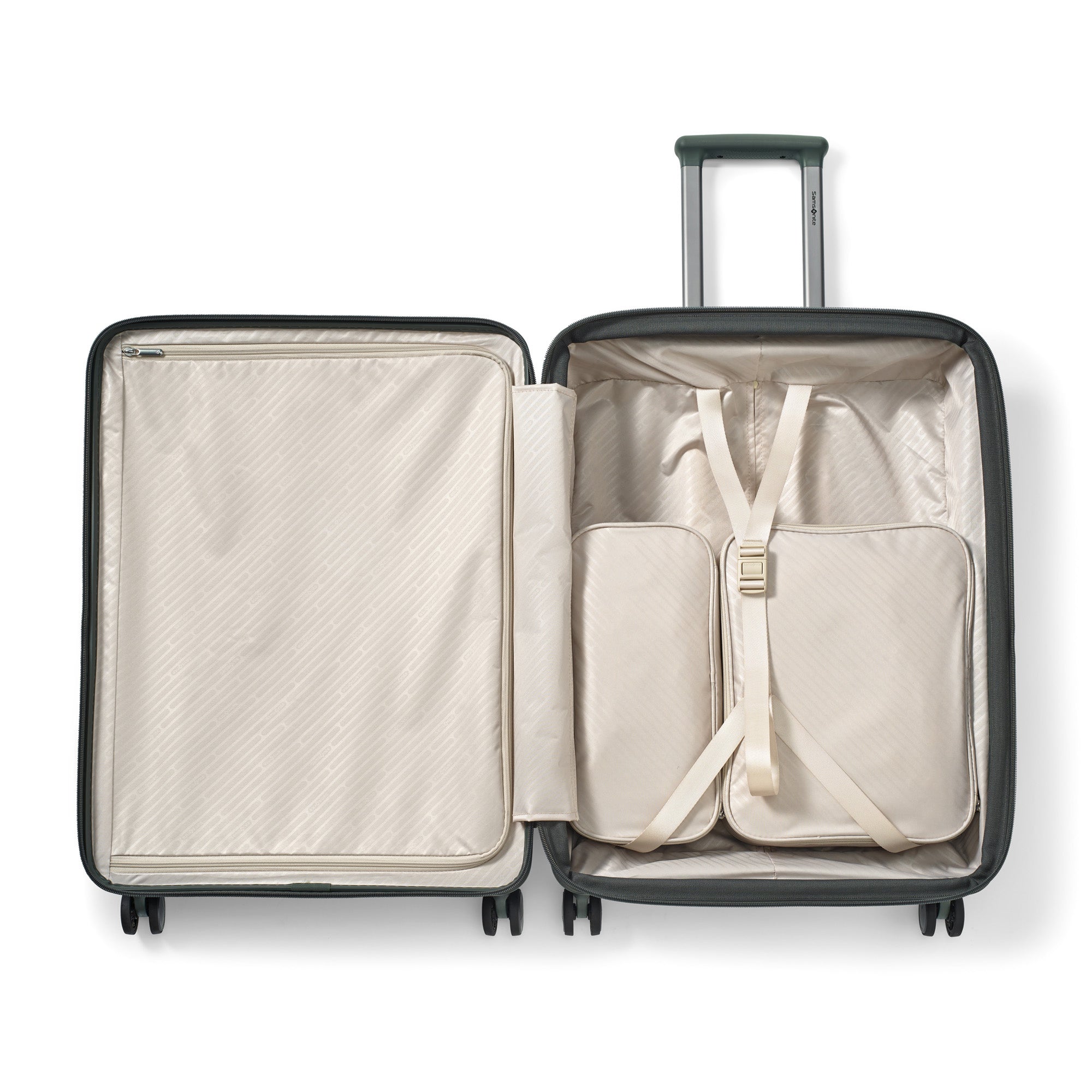 Made from ultra-durable and sustainable materials, the Medium Spinner opens from the middle, like traditional luggage, and provides a second front door opening that allows you to fully pack and unpack when floor space is limited.