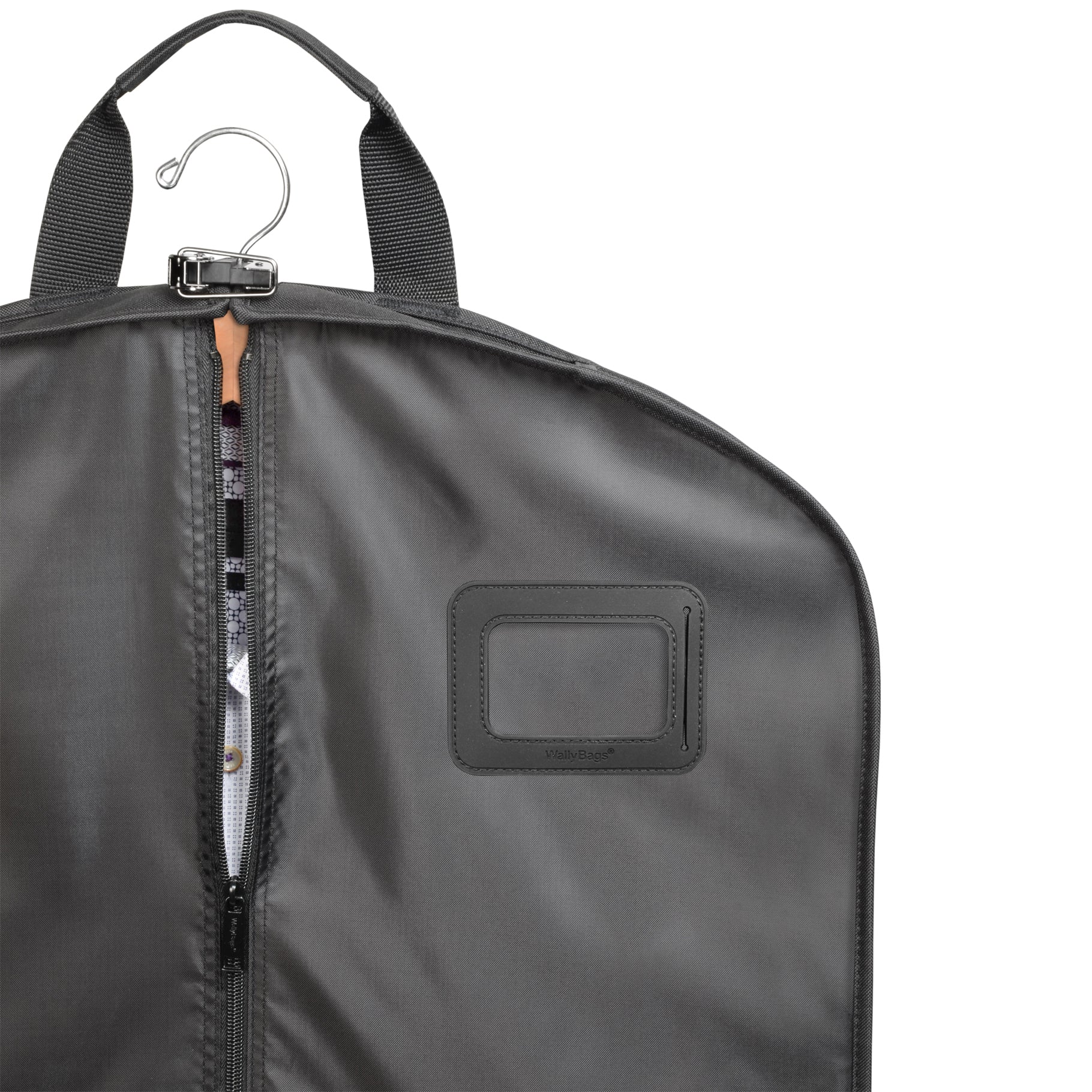 This 40-inch length is great for suits, cocktail dresses, jackets, uniforms and more. Clothes stay neat and wrinkle-free in this lightweight, fully lined, two pocket garment bag with patented WallyLock hanger clamp. The Wally clamp holds up to 6 hangers of any kind so clothes won't fall to the bottom of the bag.