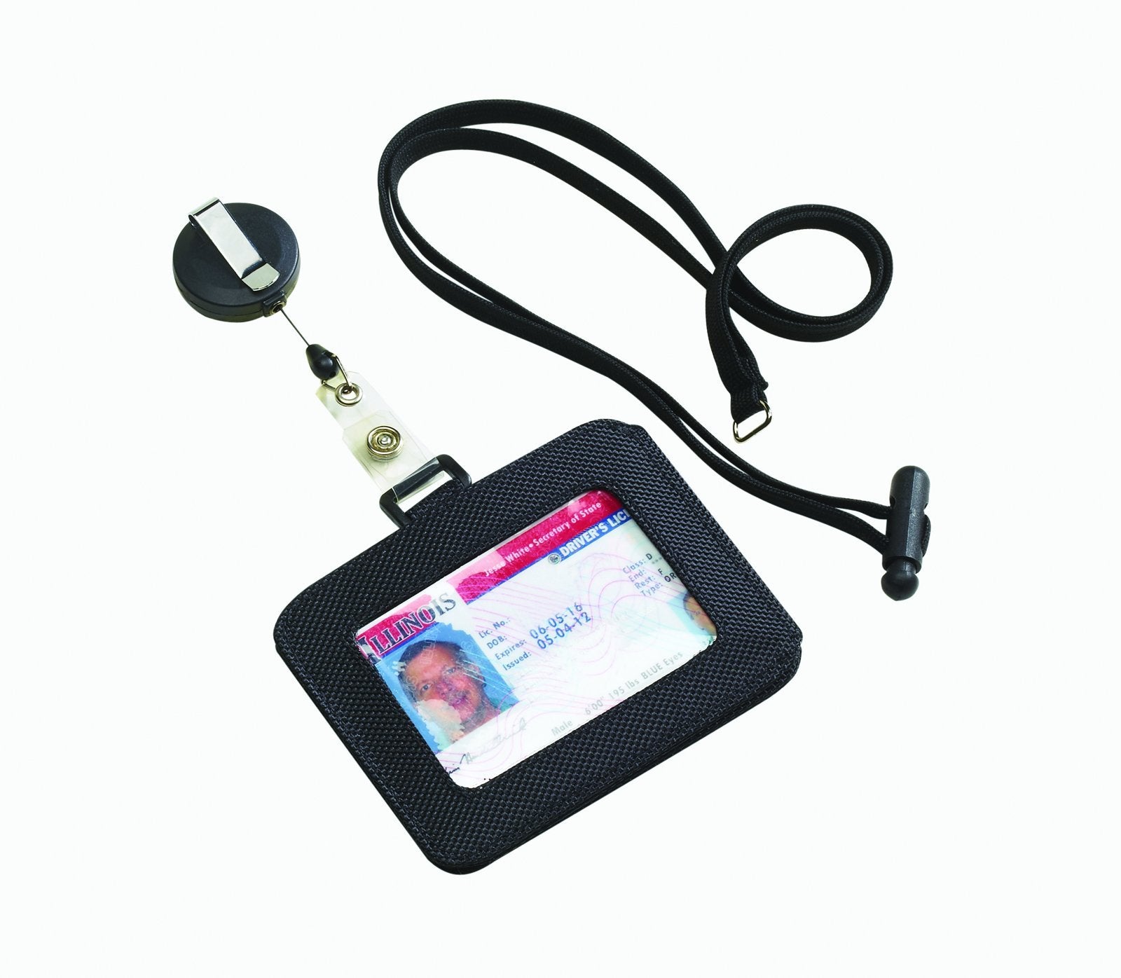 Perfect for work or travel, id holder offer quick access to your id when open,or close the flap for privacy and rfid protection. Retracable cable andlanyard included.
