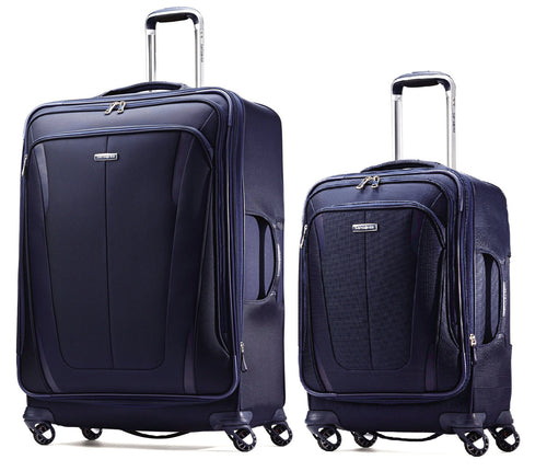 Both pieces of luggage come with the newly designed split spherical wheels. These wheels give you the ability to effortlessly roll over uneven and rough surfaces with very little effort. The pull handle is textured and gel-infused so you will have a very comfortable grip when pushing or pulling these bags along to your next destination. The exterior is made from a SamGuard tri-core nylon which is strong and lightweight with a water-resistant barrier to keep your contents dry.The interior of the luggage is fully featured and has many pockets to help organize your things. It includes a WetPak, mesh, and modesty pockets so you can pack your smaller items and find them easily at a later time. The 25" spinner has a removable tri-fold suiter to hold your formal attire and keep it wrinkle-free.It also has an expandable feature to holod those extra items that you may have picked up from your trip. The bottom corners are rubberized and textured so they will be protected fropm those critical points during your travels.