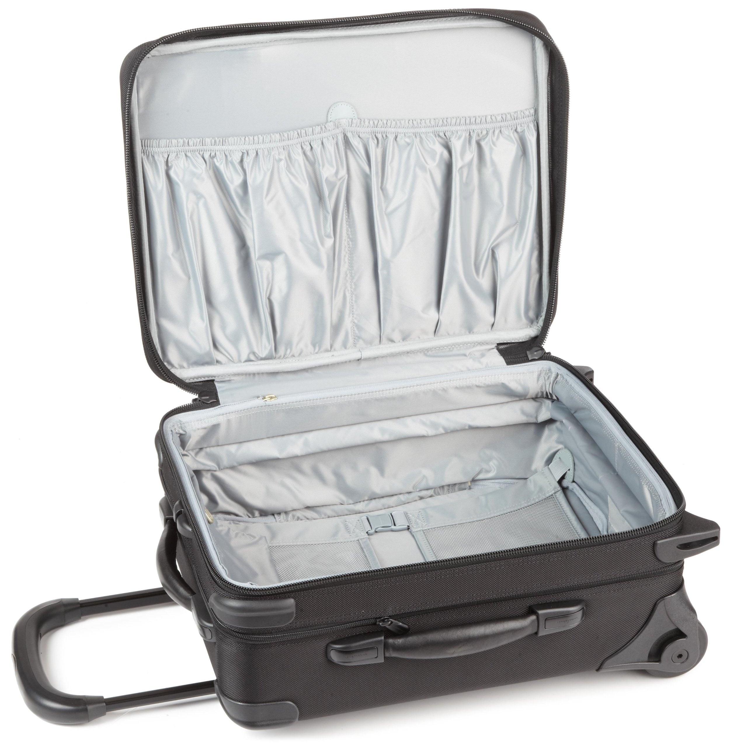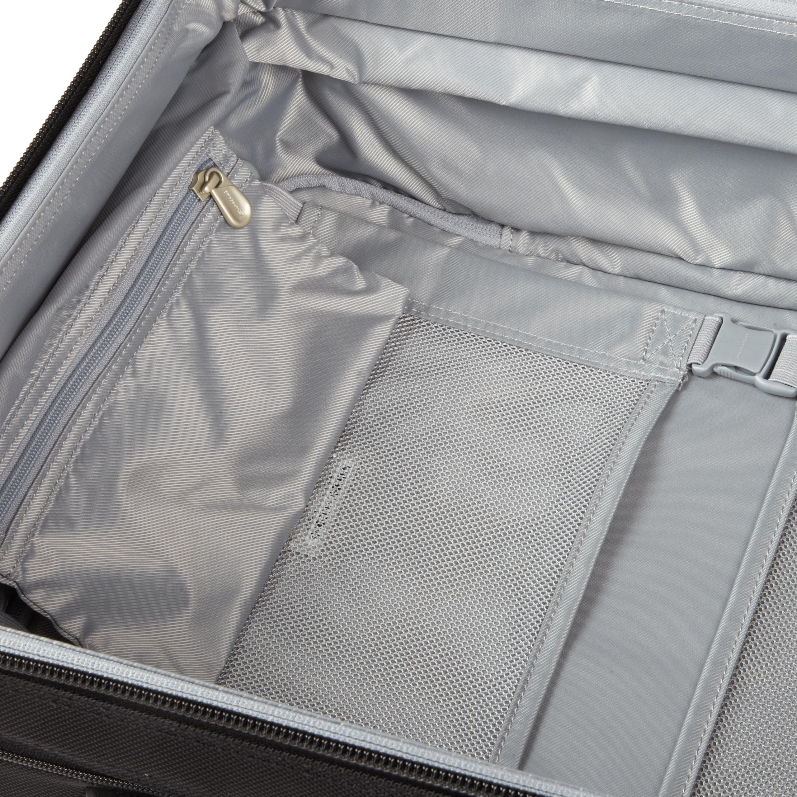 Product description U418X-4 Color: Black Features: -Outer fabric resists wear,water, dirt and abrasions.-A foam roll bar to prevent wrinkling.-Garmentsecuring panels keep clothes in place, minimizing wrinkles.-Pockets on lid areperfect for undergarments, socks or t-shirts.-Built- in mesh pocket is perfectfor toiletries, makeup, etc.-Outsider handle for wrinkle-free flatpacking.-Variable locking handle made from 100pct aircraft gradealuminum.-Outsider pocket is perfect for quick access items like anumbrella.-An elastic hide-away ID card to conceal personal information.-Speedthru pocket for hassle-free airport security checks.-Orange lining alerts whenpocket is open.-Smart link system allows you to attach one or more bags toanother wheeled bag for convenient transport.-Sheer strength hybrid frame islightweight and provides flexibility.-Durability and shape retention.-Zip-around expansion system increases packing capacity by 24pct.-Retractable,leather grip handle on top and side for quick handling.-Integrated bottomhandle with comfort edge for convenient transport.-Low profile wheels and feetfit most overhead compartments.-Ballistic nylon outer fabric resists wear,water, dirt and abrasions.-Self-repairing, durable YKK racquet coilzippers.-Ergonomic zipper pulls for easy open and close, lockable maincompartment zipper pulls. Construction: -Constructed of ballistic nylon.Dimensions: -Weight: 8.4 lbs.-Dimensions: 18'' H x 14'' W x 8'' D. From theManufacturer This compact, lightweight case is perfect for overnight trips. At18 inches in height, it is an ideal carry-on for travel within Europe andAsia. The zipper expansion adds 24% more packing space when needed.
