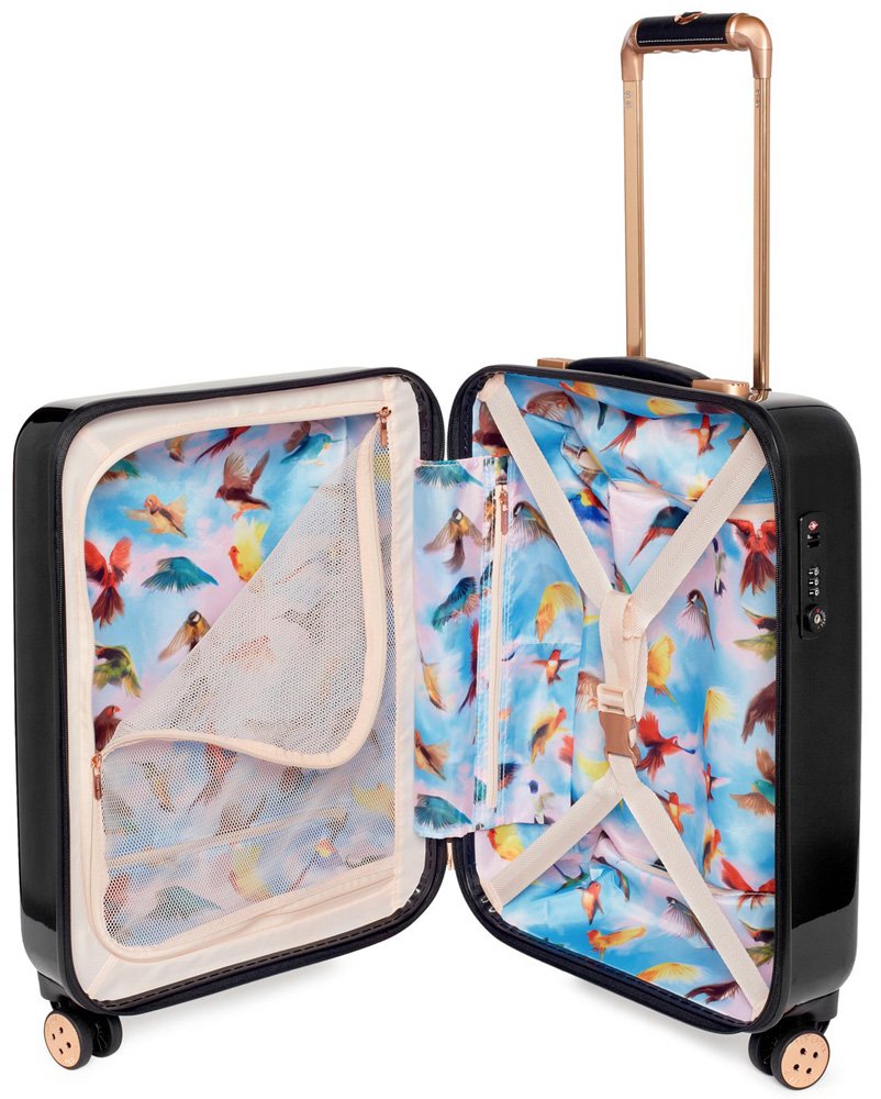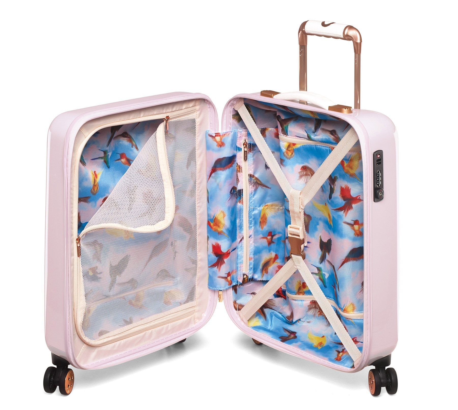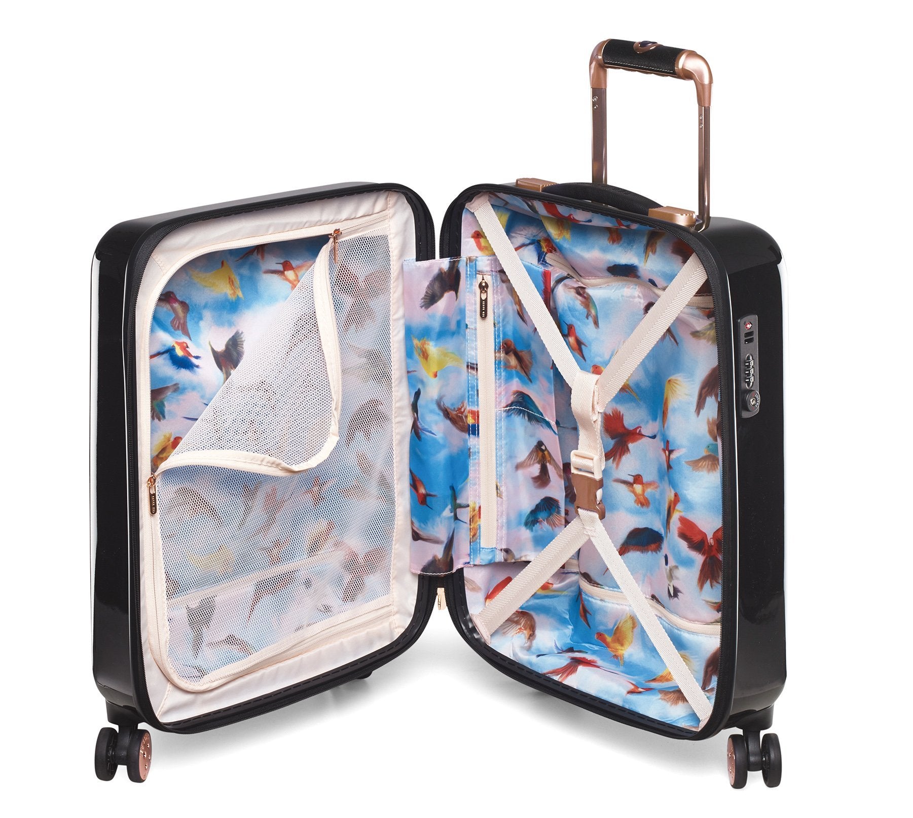 Do you like to be thought of as a fashion icon? Than your travels cannot be without Ted Baker Women's Small Hardside. Strolling through the airport with this floral polycarbonate carry on is a conversation piece from takeoff to landing. With all the up to date features such as TSA friendly lock, four spinner wheels, and organizational compartments you will be pleased. If the exterior design is not enough to impress you, just unzip and take a peek inside! The printed lining and rose gold hardware make your packing experience exceptional.