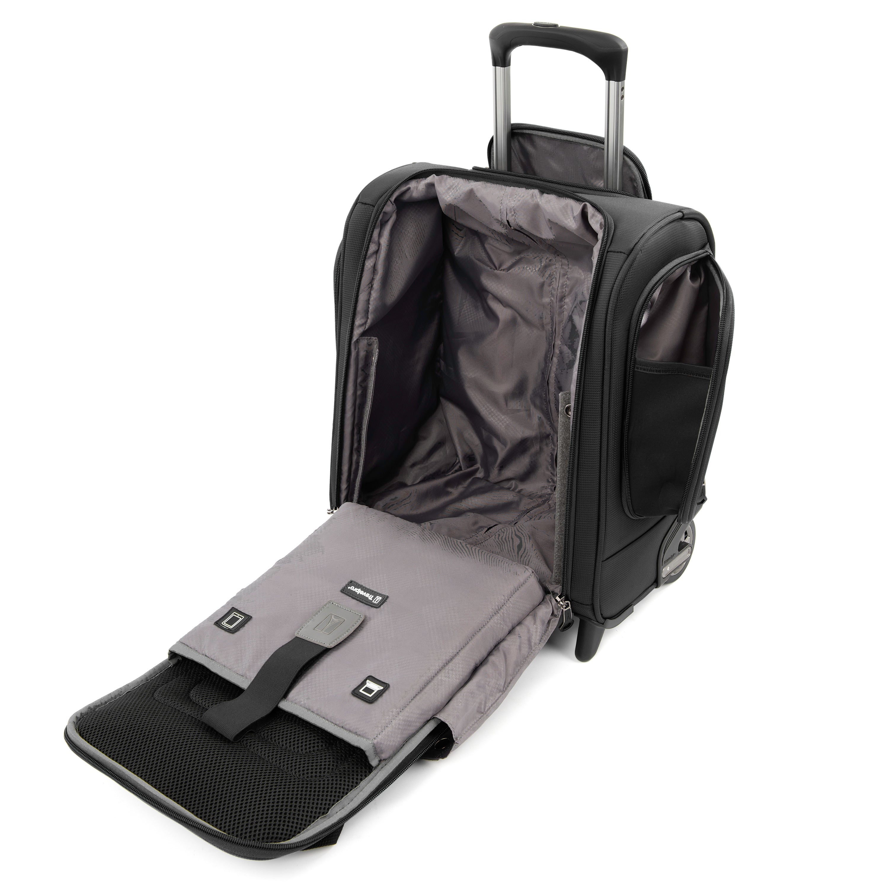 Like your personal tour guide, the Tourlite Rolling UnderSeat Carry-On will keep your travels organized and rolling smoothly. Designed to accommodate short trips on its own or be an accessory to other luggage, this compact bag is sized to fit under the seats of most domestic airlines. Keep your travel essentials close and convenient with built-in organization, including a padded laptop/tablet sleeve, roomy interior and exterior side pockets ideal for a water bottle or compact umbrella. Roll with ease on high performance inline skate wheels led by a lightweight PowerScope handle that extends to 42.5 for taller users, or use the rear stacking strap to secure the bag on top of any Rollaboard or spinner suitcase for secure stacking and hands-free mobility. Polyester fabric, treated to resist moisture and stains, looks great wherever your touring takes you! Backed by our Limited Lifetime Warranty.