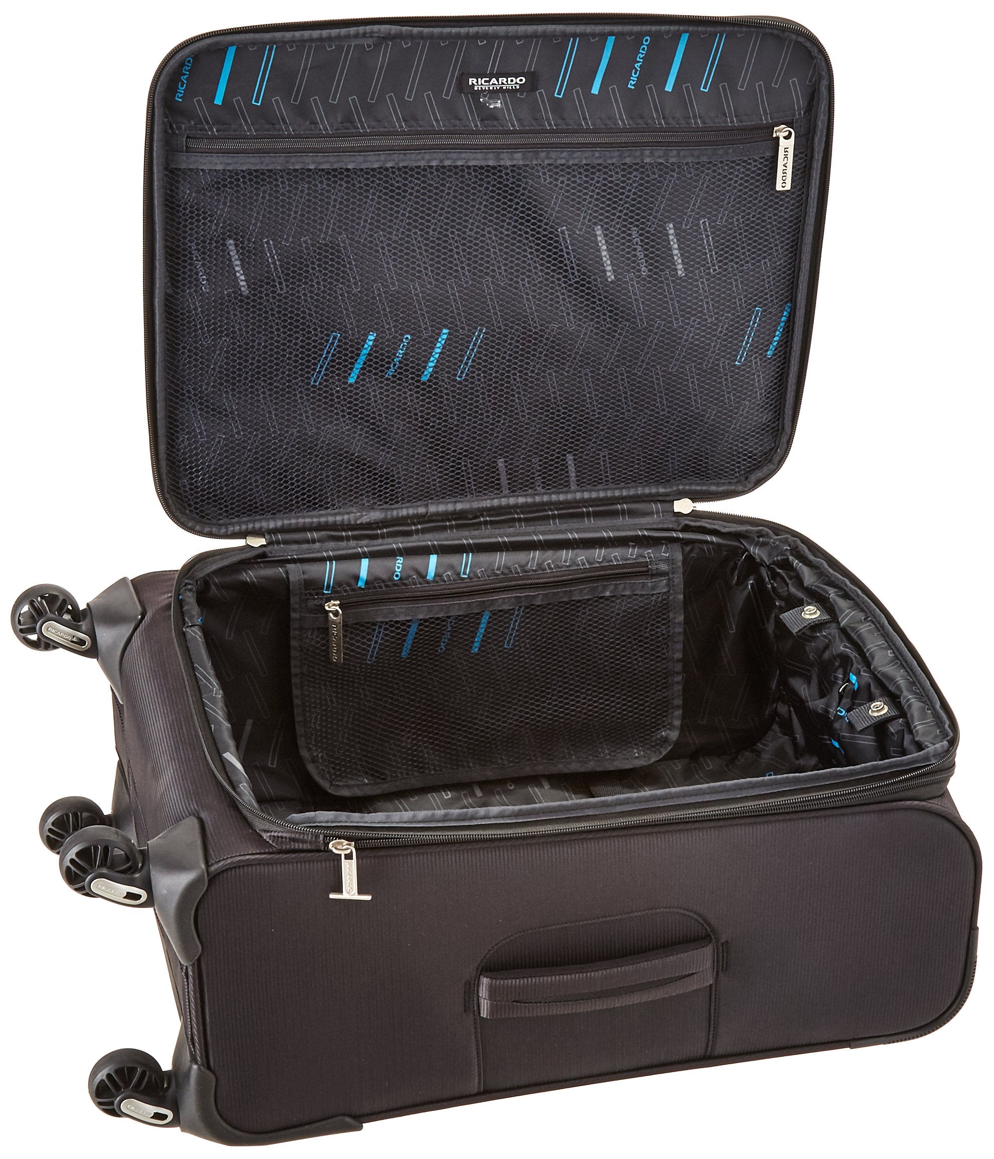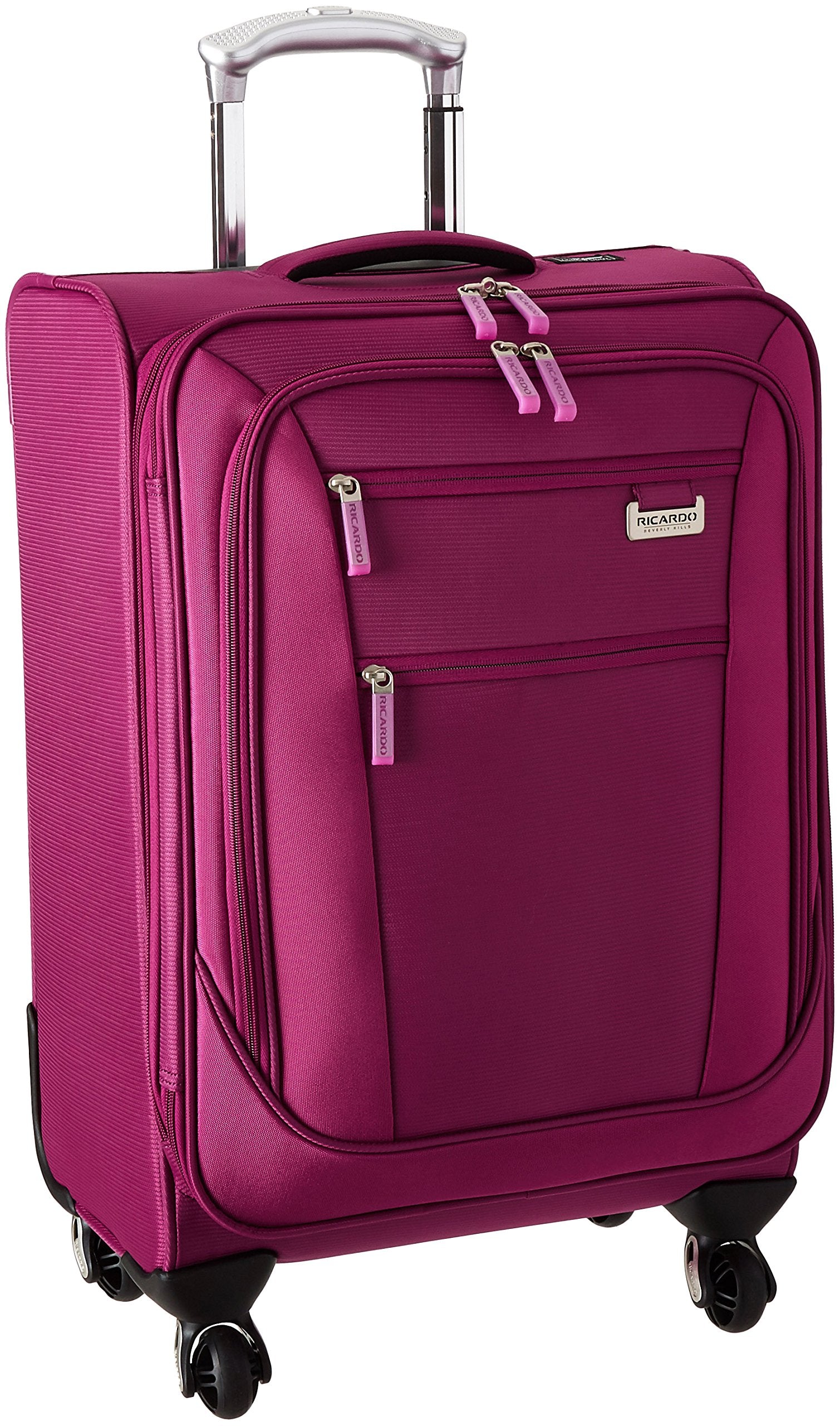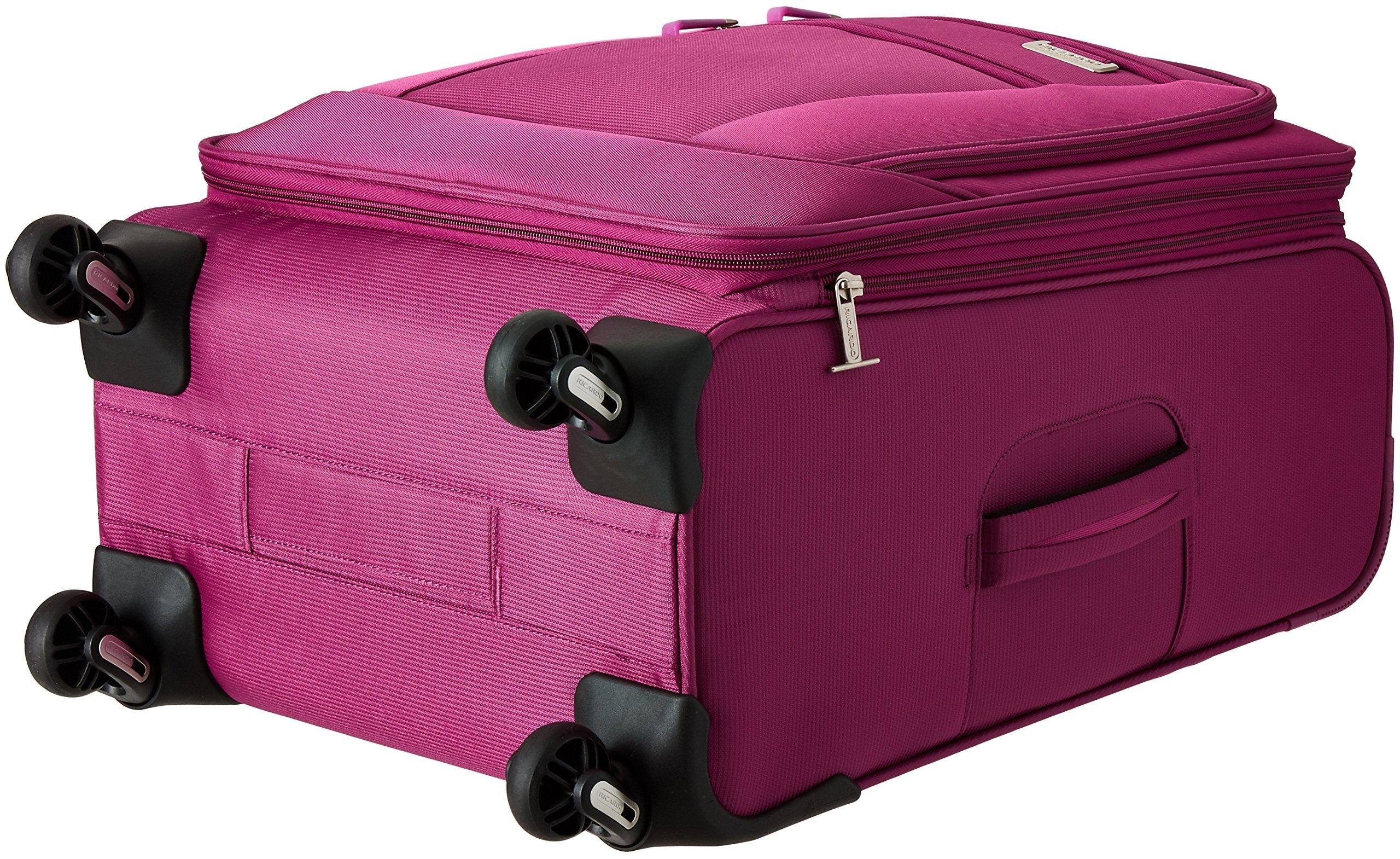 This del mar ultralight soft side collection features a new precision engineered spinner wheels and tray system that provides exceptional stability and mobility whether you push, pull or walk alongside the case. The retractable handle system has an ergonomic push-button handle that adjusts to the height that fits your comfort needs. Innovative cushioned top and side carry handle design is incredibly lightweight yet extremely durable. The interior has multiple pockets for you to organize you personal belongings.