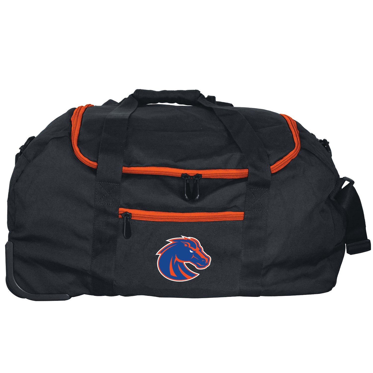 This sporty wheeled duffle bag is a must for the ultimate bag for the gym fans. Instead of a traditional duffel, the L802 wheeled duffel series is spacious enough to fit all your gym belongings and features an exterior side pocket for quick-grab necessities like your gym ID or wallet. The high-quality corner mounted wheels make also traveling a breeze so you can use it for outside the gym too. It collapses and stows into its own 17 x 8 x6 drawstring sack for easy storage. Both the duffle and storage stack feature the logo of your favorite team