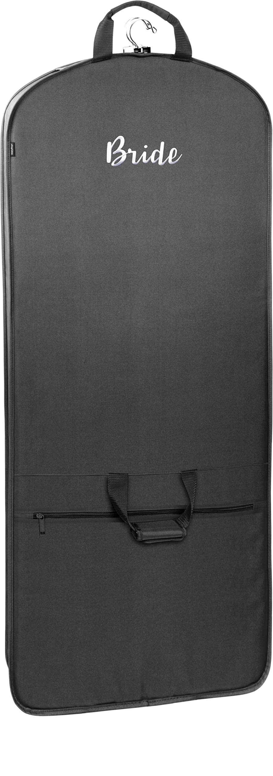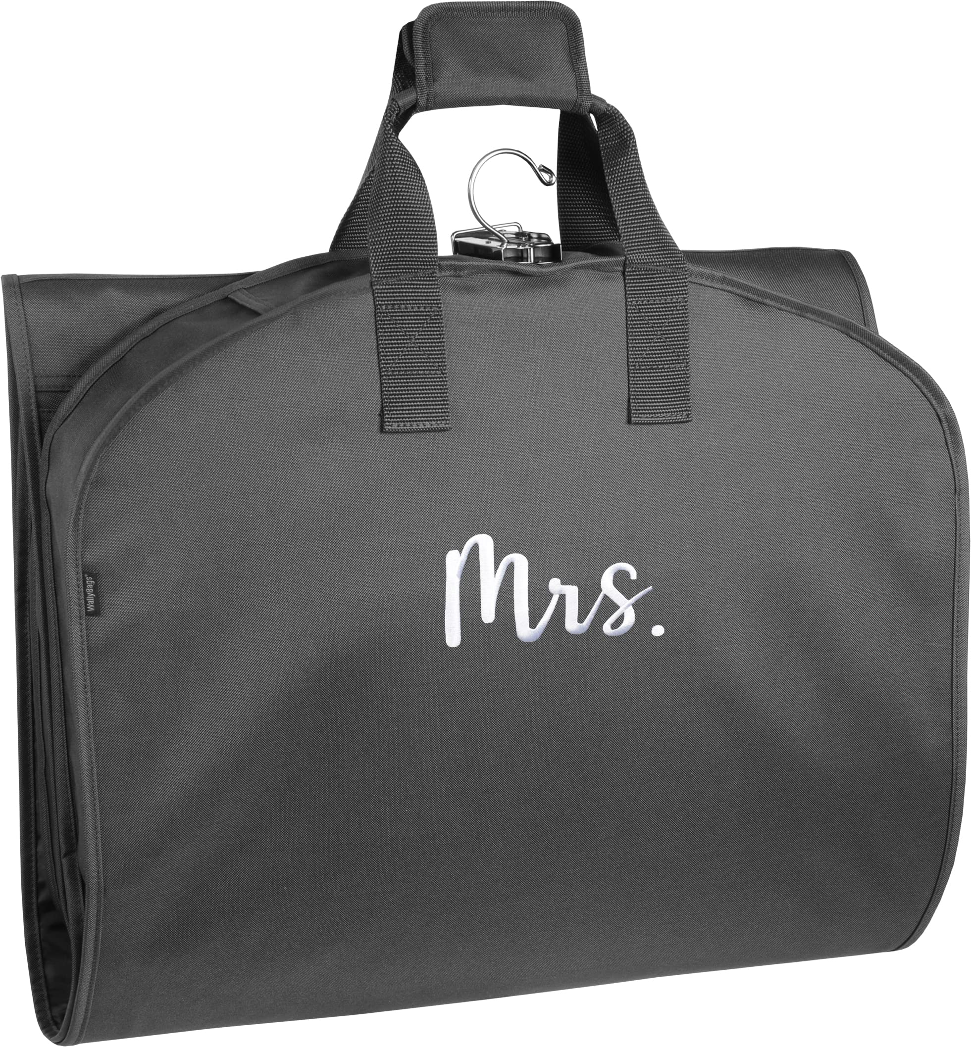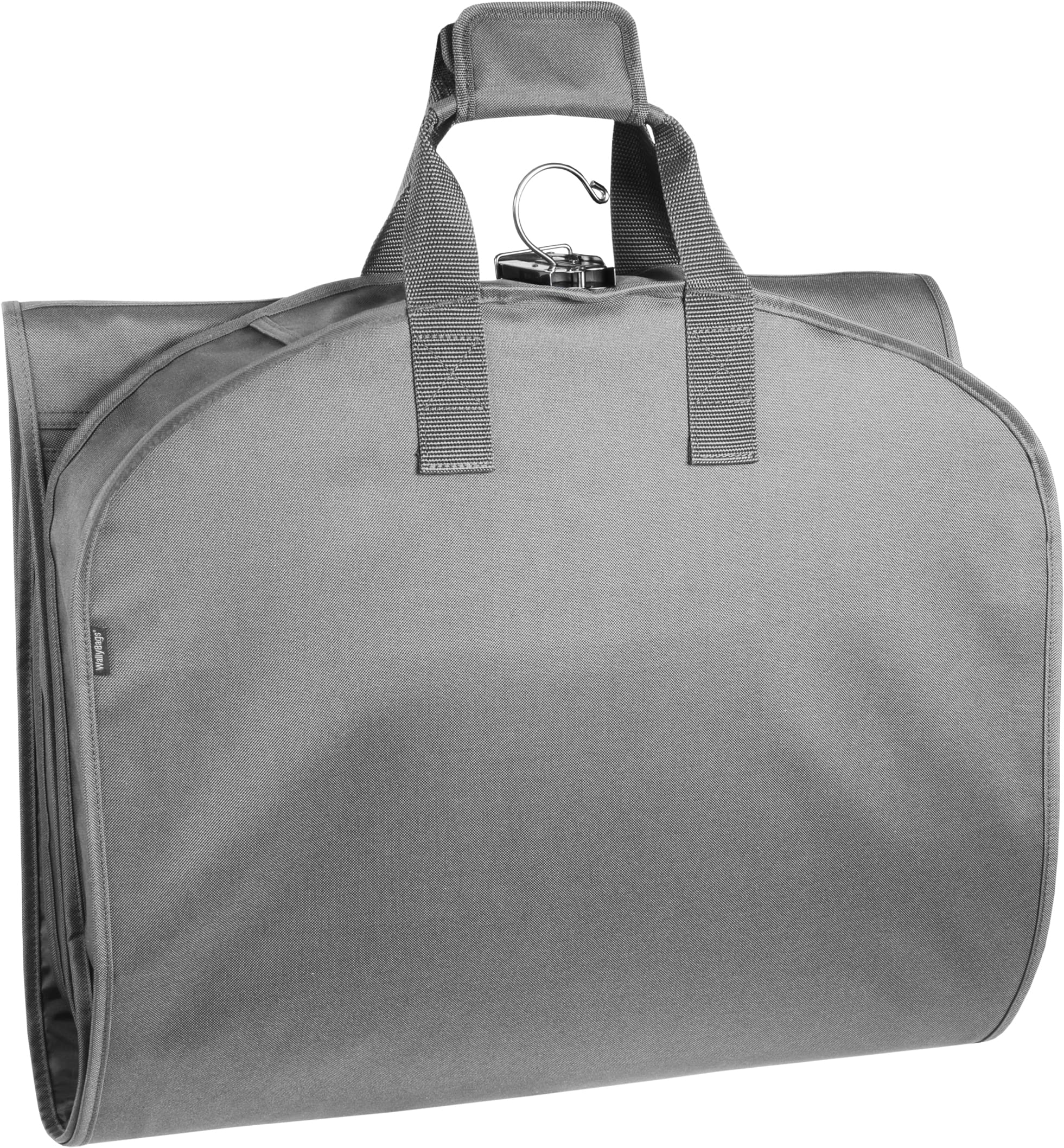 Arrive at your destination ready for any occasion! Great for weddings and special events, dance teams, performers, business travelers and more. Clothes stay neat and wrinkle-free in this lightweight and easy to carry tri-fold travel garment bag with WallyLock hanger clamping system. The Wally clamp holds up to 6 hangers and secures them at the top of the bag. Full length center zipper simplifies packing and fully lined pinstripe interior adds protection and style. One large pocket roomy enough for shoes or a toiletry kit. Soft fabric handles fasten together and can wrap around the trolley system of rolling luggage. Conveniently fits in the overhead bin for most airlines or lies flat in the trunk of your car. Durable polyester fabric is water repellent, providing all weather protection. Our premium garment bags can be monogrammed or personalized at your local embroidery shop to create a unique travel bag made just for you. Covered by a 10 Year Warranty.