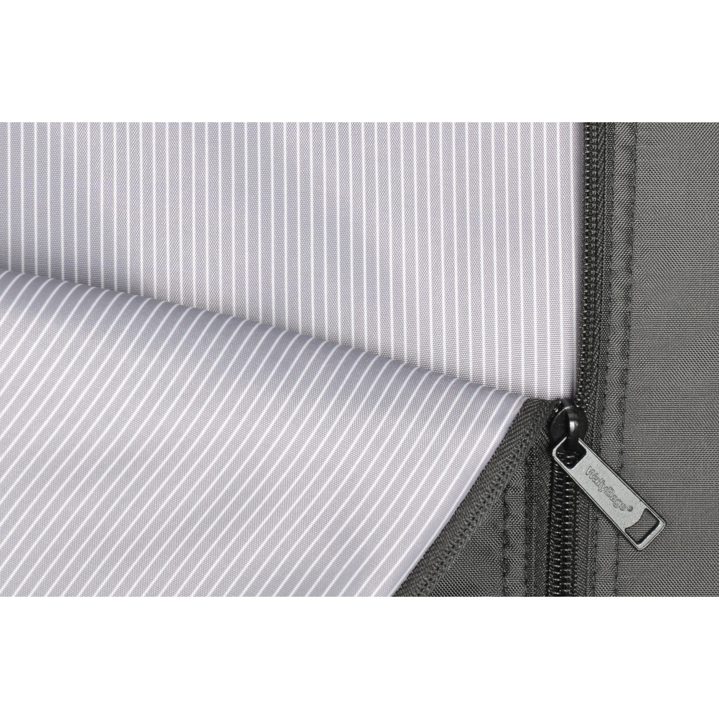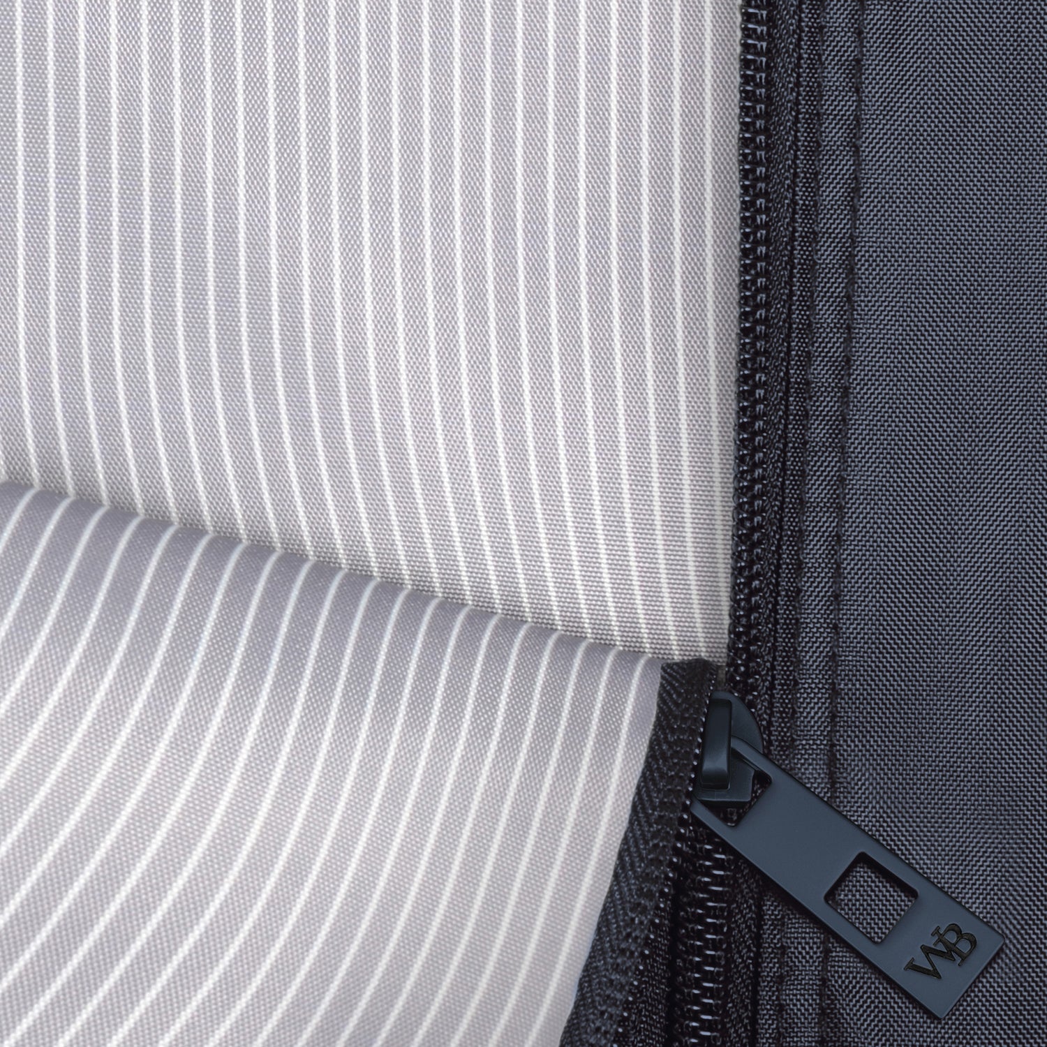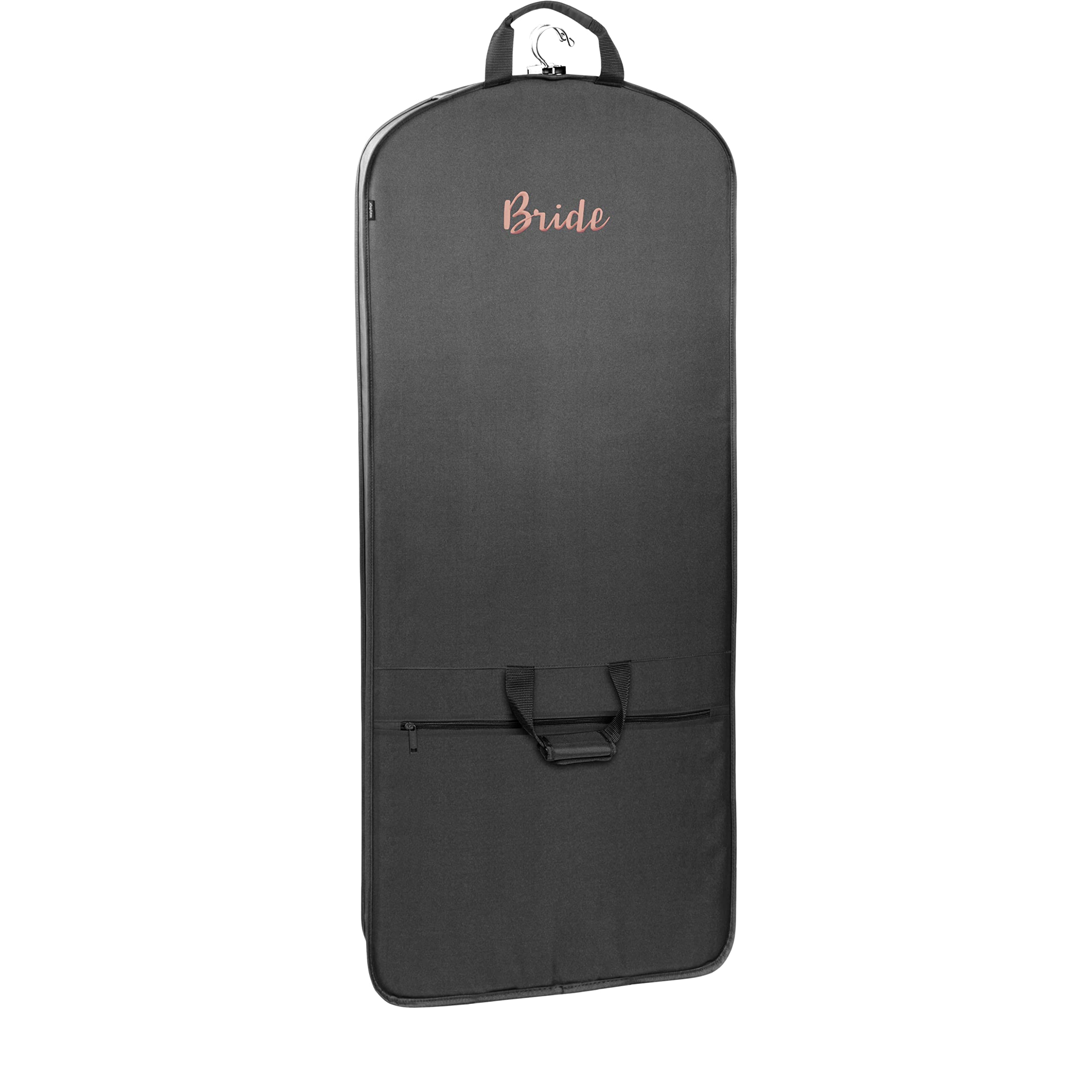 Arrive at your destination ready for any occasion! Great for weddings and special events, dance teams, performers, business travelers and more. Clothes stay neat and wrinkle-free in this lightweight and easy to carry tri-fold travel garment bag with WallyLock hanger clamping system. The Wally clamp holds up to 6 hangers and secures them at the top of the bag. Full length center zipper simplifies packing and fully lined pinstripe interior adds protection and style. One large pocket roomy enough for shoes or a toiletry kit. Soft fabric handles fasten together and can wrap around the trolley system of rolling luggage. Conveniently fits in the overhead bin for most airlines or lies flat in the trunk of your car. Durable polyester fabric is water repellent, providing all weather protection. Our premium garment bags can be monogrammed or personalized at your local embroidery shop to create a unique travel bag made just for you. Covered by a 10 Year Warranty.