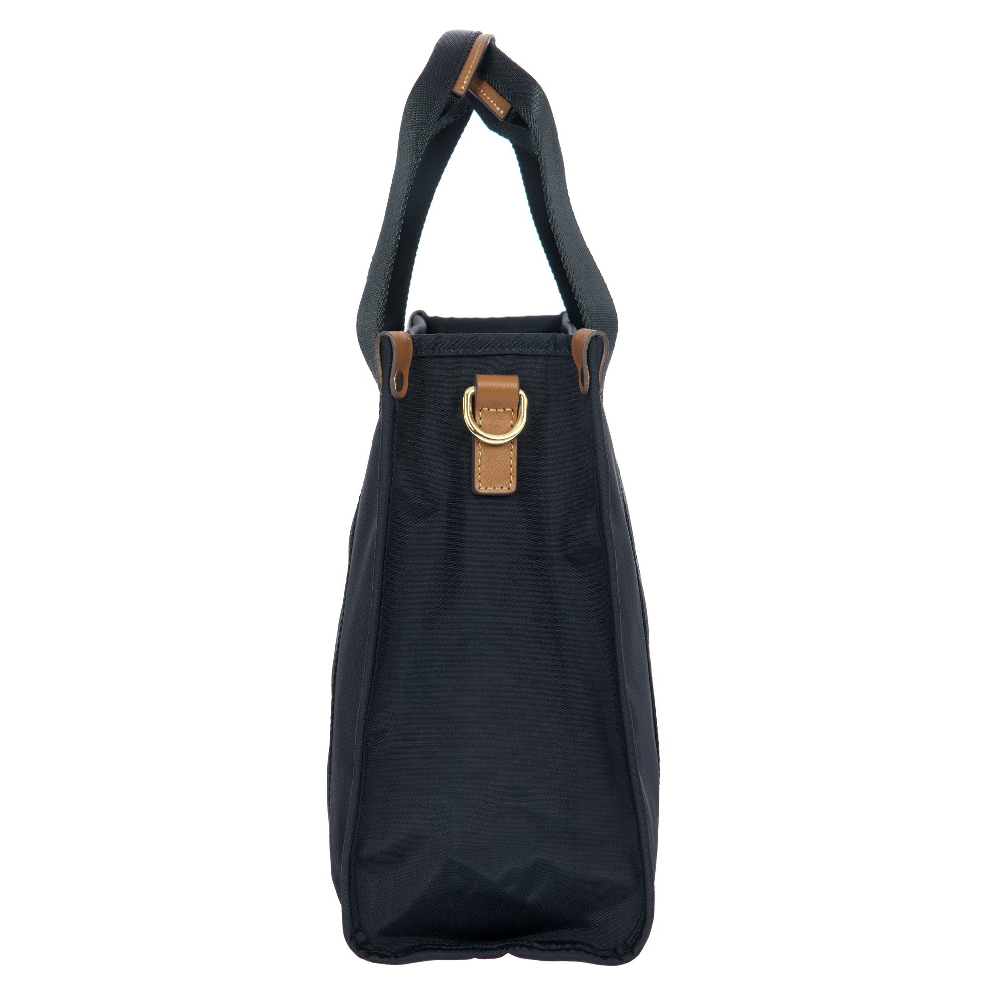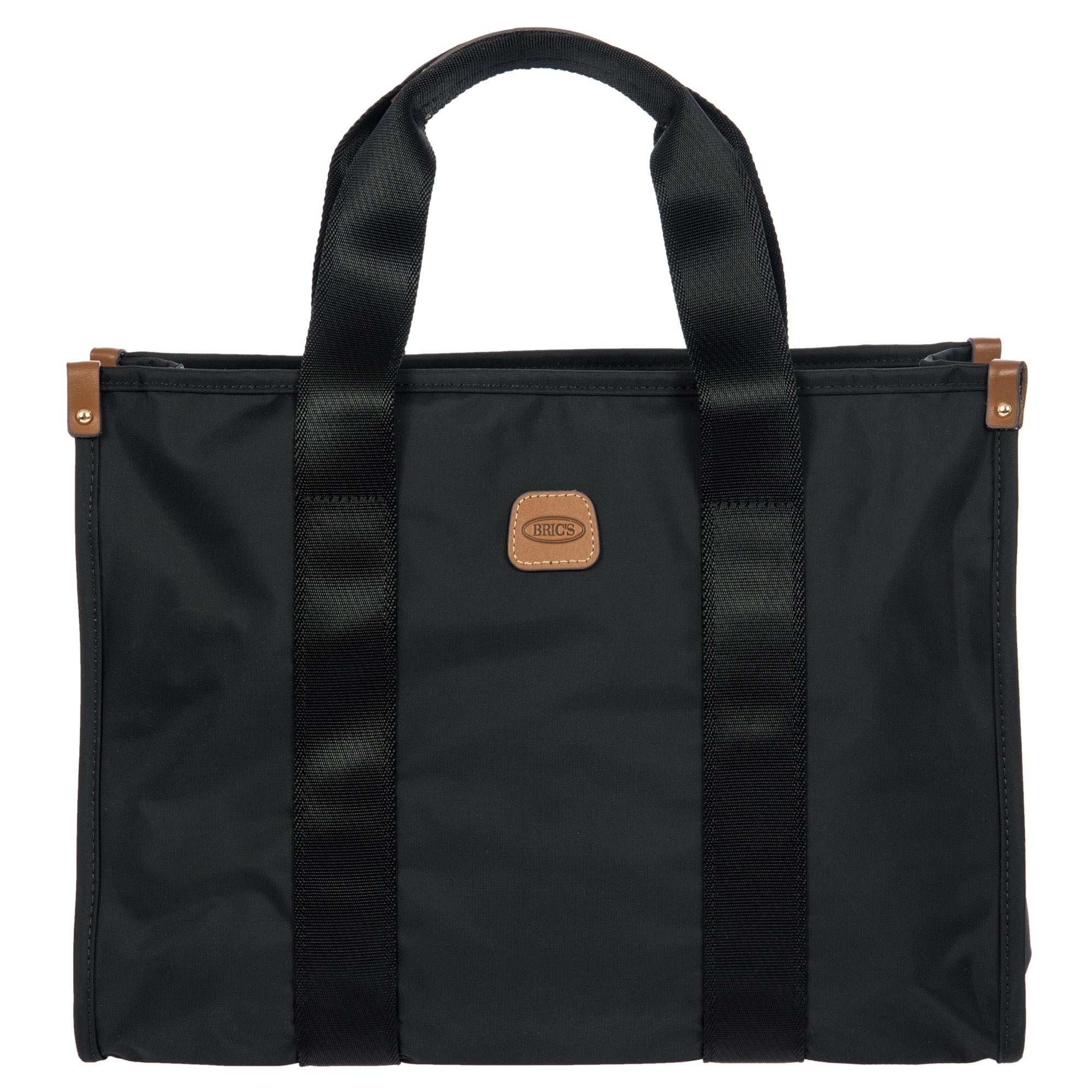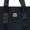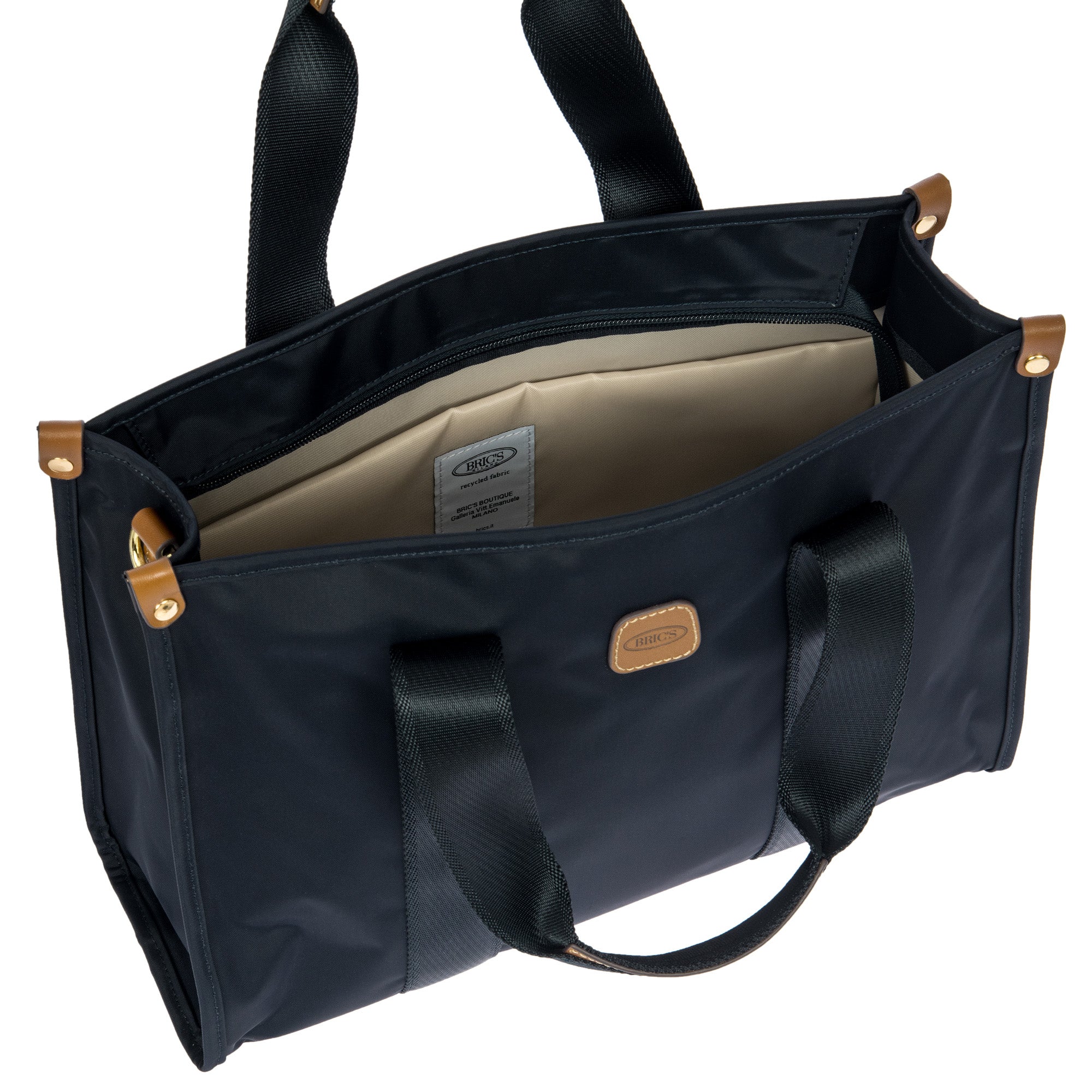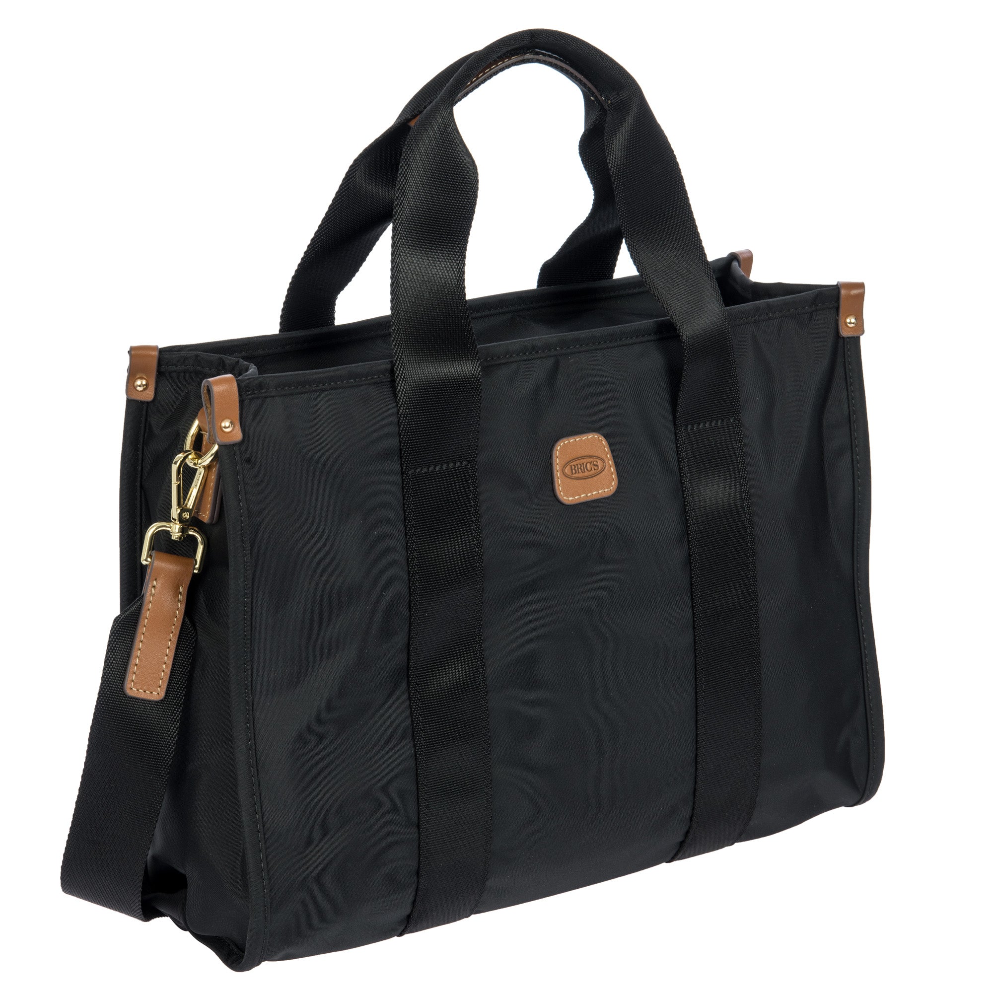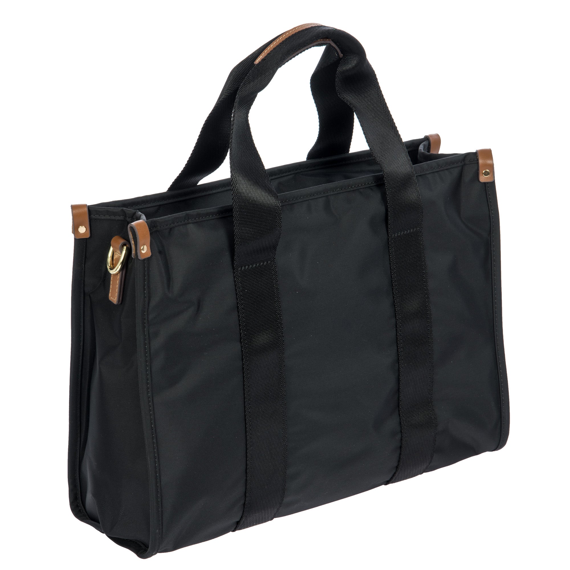 The X-Collection Opera Bag combines volume and essential lines, and is made of a water-proof, recycled fabric. Reinforced bottom, padded tablet pocket, double handle and removable shoulder strap for this functionally elegant bag. Safe zipped fastening. This functional 24/7 bag is embellished by ribbons and genuine leather details - Bric's hallmark.