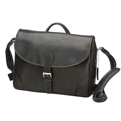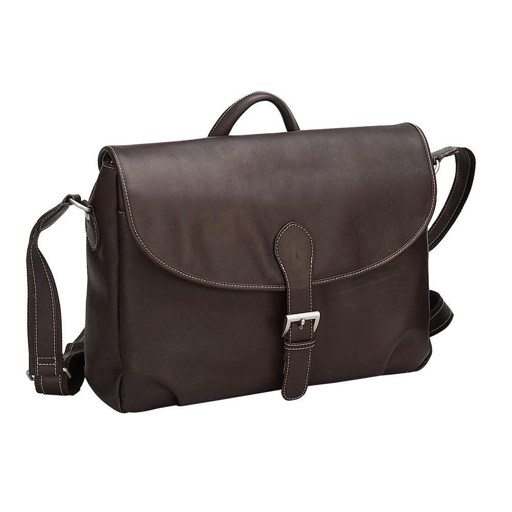 Done in rich Columbia leather trimmed in a creamy saddle stitch, this messenger is ideal for those who demand the best. Beneath the flap-over closure, you'll find a roomy open pocket with a full organizer to hold PDAs, iPods, cards, pens and memory sticks. Its spacious main compartment is fully lined, with a detachable key ring, and a linear zip pocket to keep personal items secure. An exterior rear zip pocket runs the length of the bag and has additional space for a phone, pens and other small items. The carry handle and adjustable strap are both padded for comfort. Brushed metal fixtures.