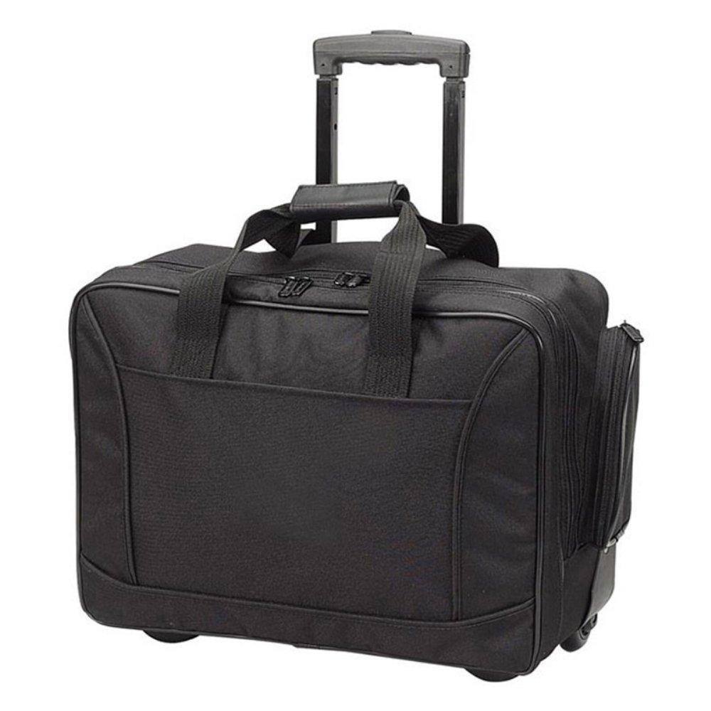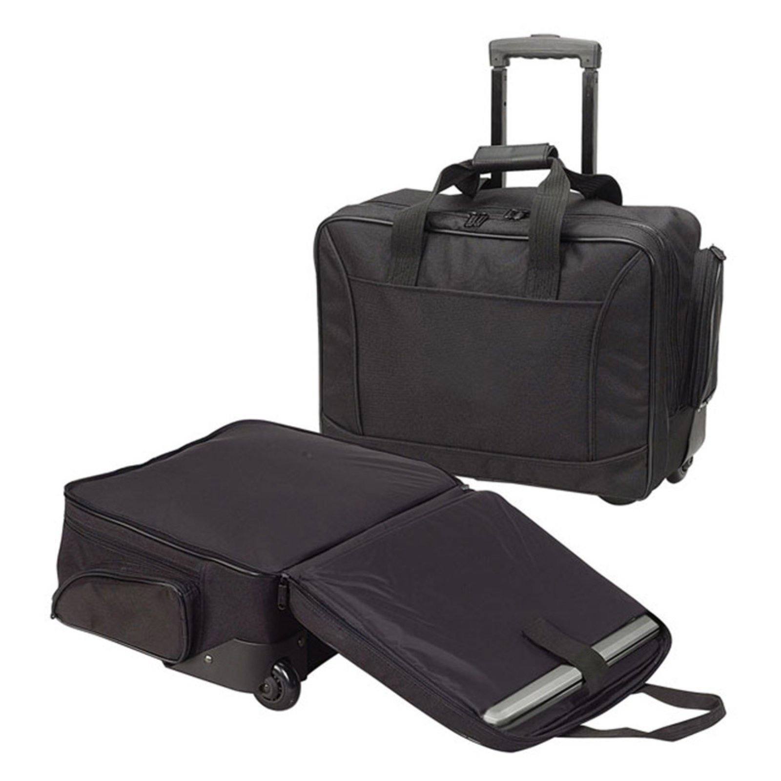 A modern mix of 600d polyester and jacquard, this tsa approved computer briefhelps you pass through airport security in smart, stylish fashion, allowing aclear scan of your laptop while still in your bag! No need to remove yourlaptop. Simply unzip the computer portion of the bag and lay it flat on thescreening belt. Other features include a spacious main compartment completewith file folio. A divider with a zip pocket & a lot of pockets for businessaccessories, cards & pens. Twin side zip pockets for accessories, and dualfabric-wrapped carry handles. A pull out handle and inline skate wheels ensureyou have a smooth commute.