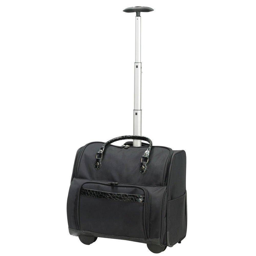 Super-sleek micro-fiber accented with faux crocodile trim give this gorgeouscase modern appeal. Both stylish and functional, it features dual sidepockets, an open front pocket and a zippered front organizer with pocketsinside for all your accessories and cosmetics. The spacious, fully lined maincompartment has a padded sleeve to accommodate a laptop, and severalelasticized pockets to keep small items or shoes neatly packed. Itscontemporary telescope handle and inline skate wheels make it a pleasure to pu