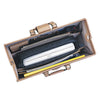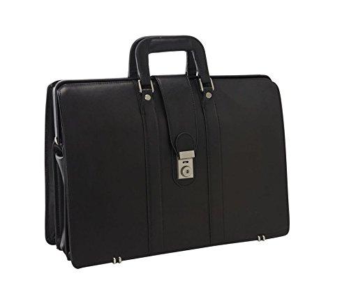 Made of drum-dyed full-grain cowhide leather, this case features a uniquemetal frame that allows the case to remain open for easy access and triplecompartments. Middle compartment is padded to accommodate a laptop. Insideorganizer holds CDs, palm pilot and pens. A 3-step key lock with buckle strapcompletes this exceptional piece.