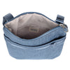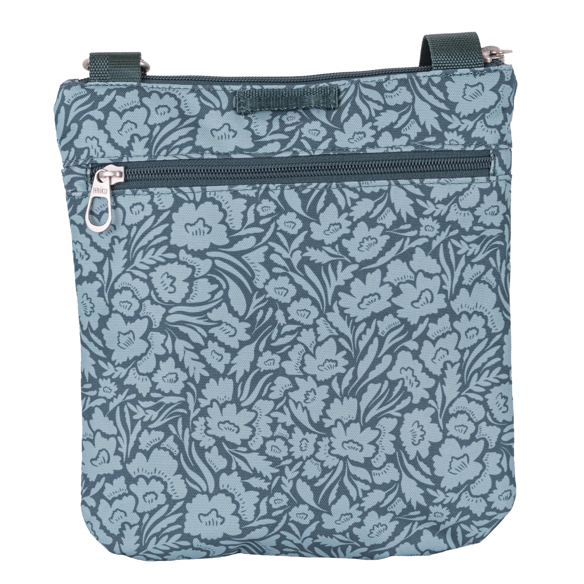 Water resistant lining and coating. Secure zip closure. 2 exterior pockets (1 zip & 1 slip). 1 interior slip pocket & 1 interior RFID card slot . Adjustable crossbody shoulder strap.