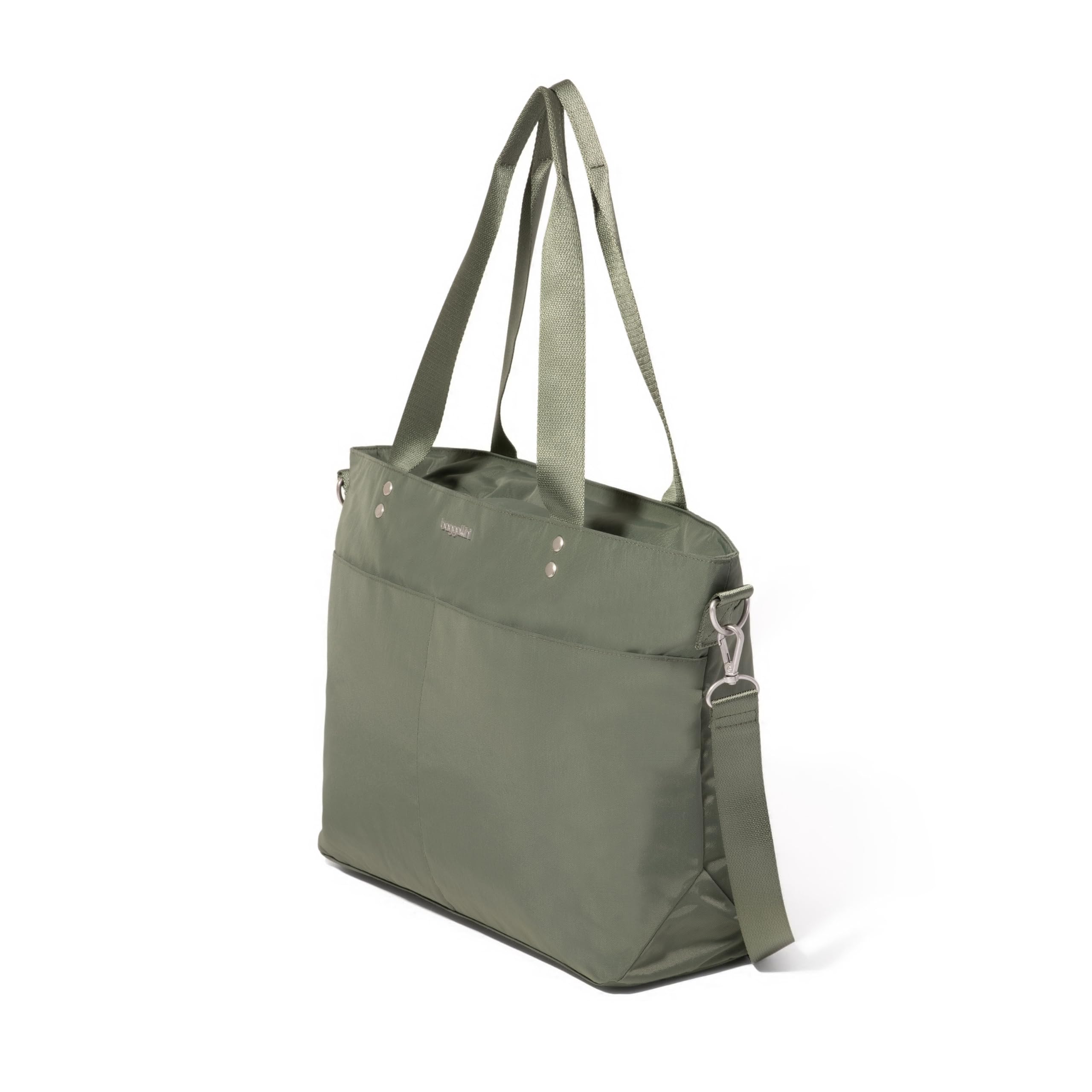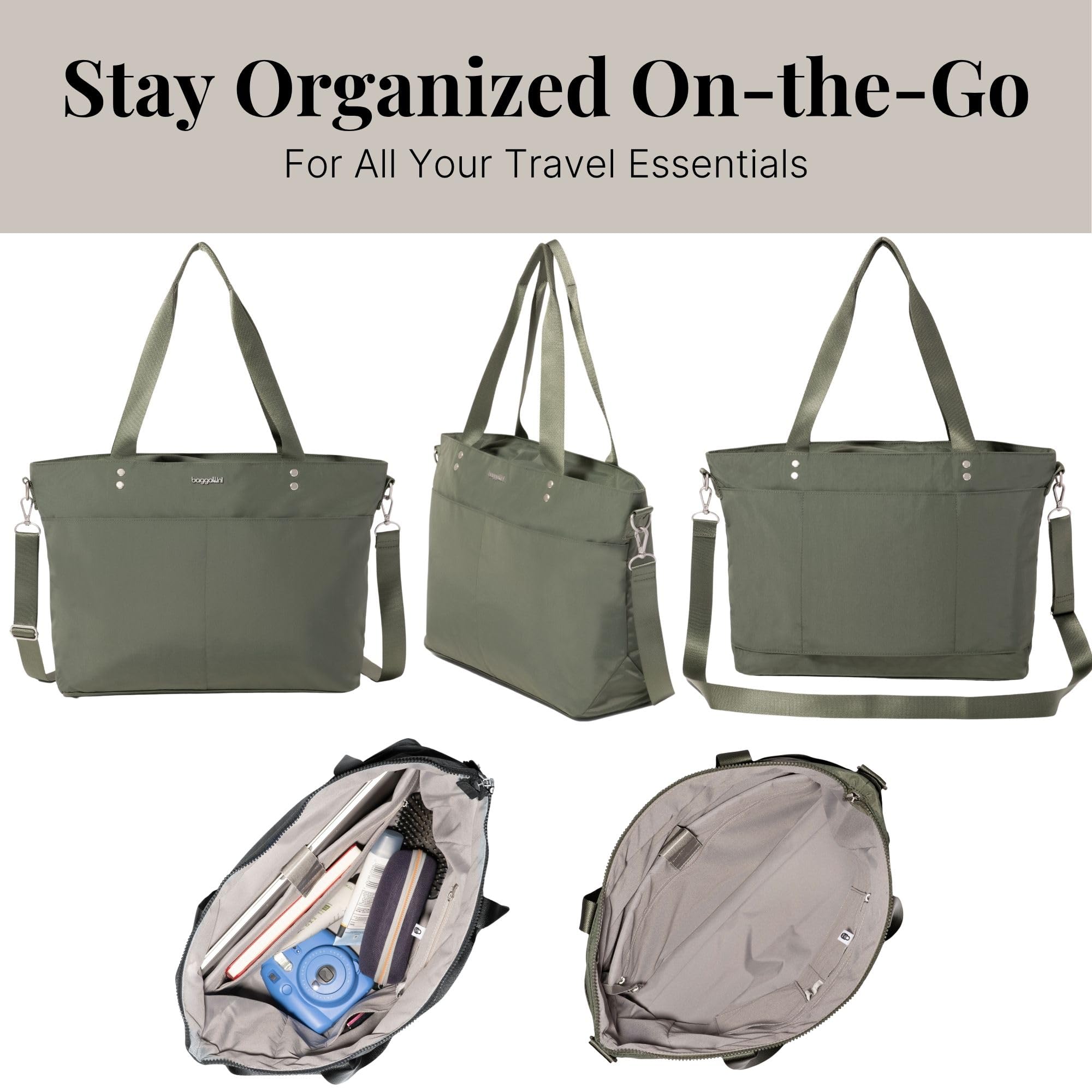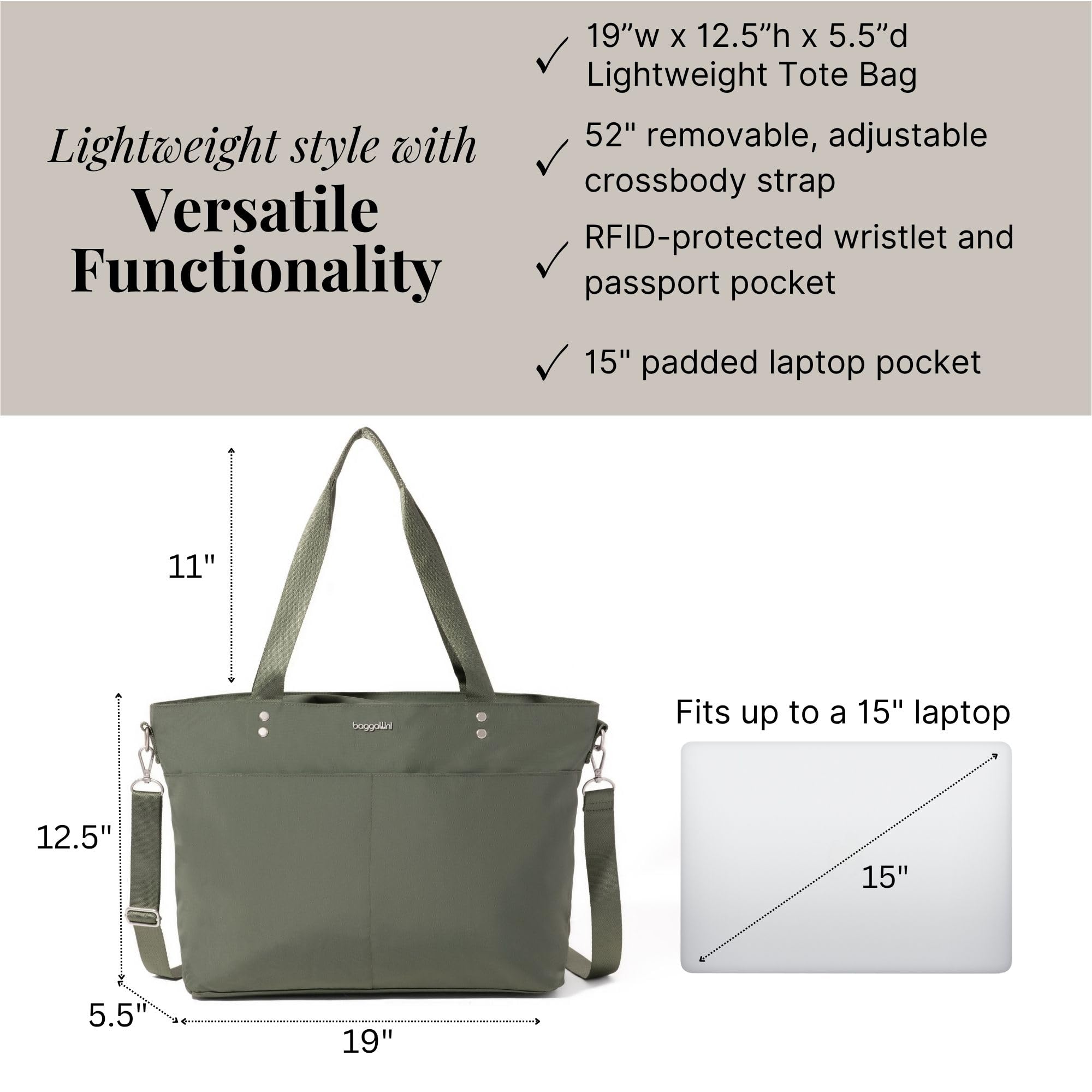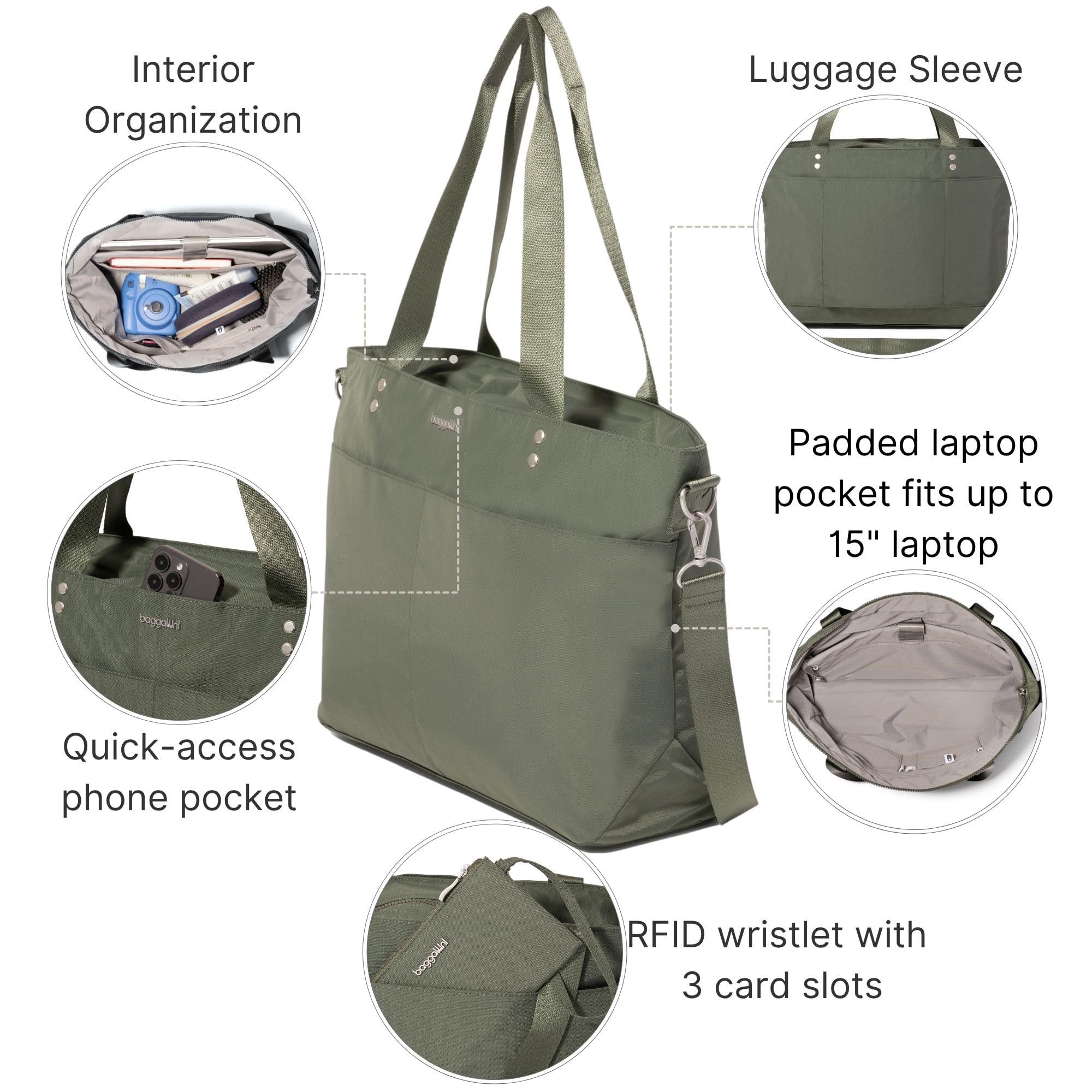 With the ability to be worn as a shoulder bag or crossbody, this spacious tote is a must-have for your work week, upcoming travels, or day trips. Store your computer in the secure 15 laptop sleeve. For smaller items that require fast access, exterior slip pockets and an anti-theft card wristlet have you covered. Stack the Carryall Laptop Tote on your wheeled luggage for a seamless travel experience.