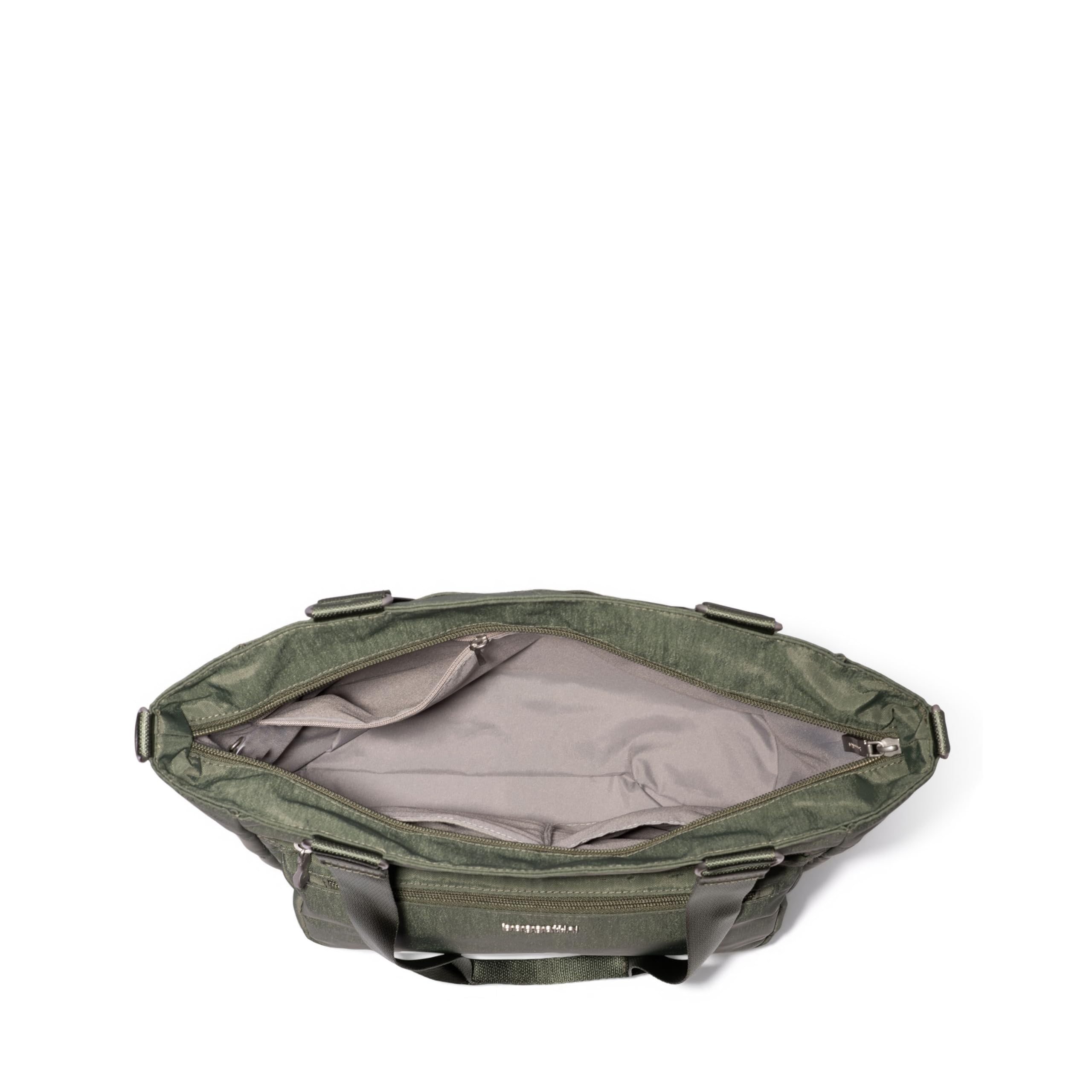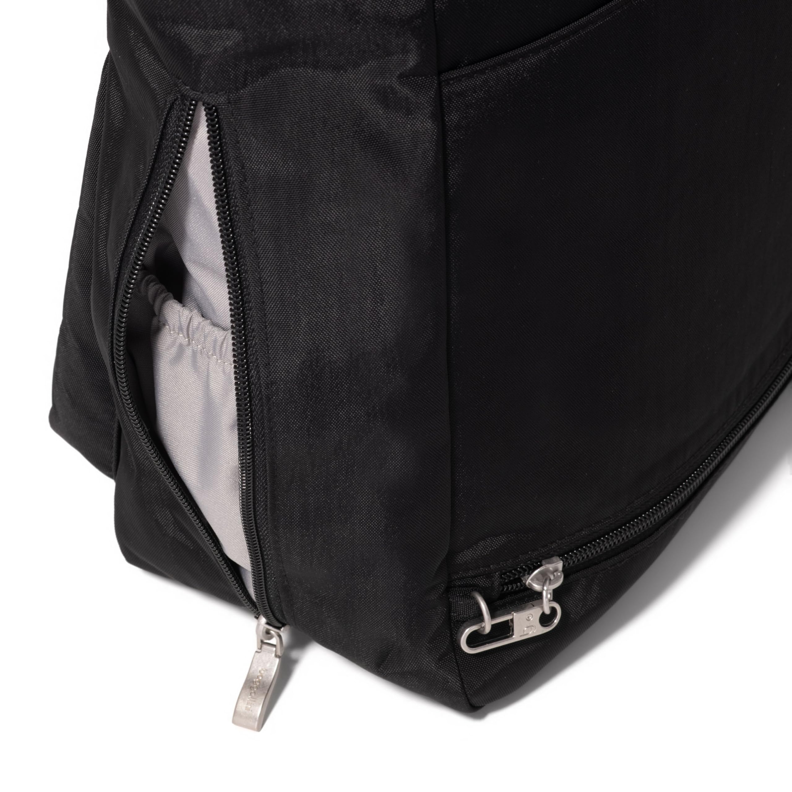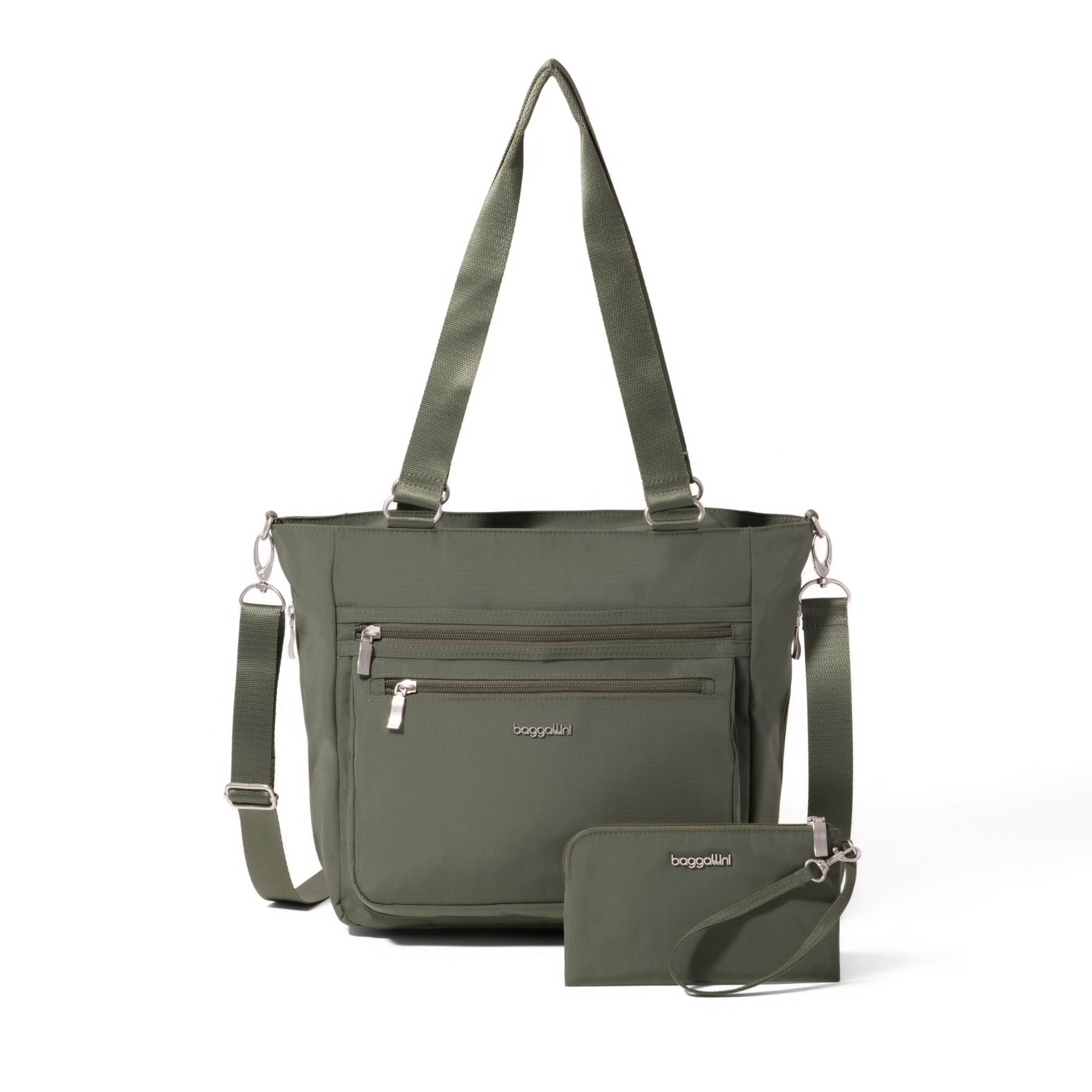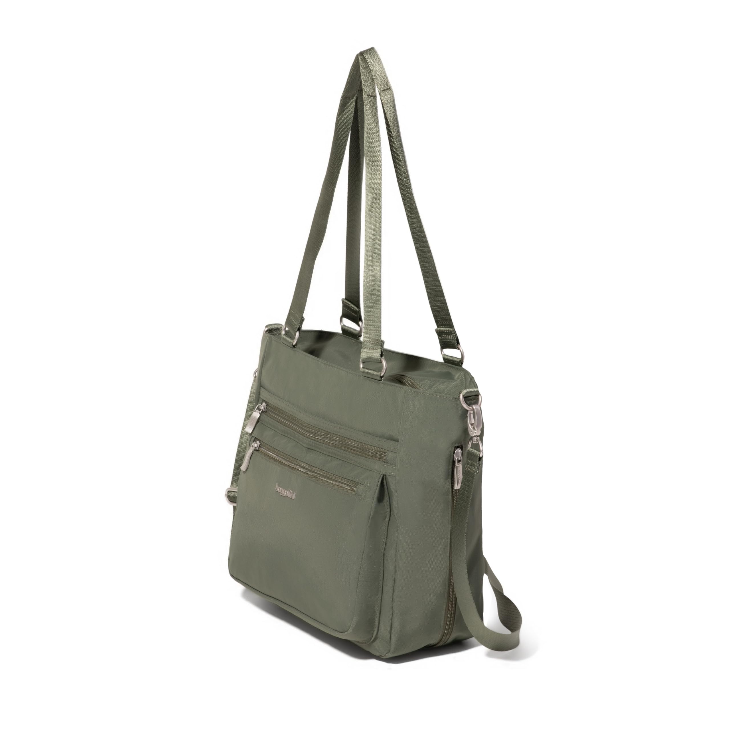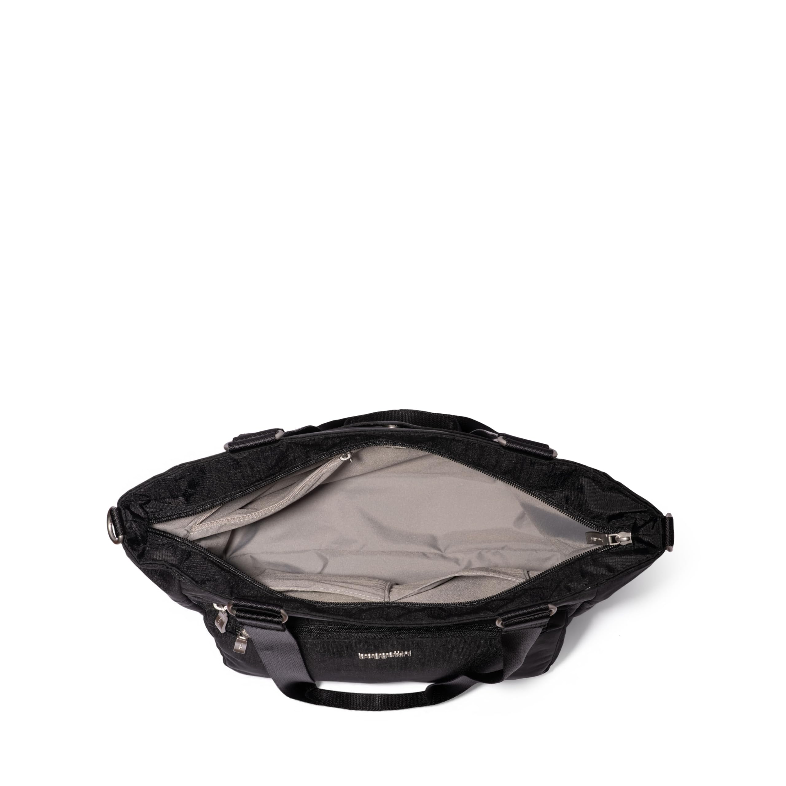 Just the right size for everyday errands and equally at home as an out-and-about travel bag, this tote bag comes complete with a water bottle pocket and an RFID-protected wristlet. A convenient luggage handle sleeve helps you stack your bags while youre catching connecting flights, and the wide variety of pockets ensure everything has a place.