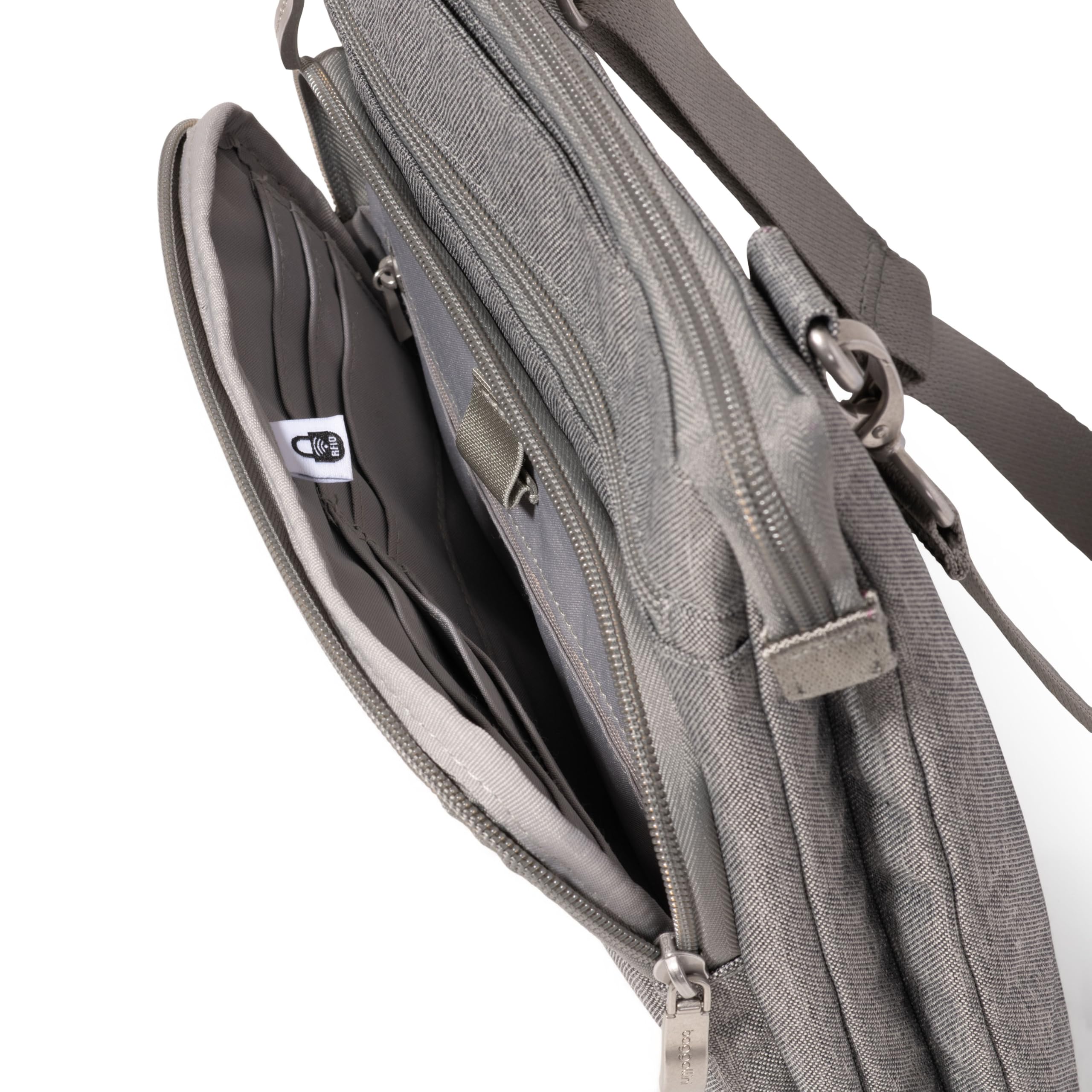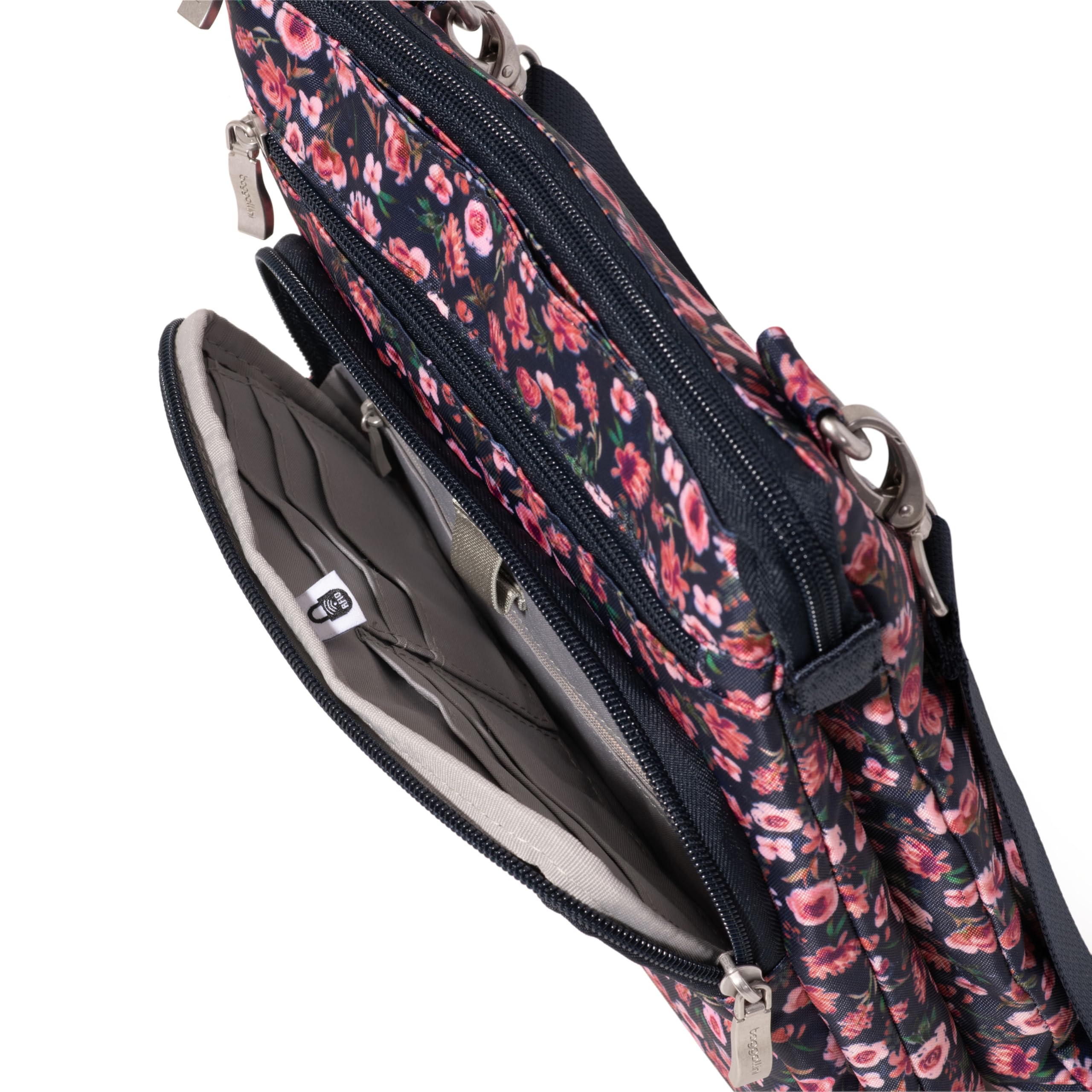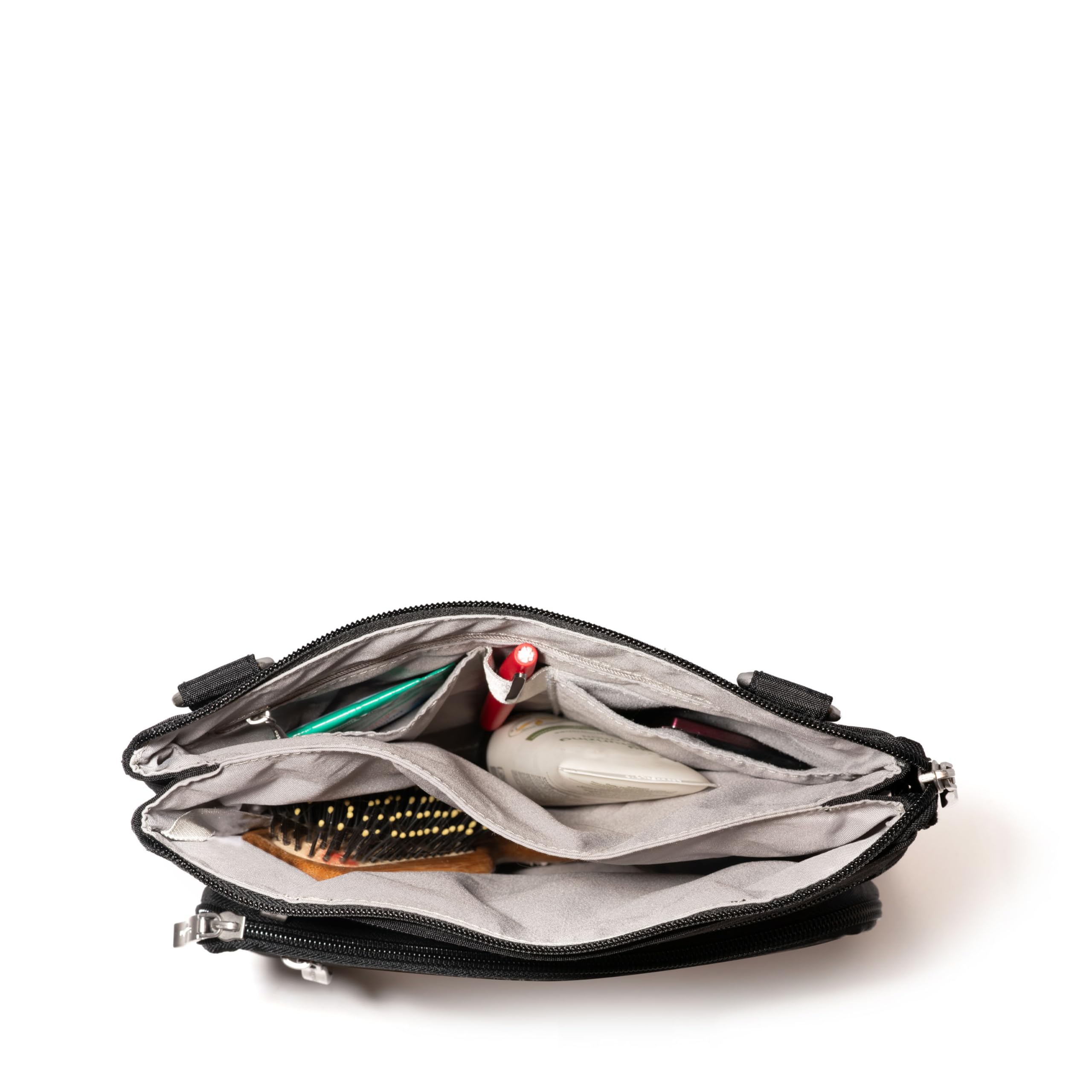 Looking for a crossbody bag with a little more organization? This is it. Designed with divided interior compartments, including a secret privacy pocket, say goodbye to fumbling around for that lip balm or cash. Plus, with a front pocket designed with RFID-protected slots, tuck away your cards without worry.