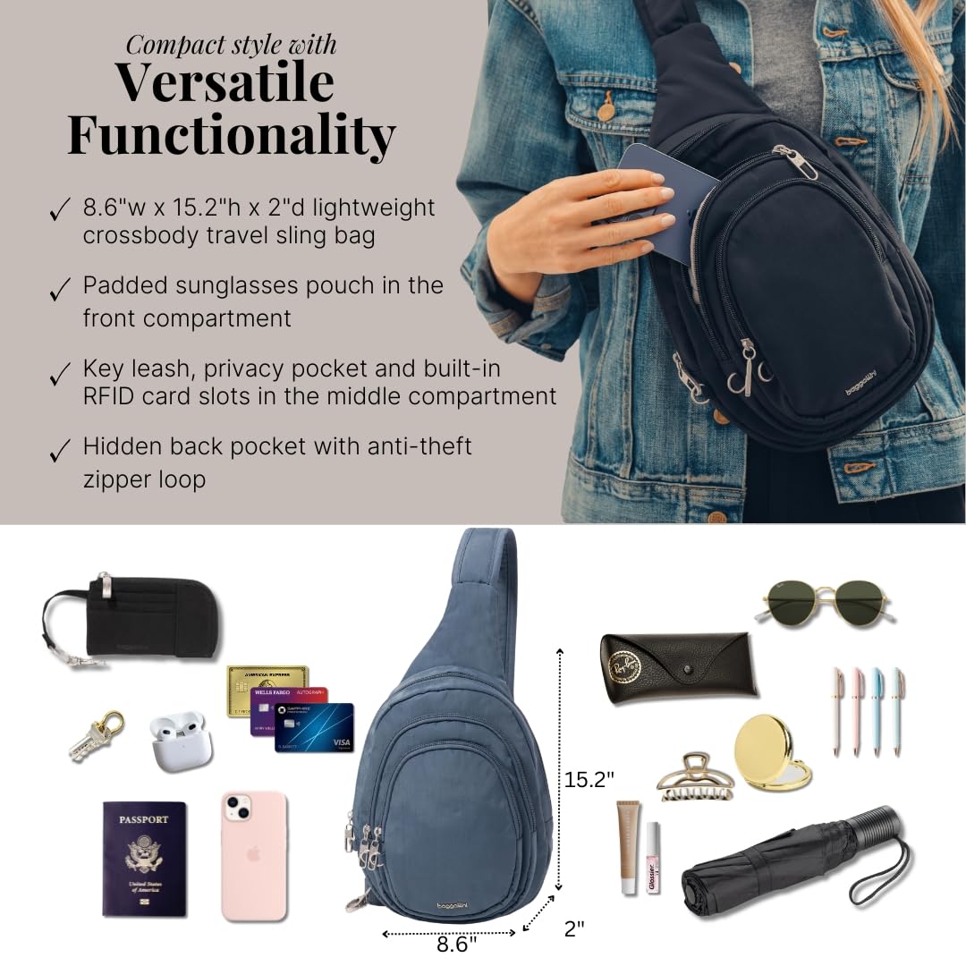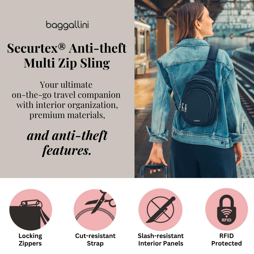 Baggallini Securtex Anti-Theft Multi Zip Sling