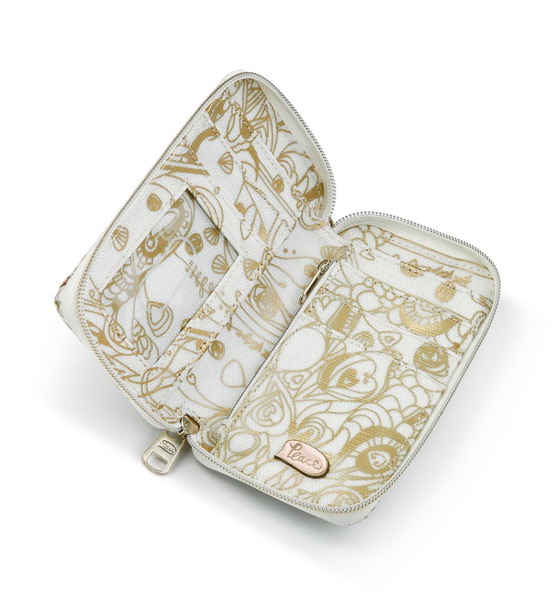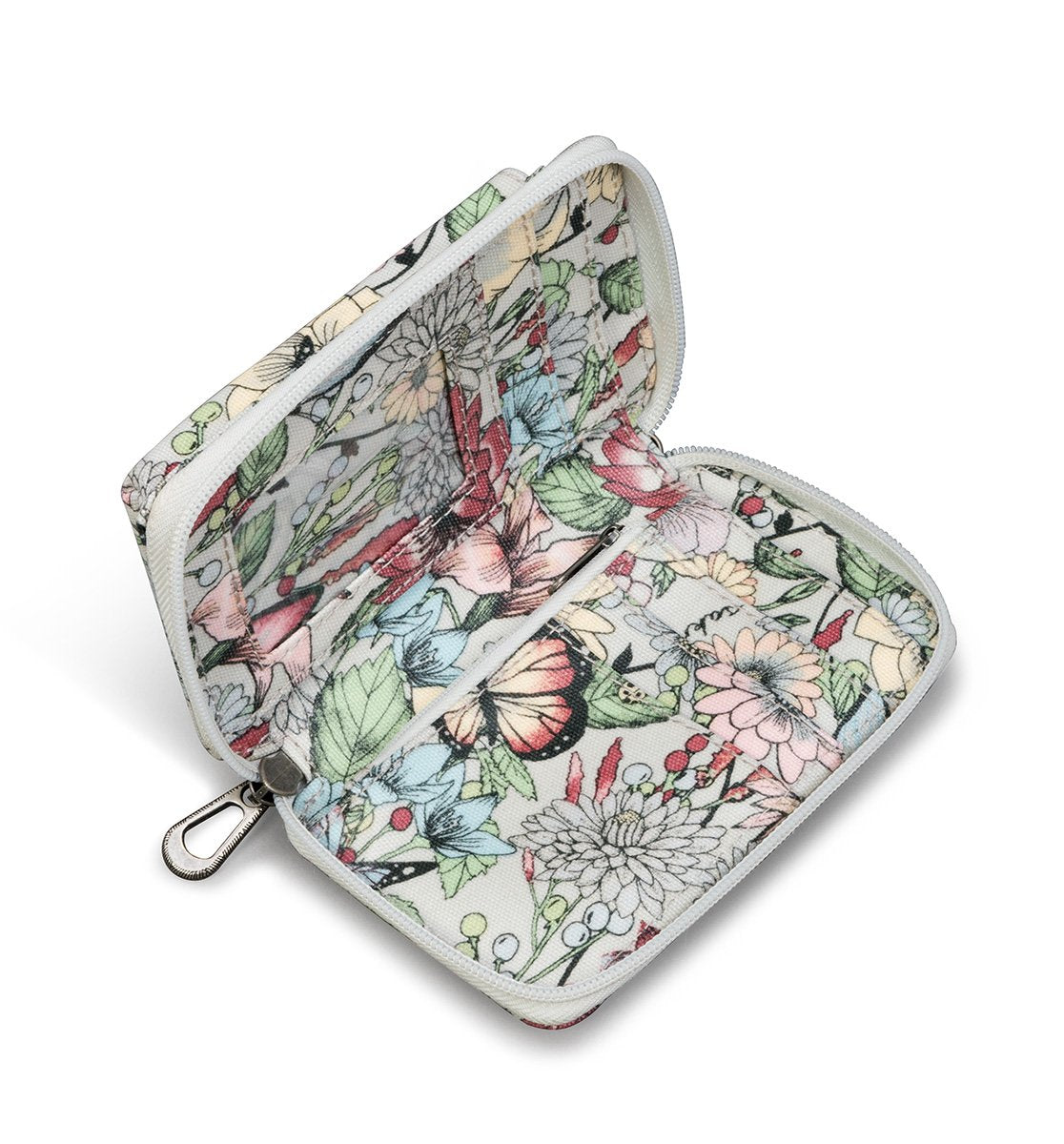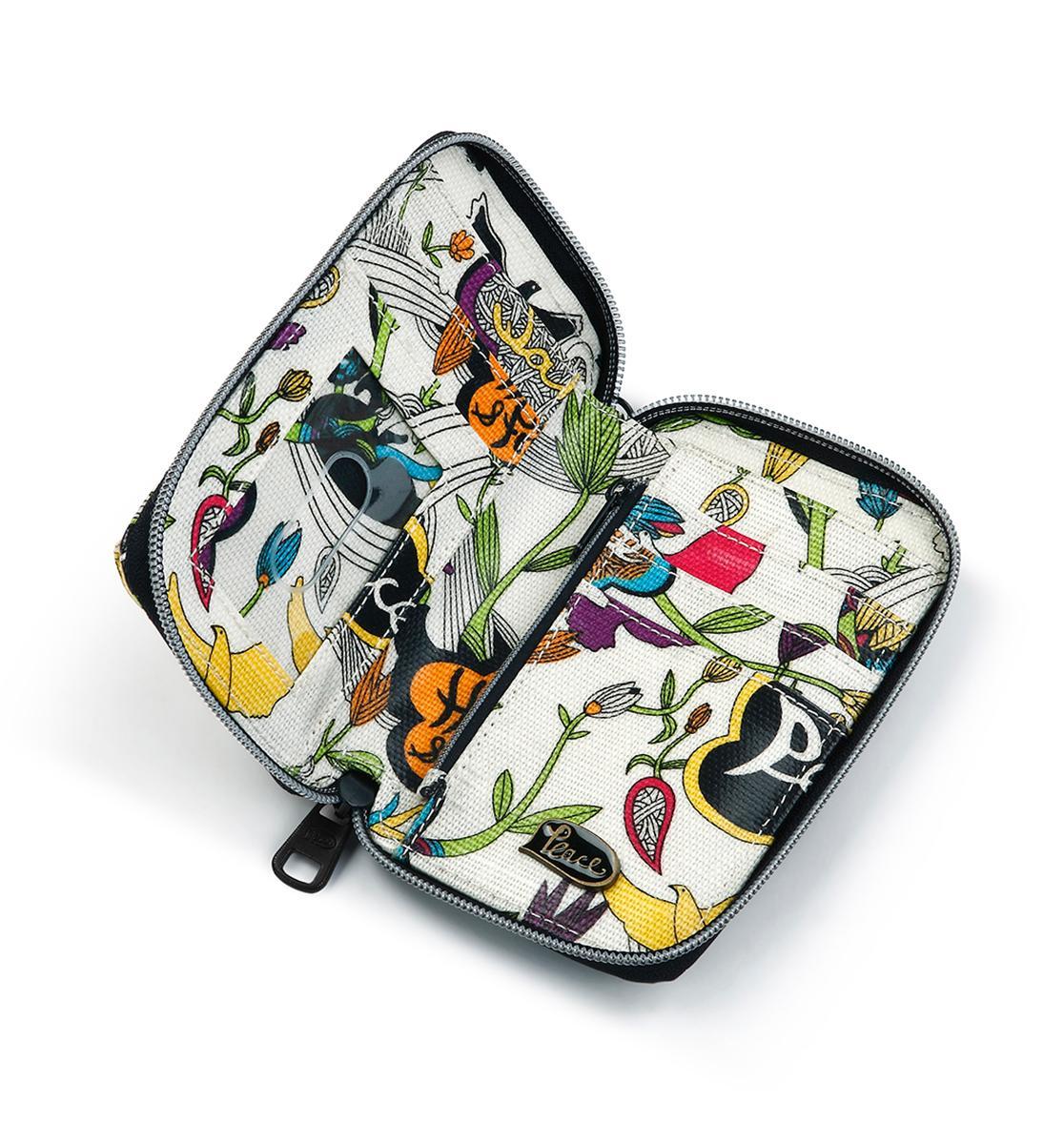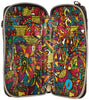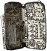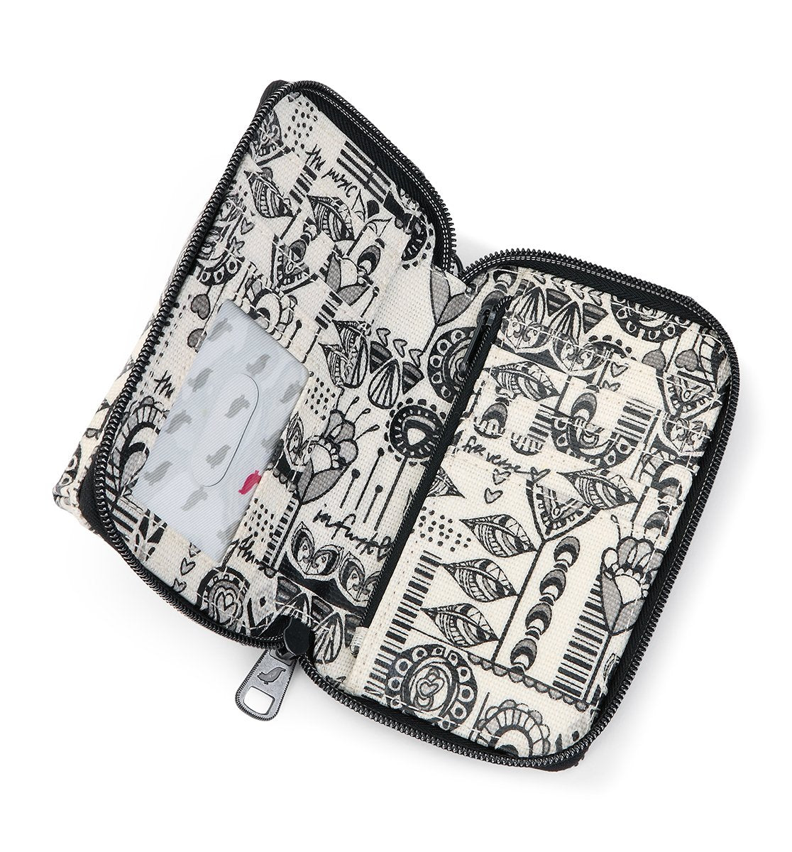 Sakroots Artist Circle Smartphone Wristlet is small and compact and perfect for touring around a new city. With a wristlet strap or crossbody strap you will always be hands-free and comfortable. Slip your phone inside the snap closure pocket while keeping cards and bills safely in a zippered pocket.