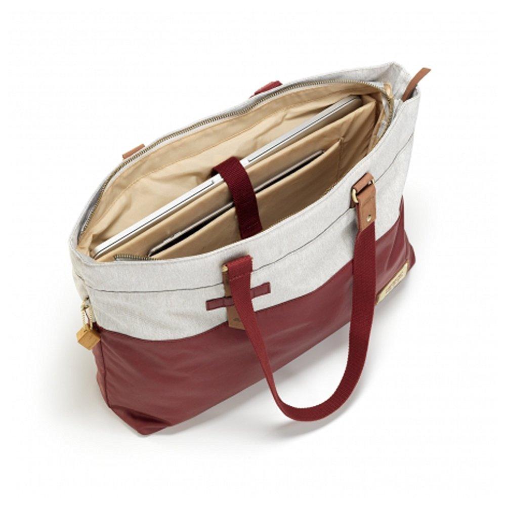 Trendy tote has separate, padded compartments for 15" laptop and tablet, plus documents.