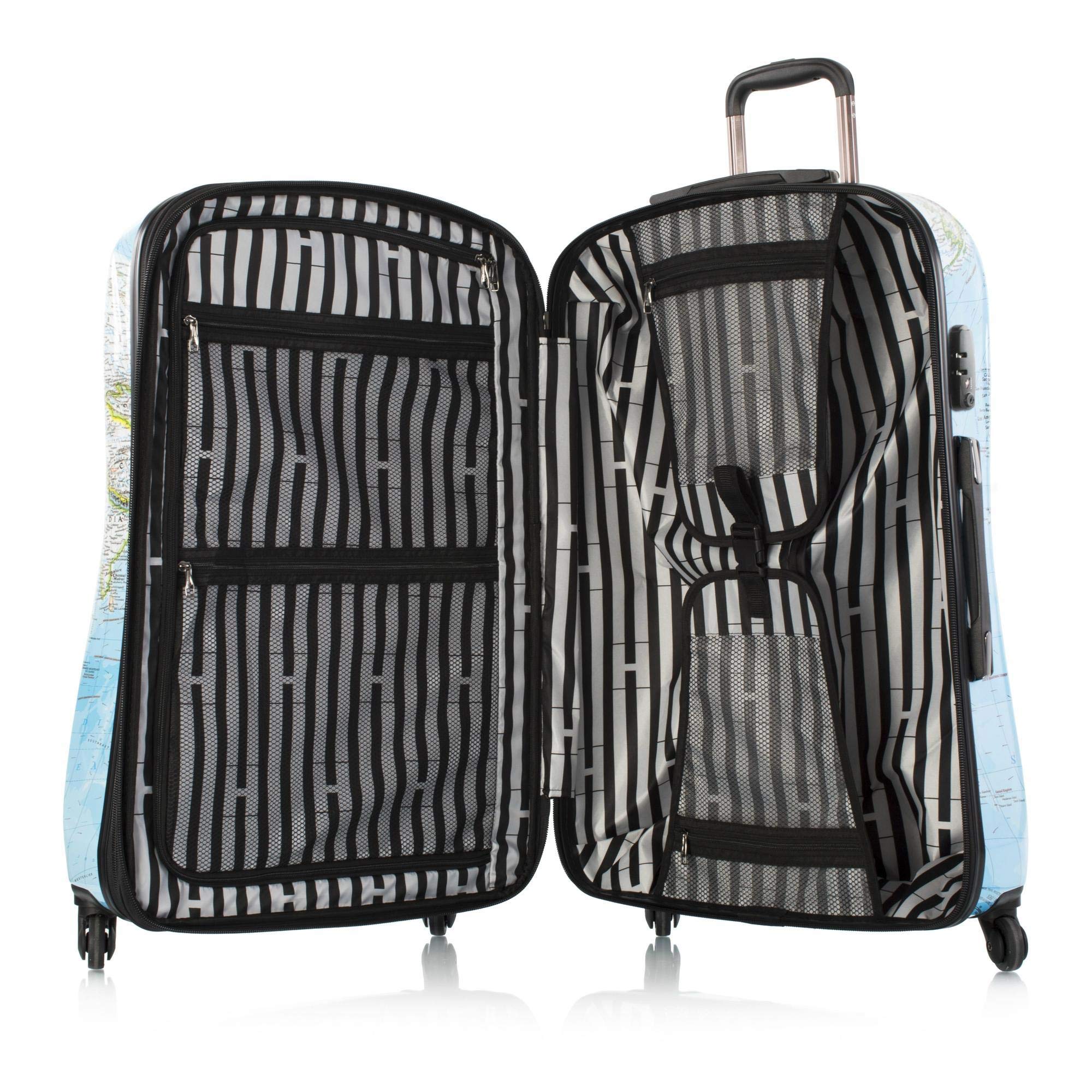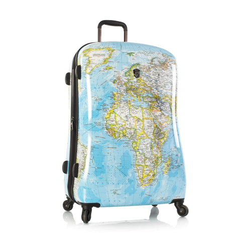 The world is our oyster, travel in confidence with the Heys America Journey21" Spinner at your side. Crafted with durable polycarbonate composite. Eachof the three sizes have been designed to showcase different parts of the worldand when put side by side, the entire set combines to form the entire worldmap. This print is protected by a layer of glossy clear coat which gives itits brilliant shine as well as improved scratch and scuff protection. Toprovide more protection, a travel bag is included to keep it looking like newfor many more journeys to come. Internal handle system made from lightweightaluminum. Top and side carry handles allows you to easily move your luggage,or hand carry. Interior features a compression strap, two mesh zipcompartments, and a zip divide. Zipper expansion for extra room. Built-in TSAlocks. 360 degree spinner wheels. Imported. Dimensions: 21" x 13.5" x9"Weight: 6.2 lbs Measurements: Width: 13 in Depth: 8 in Height: 21 in Weight:10 lbs 12.8 oz