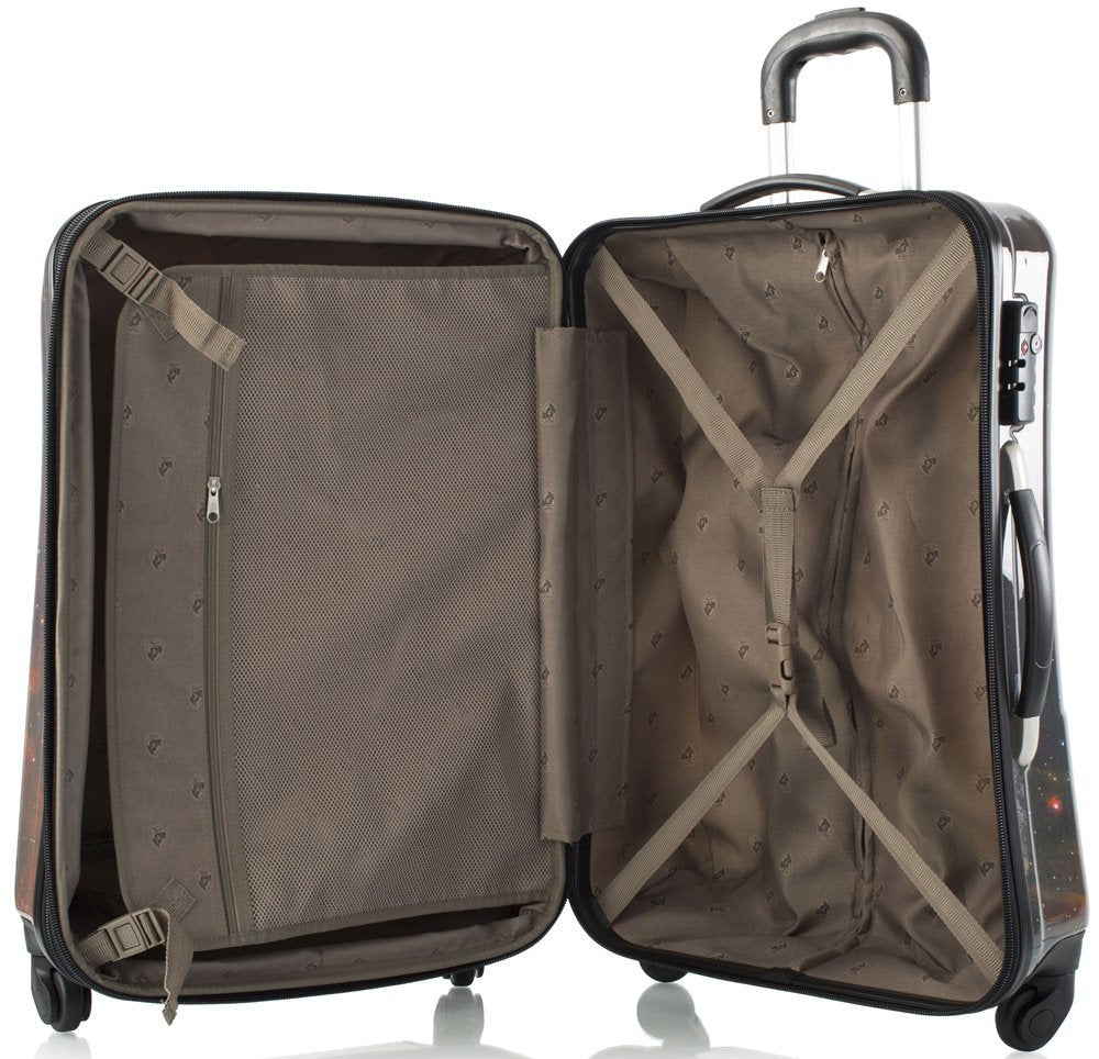 The Cosmic Fashion Spinners? give new meaning to the term ?fashionable luggage. Featuring stunning views of galaxies and nebula, each spinner showcases a colourful and bold print. The vibrant luggage print is protected by a layer of clear coat which also gives it a beautiful glossy shine, and is sure to stand out from the crowd.