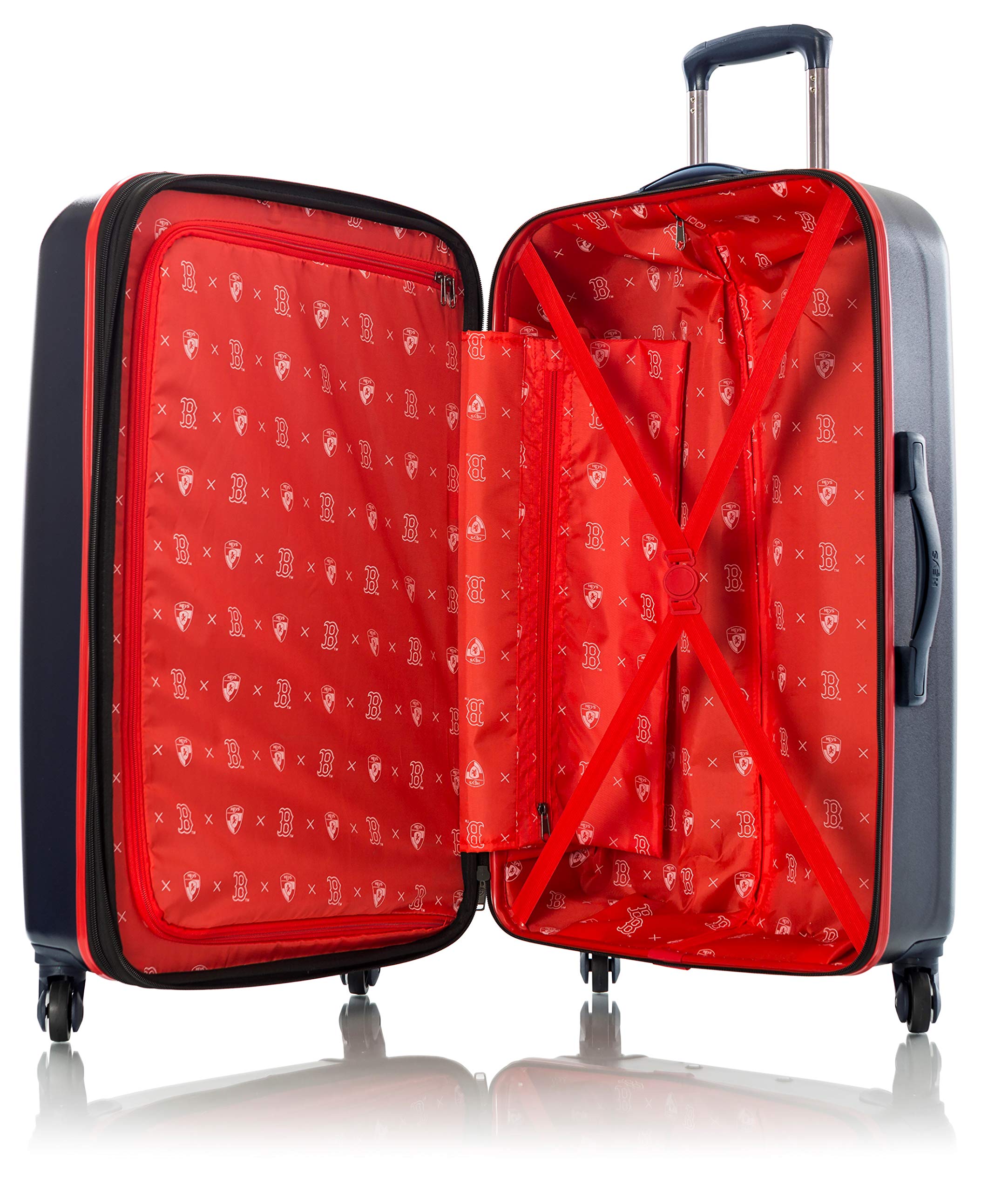 The Heys officially licensed Luggage Collection will appeal to Baseball fanswho want to cheer on their favorite teams! This is the perfect gift for a fan!Available as a separate 21 carry-on or a 26 size or in a 2 pc. set, thisspinner luggage features the official logos and represents teams in thedifferent leagues. 5 Year Prestige Class Warranty
