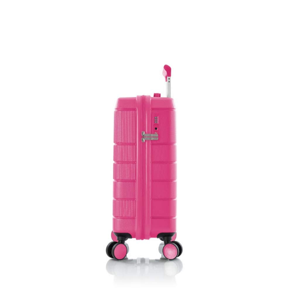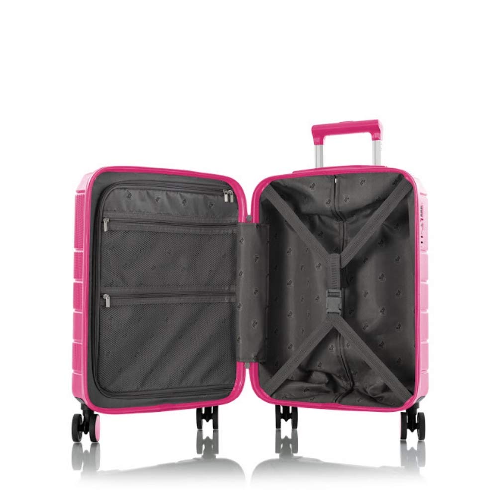 Color:Fuchsia Easily spot your luggage with this vibrant neon 21-inch carry-onspinner luggage. The Neo carry-on features a fully lined interior withzippered divider, compression straps, and large zippered pockets for maximumorganization. The luggage has 360-degree spinner wheels for easy movement.