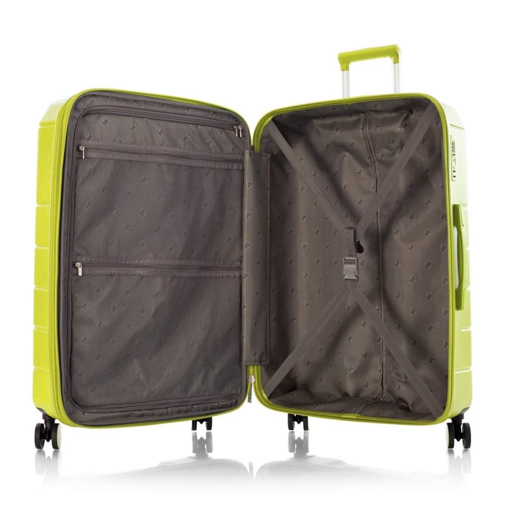 Color:Fuchsia Easily spot your luggage with this vibrant neon 21-inch carry-onspinner luggage. The Neo carry-on features a fully lined interior withzippered divider, compression straps, and large zippered pockets for maximumorganization. The luggage has 360-degree spinner wheels for easy movement.