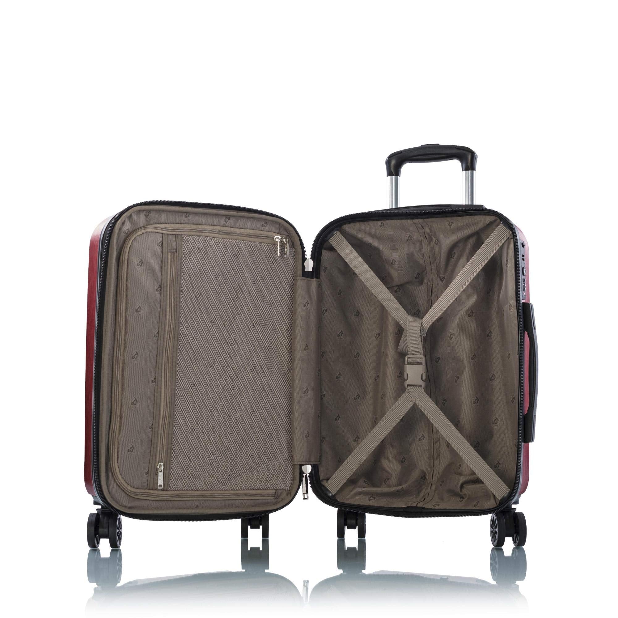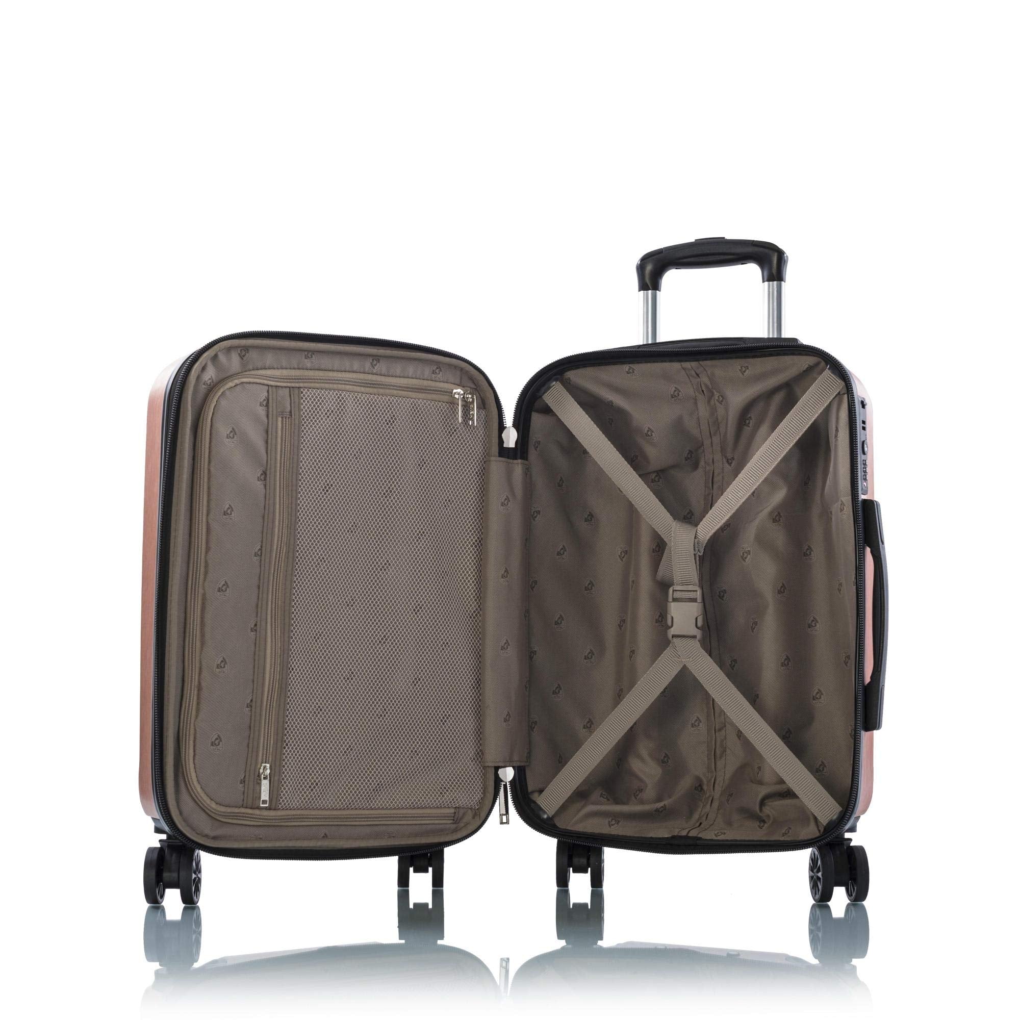 Size requirements vary among airlines. Please check with your airline forcarry-on luggage size restrictions. Get a handle on your travel gear with ago-to Heys America 21" Para-Lite luggage that's ideal for anything fromstaycations to trips far away. Made of a lightweight polycarbonate compositewith a brushed metal texture. Metal corner guards. Features a fully-linedinterior with zippered divider, buckled compression straps, and zipperedpockets. Flush mounted built-in TSA combination lock. Zipper-releasedexpansion system allows for an extra 20% in packing capacity. Gel-cushionedtop and side handle. Lightweight aluminum push-button telescopic handle systemwith multi-stage locking heights. 360 spinner wheels allow for effortlessmotion in different terrains. Imported. Measurements: Width: 14 in Depth: 8 inHeight: 21 in Weight: 6 lbs 5.4 oz