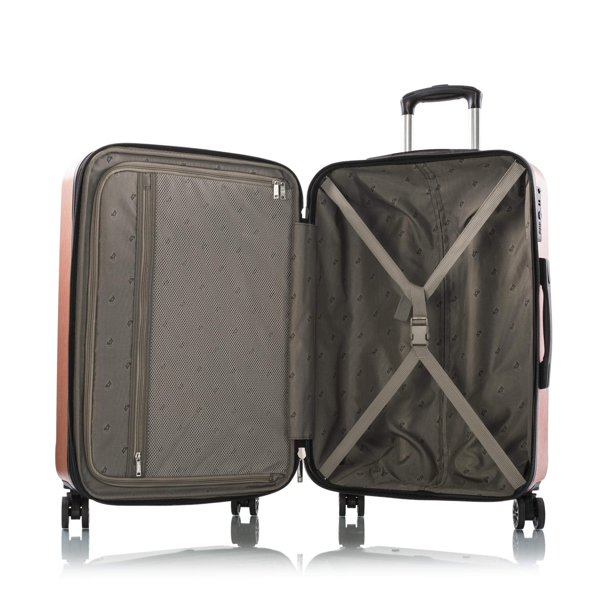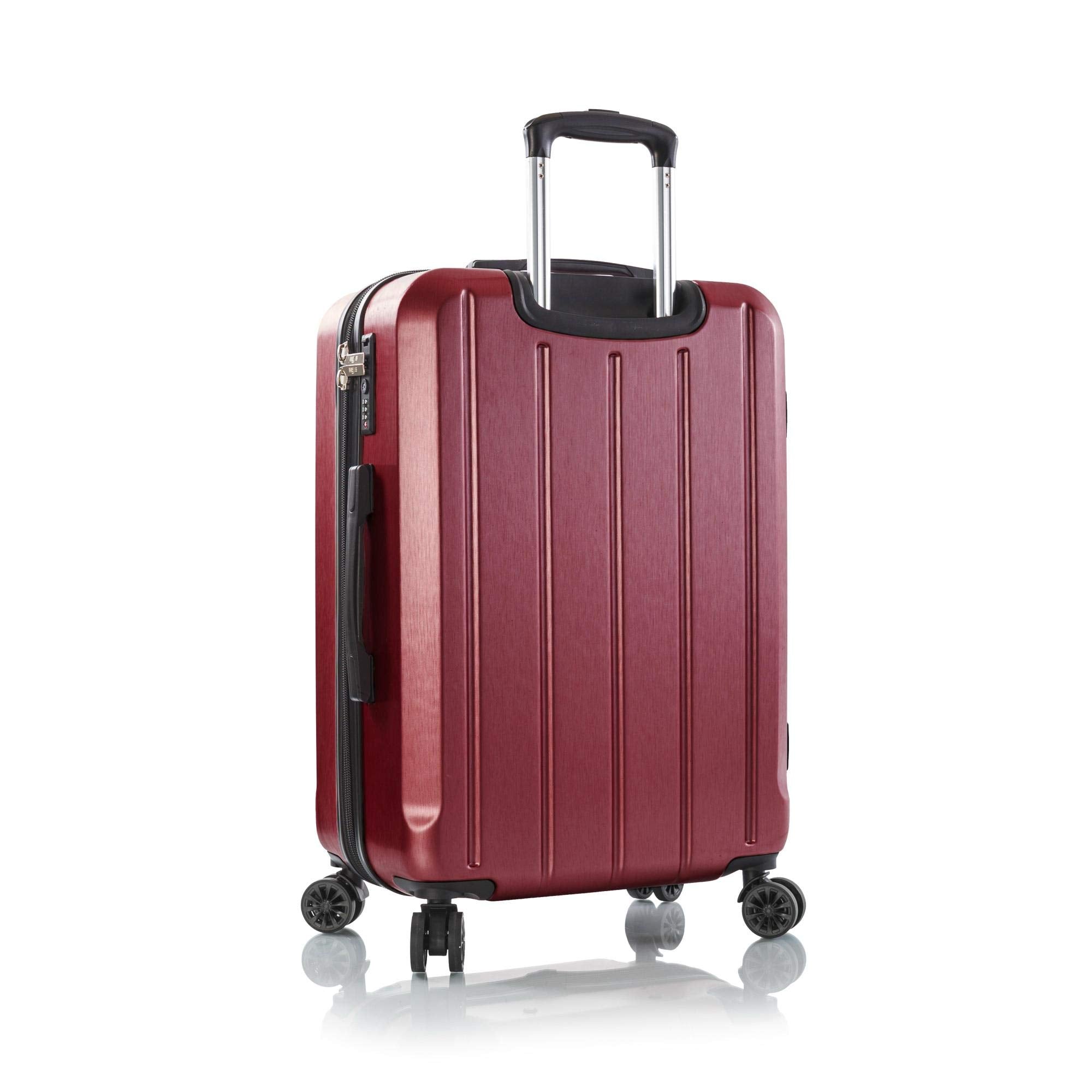 Size requirements vary among airlines. Please check with your airline forcarry-on luggage size restrictions. Get a handle on your travel gear with ago-to Heys America 21" Para-Lite luggage that's ideal for anything fromstaycations to trips far away. Made of a lightweight polycarbonate compositewith a brushed metal texture. Metal corner guards. Features a fully-linedinterior with zippered divider, buckled compression straps, and zipperedpockets. Flush mounted built-in TSA combination lock. Zipper-releasedexpansion system allows for an extra 20% in packing capacity. Gel-cushionedtop and side handle. Lightweight aluminum push-button telescopic handle systemwith multi-stage locking heights. 360 spinner wheels allow for effortlessmotion in different terrains. Imported. Measurements: Width: 14 in Depth: 8 inHeight: 21 in Weight: 6 lbs 5.4 oz